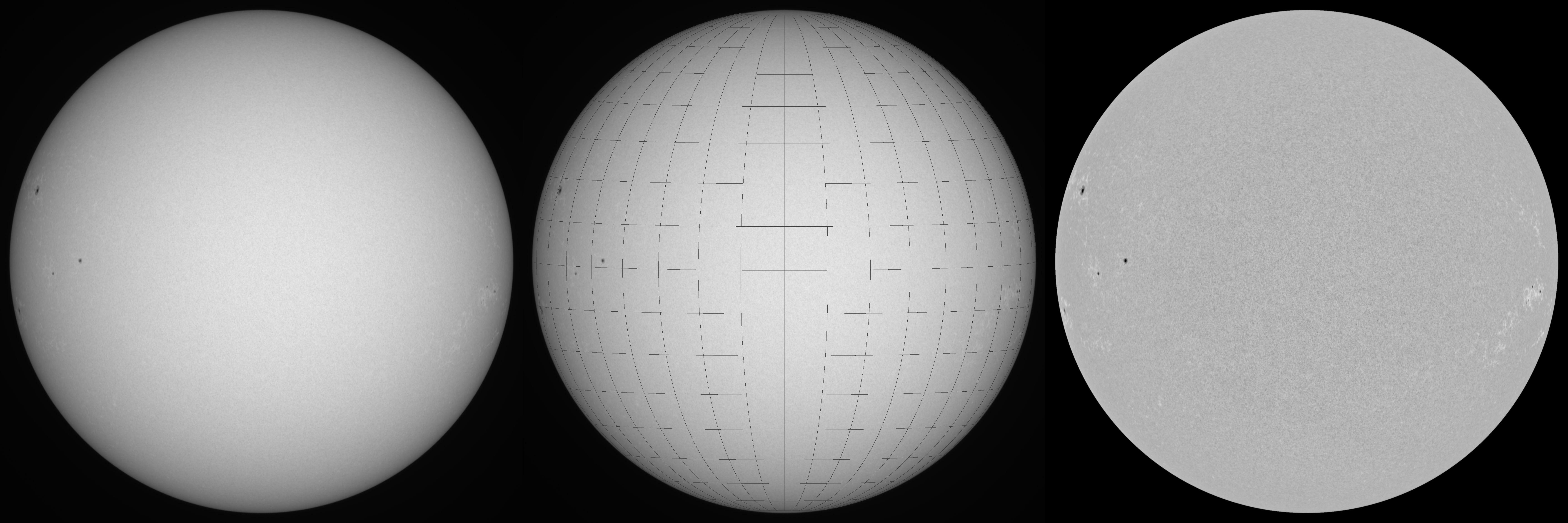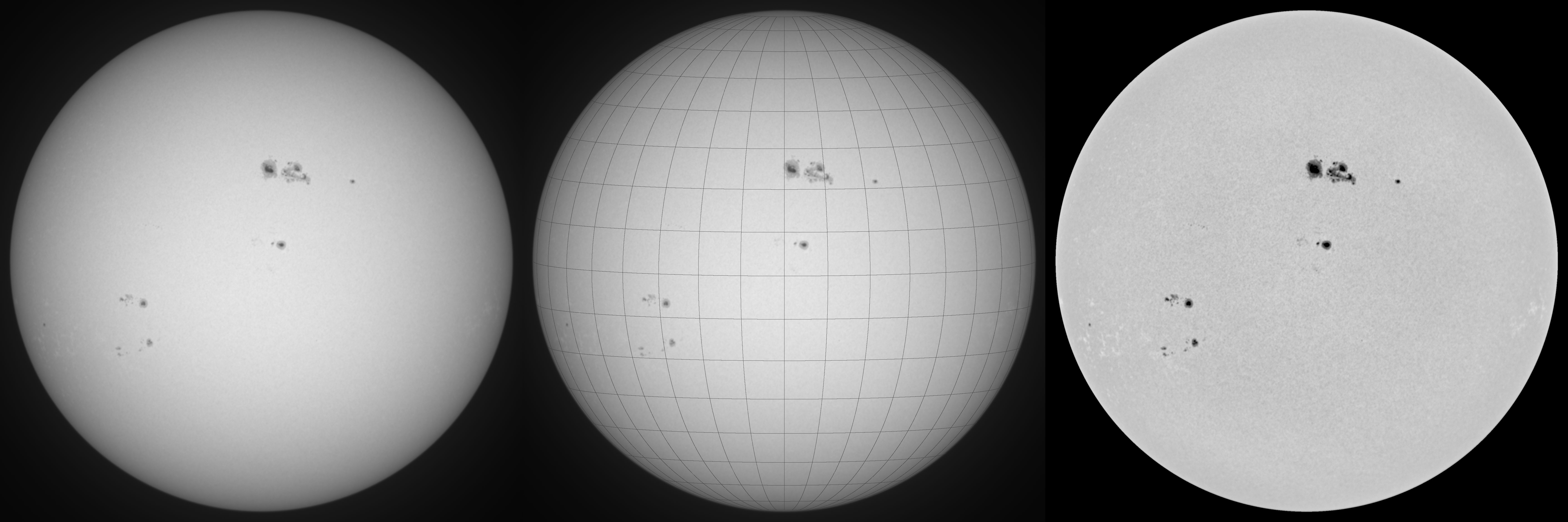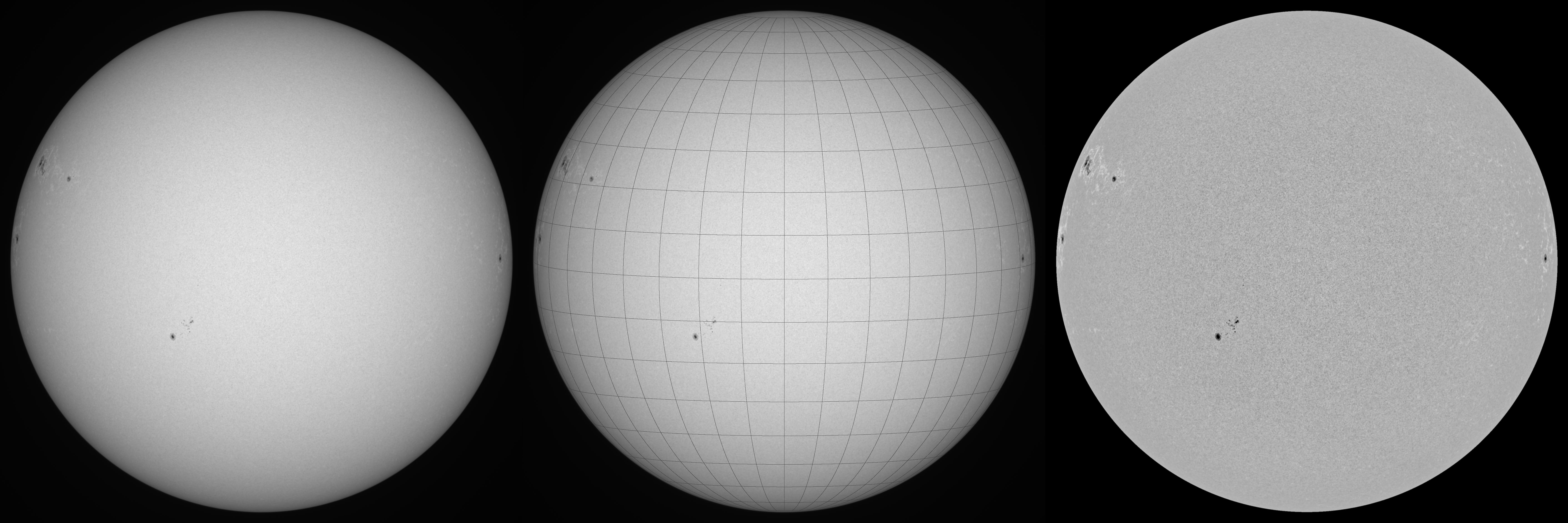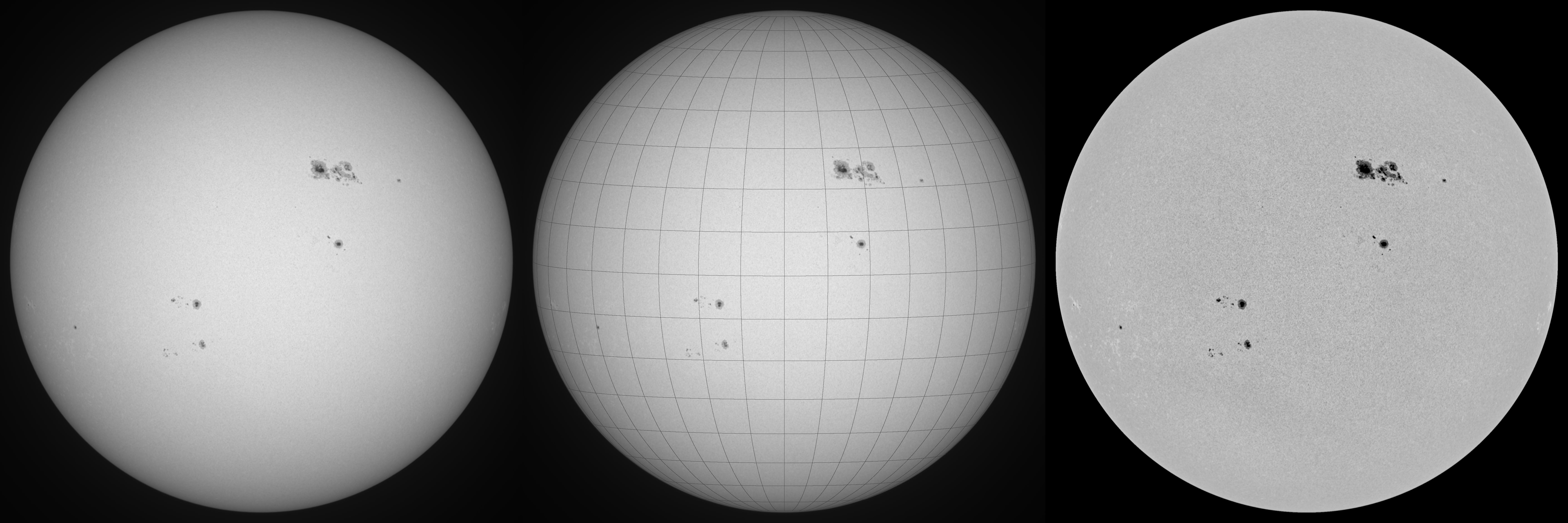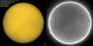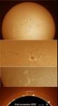 | Autor: Luis Farinós Luz blanca: Astrosolar + Skywatcher Evolux 62ED + Solar Continuum Ca: Skywatcher Evolux 62ED + Módulo Ca Lunt B600 Ha: Lunt LS40tha B500 Cámara: ZWO ASI290MM |