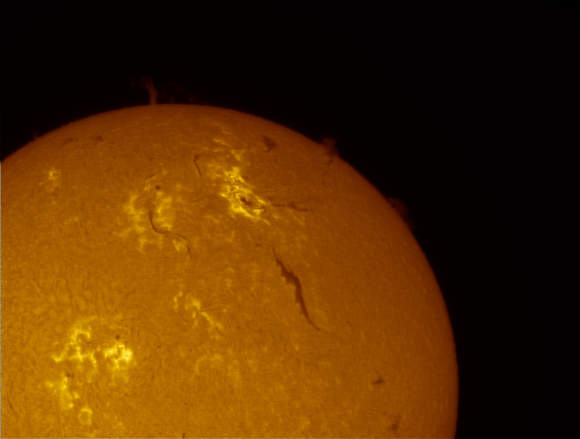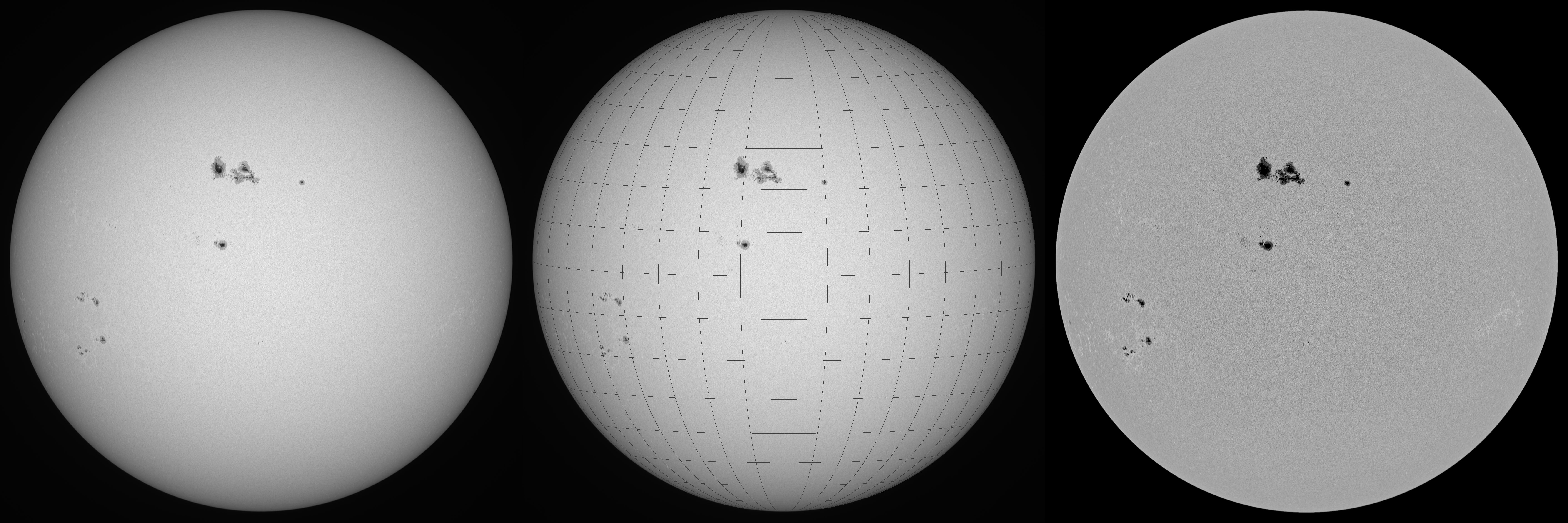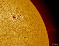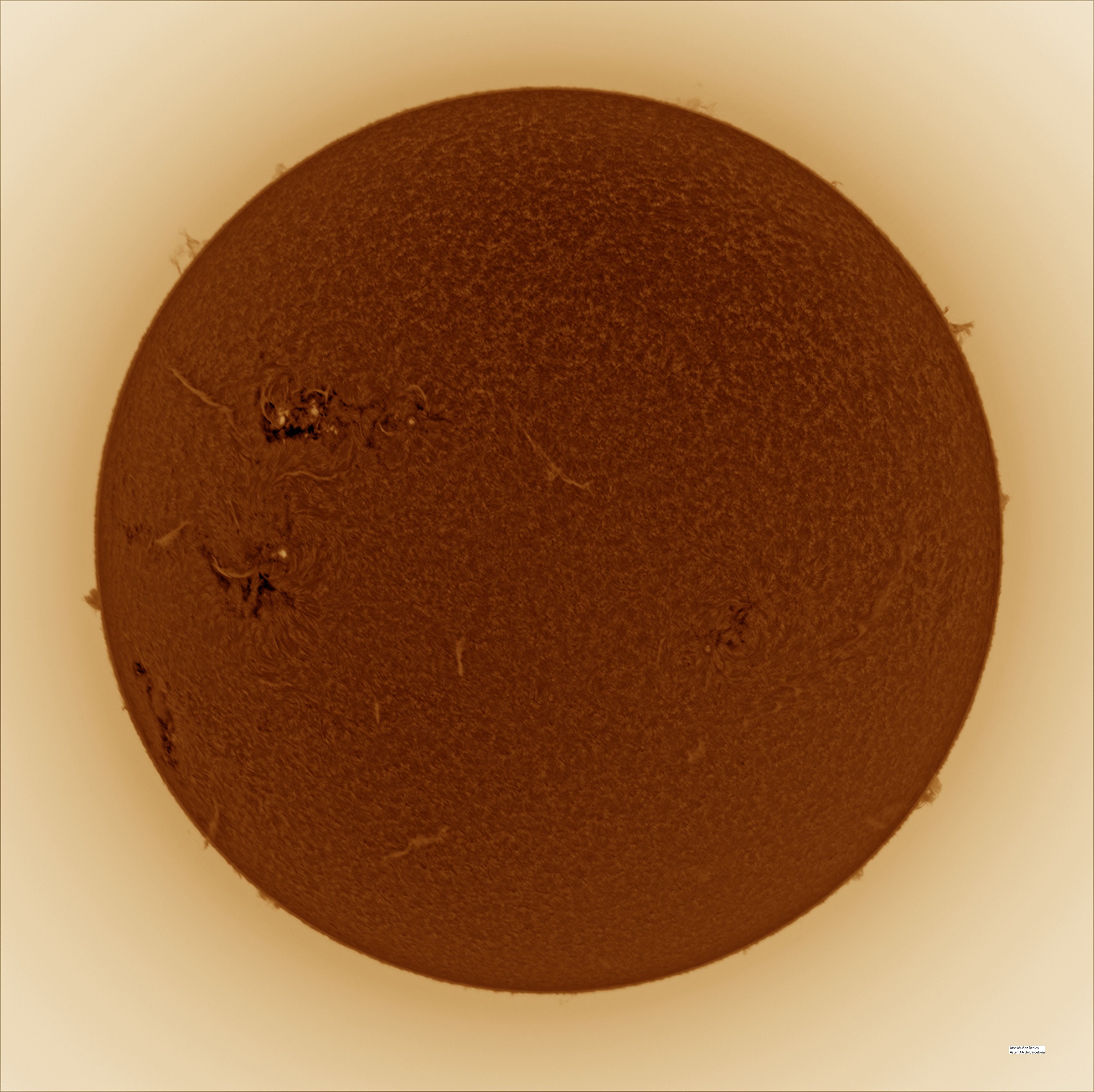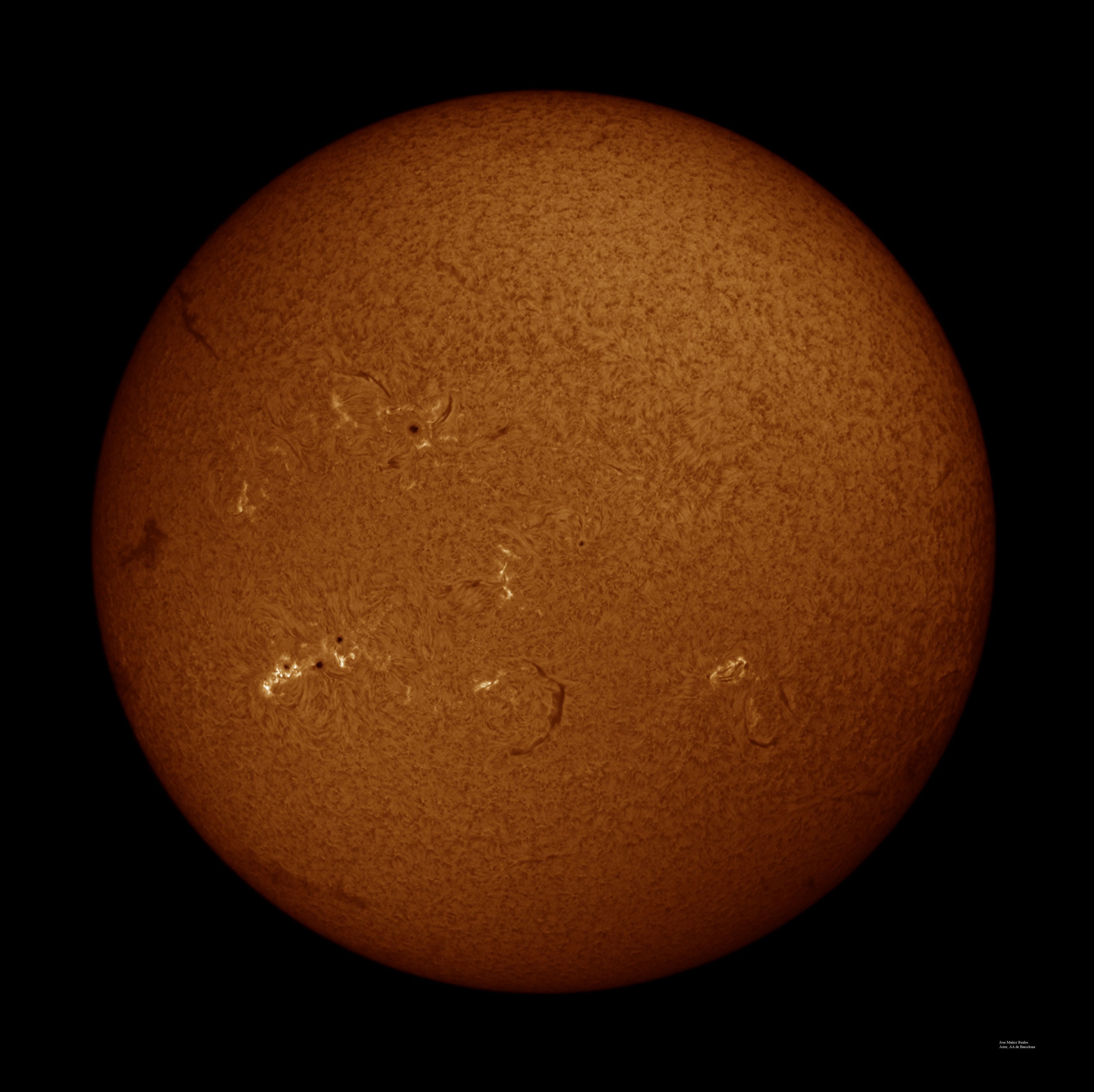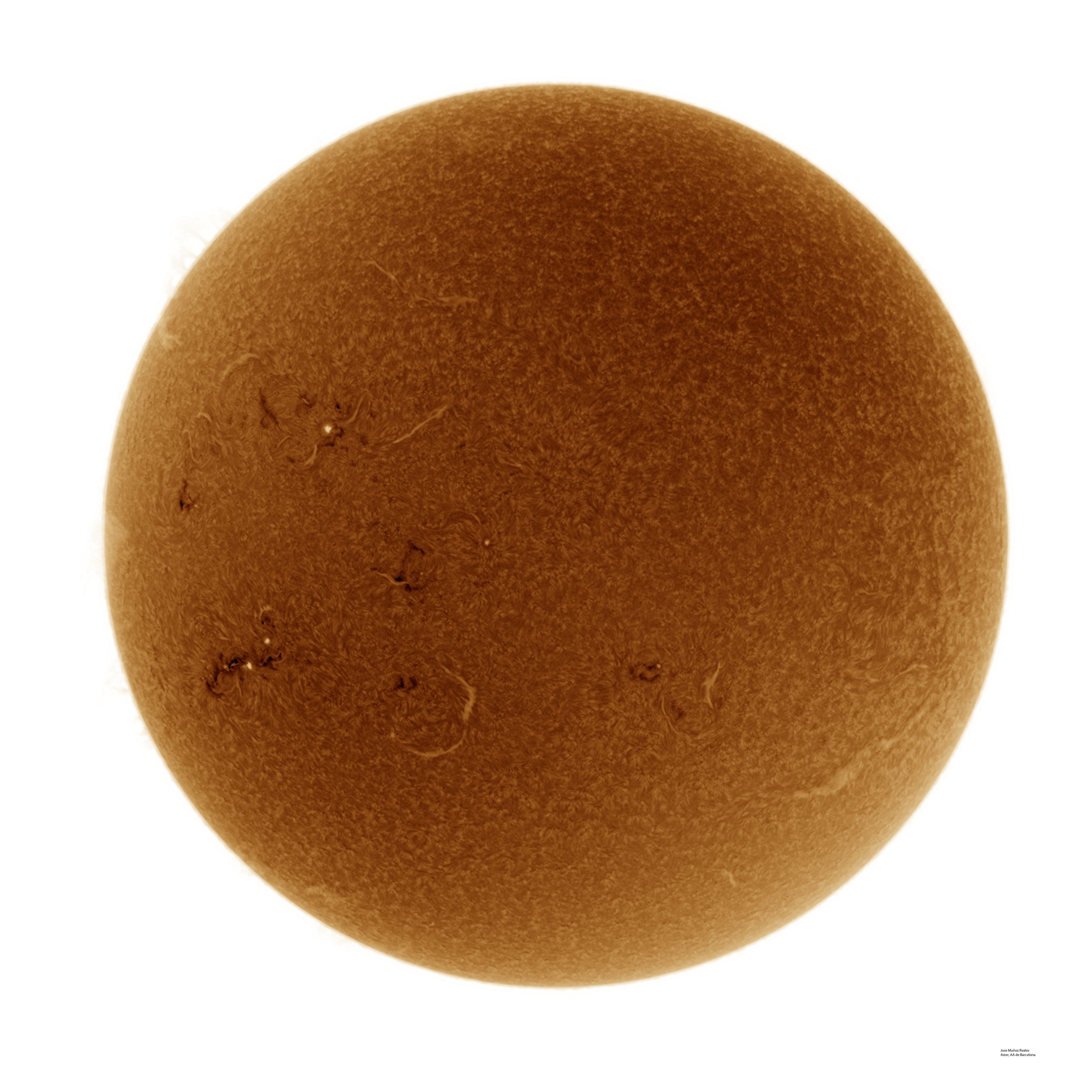 | Autor: José Muñoz Reales Disco: - Coronado SM60 + R90/600 + BF30 + ASI1600 Regiones: - Lunt 100mm/0.7A + R102/1000 + BF12 + barlow 2.5x + ASI174 Luz blanca: - R140/800 + barlow 3x + solar continuum + prisma Herschel + ASI290 |