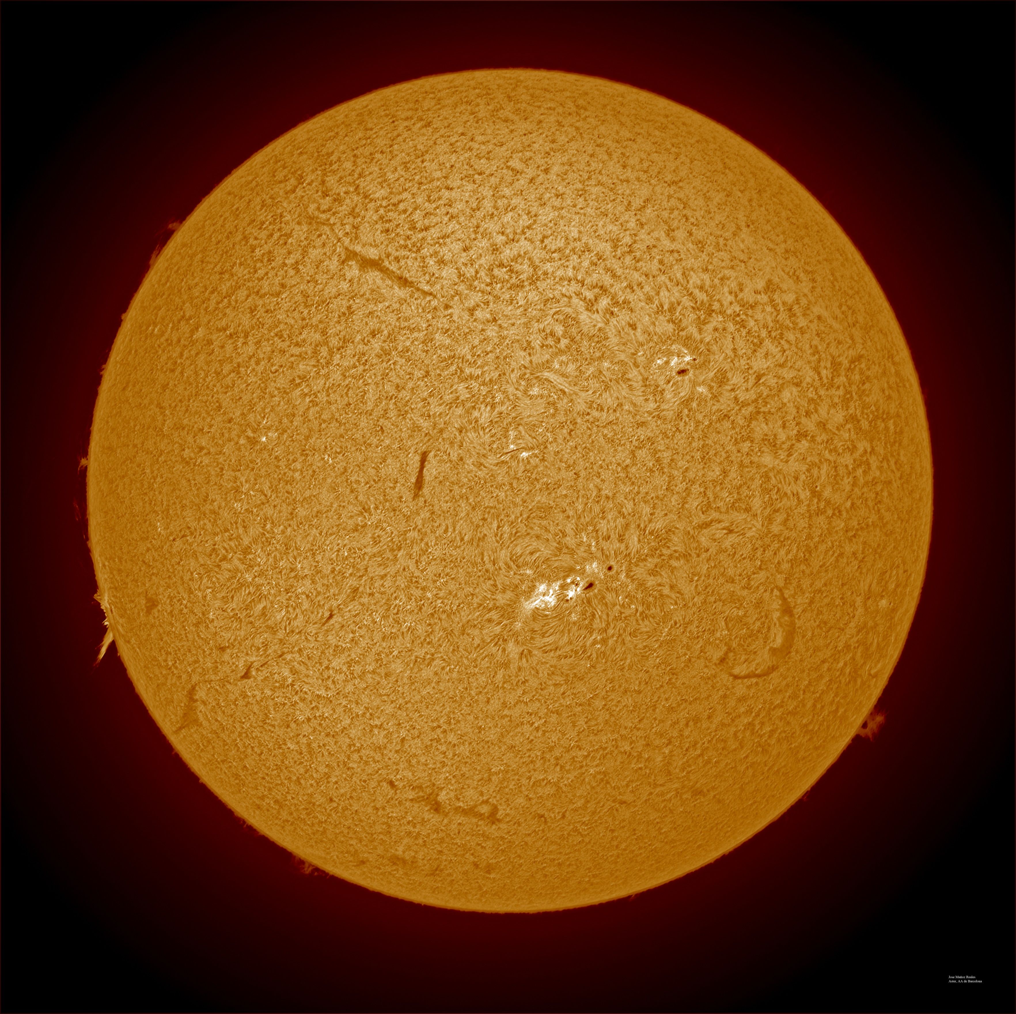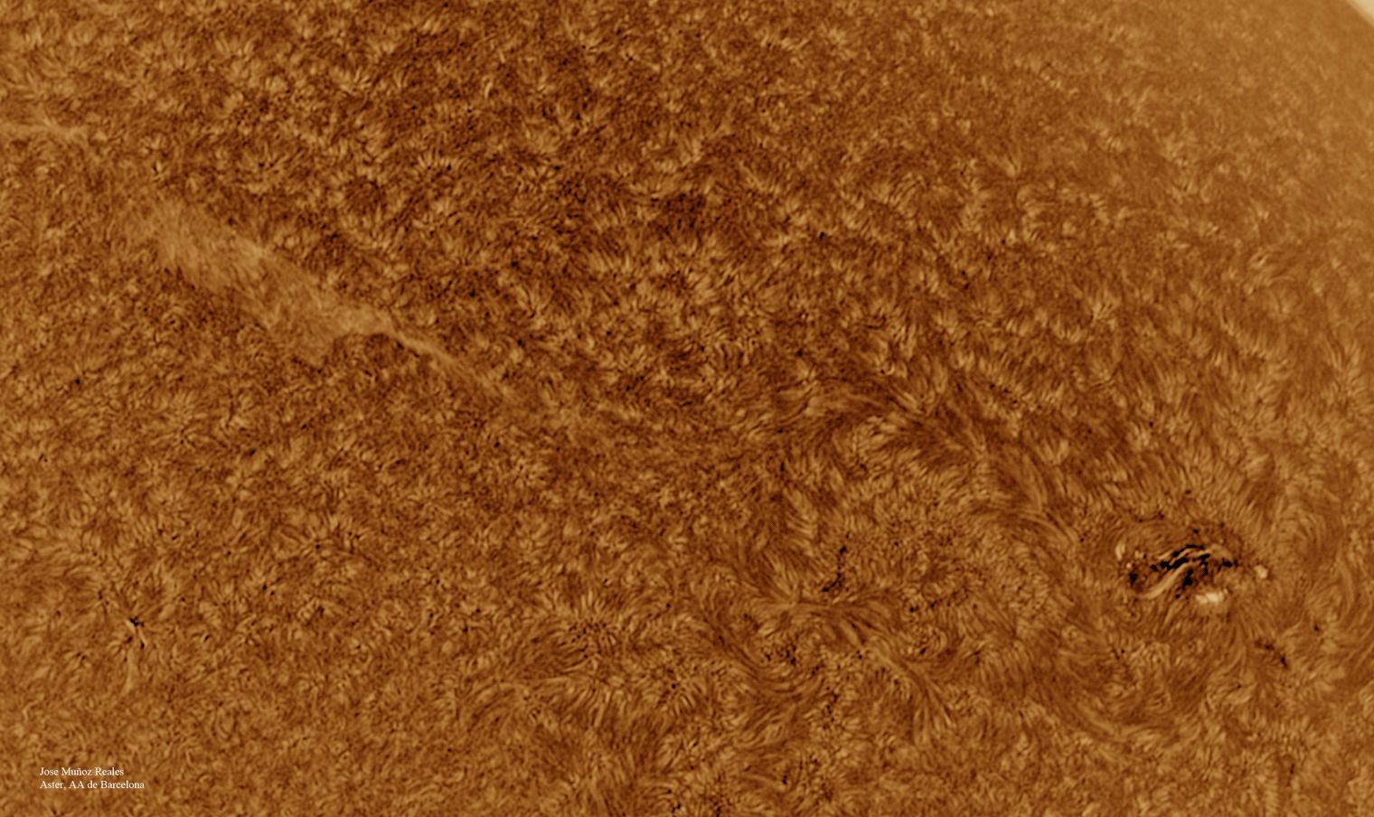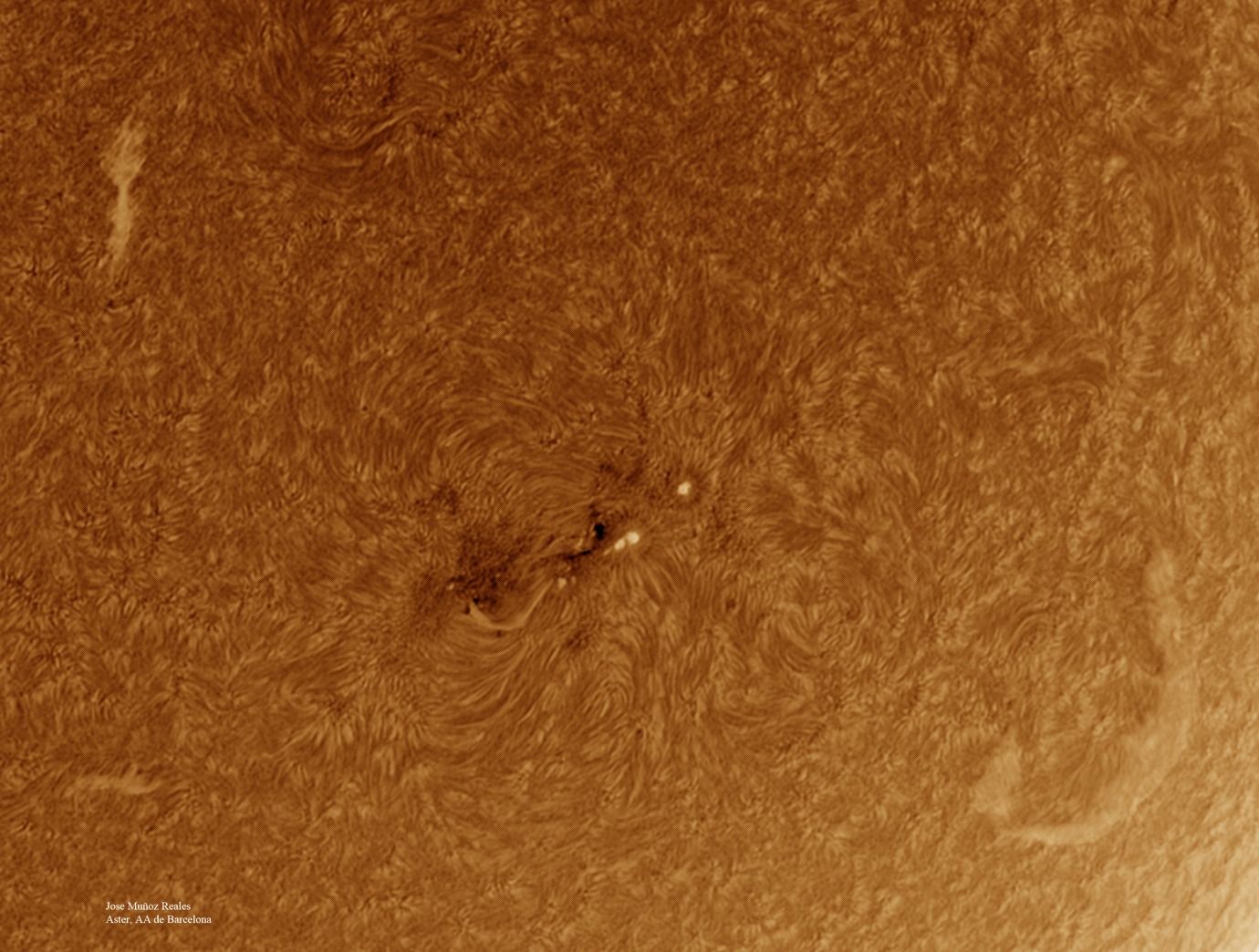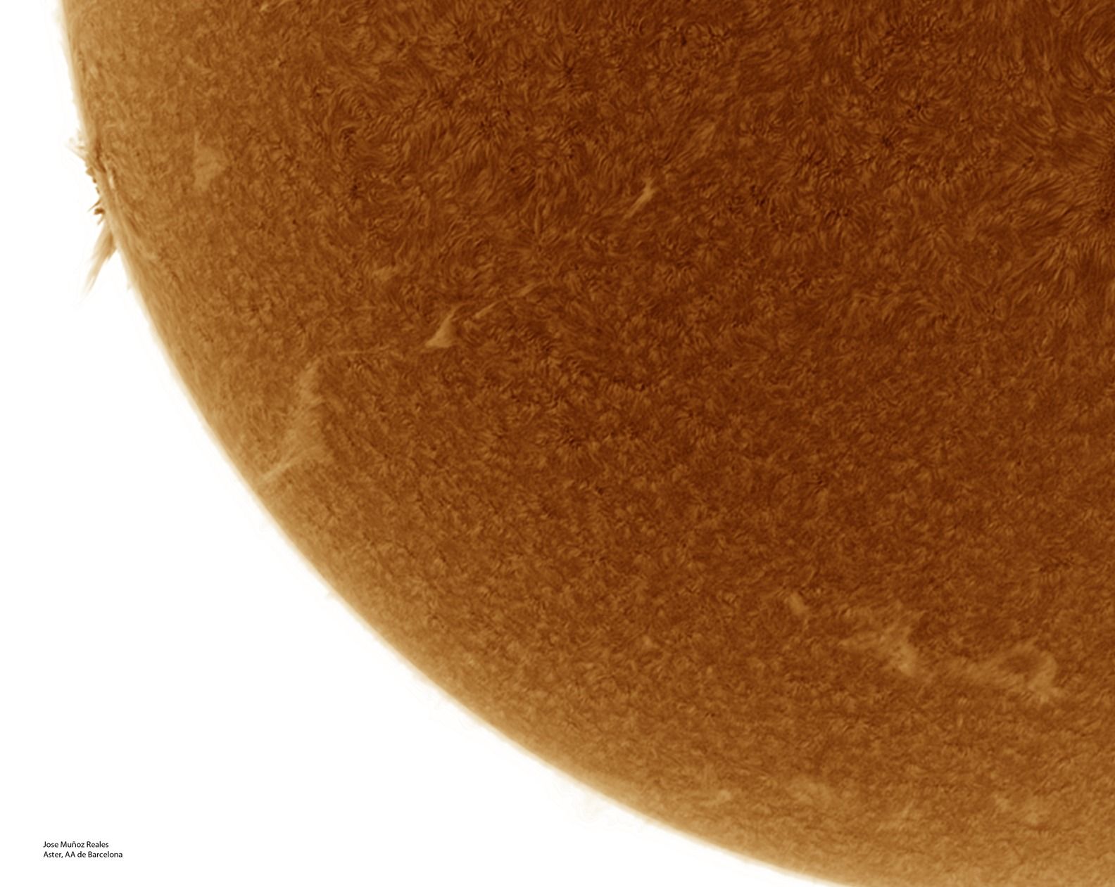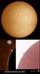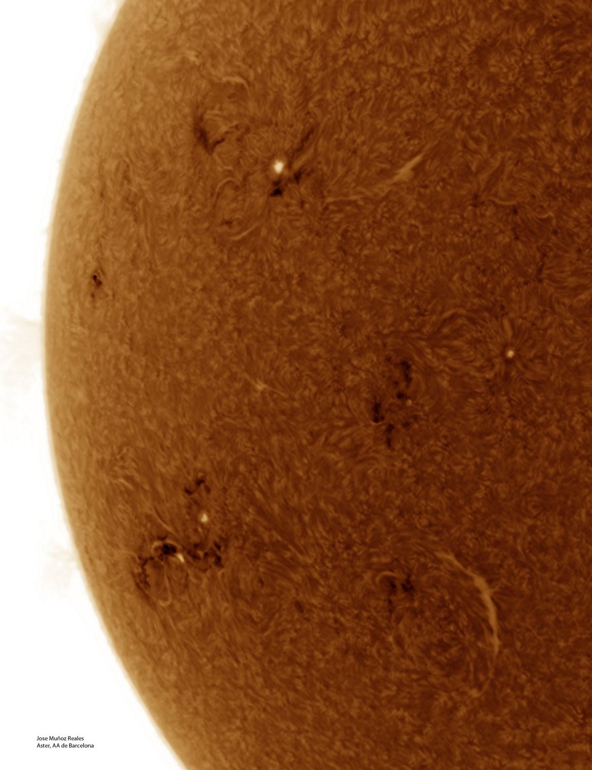 | Autor: Albert Sánchez Instrumento: - Ha: ED120 f-38 + ASI183MM + Quark H alpha - Ca: Baader K-Line - Visible: Filtro Calcio y Baader Astrosolar |