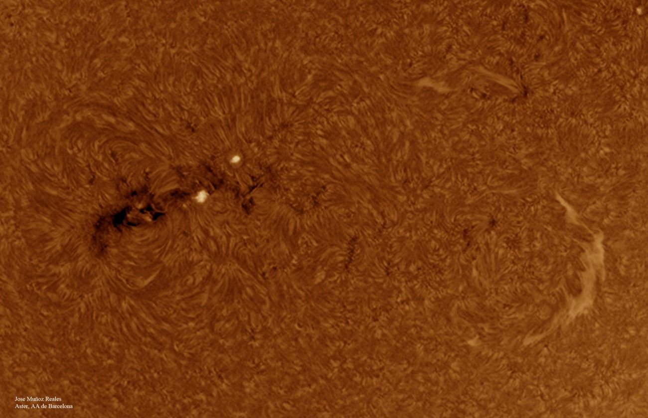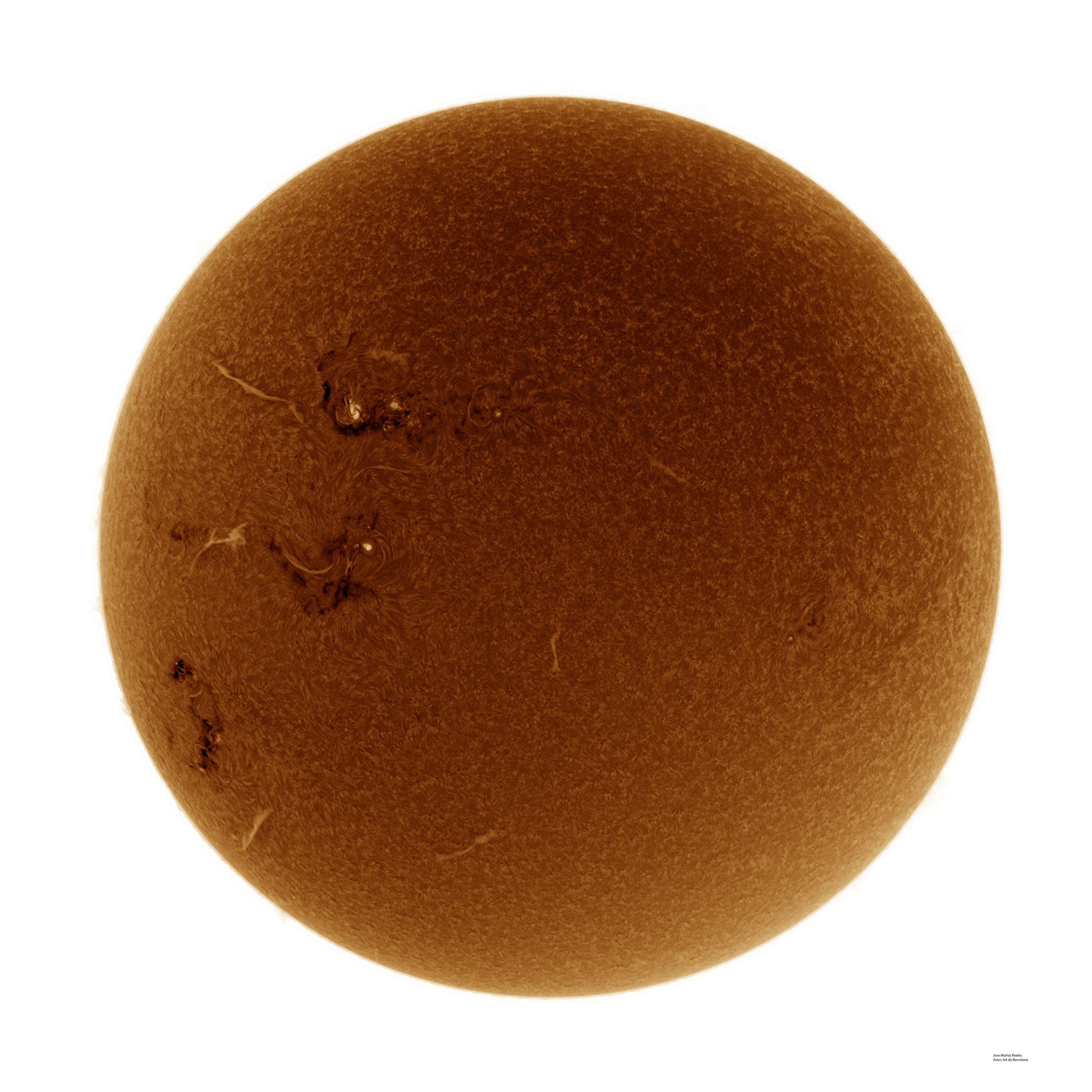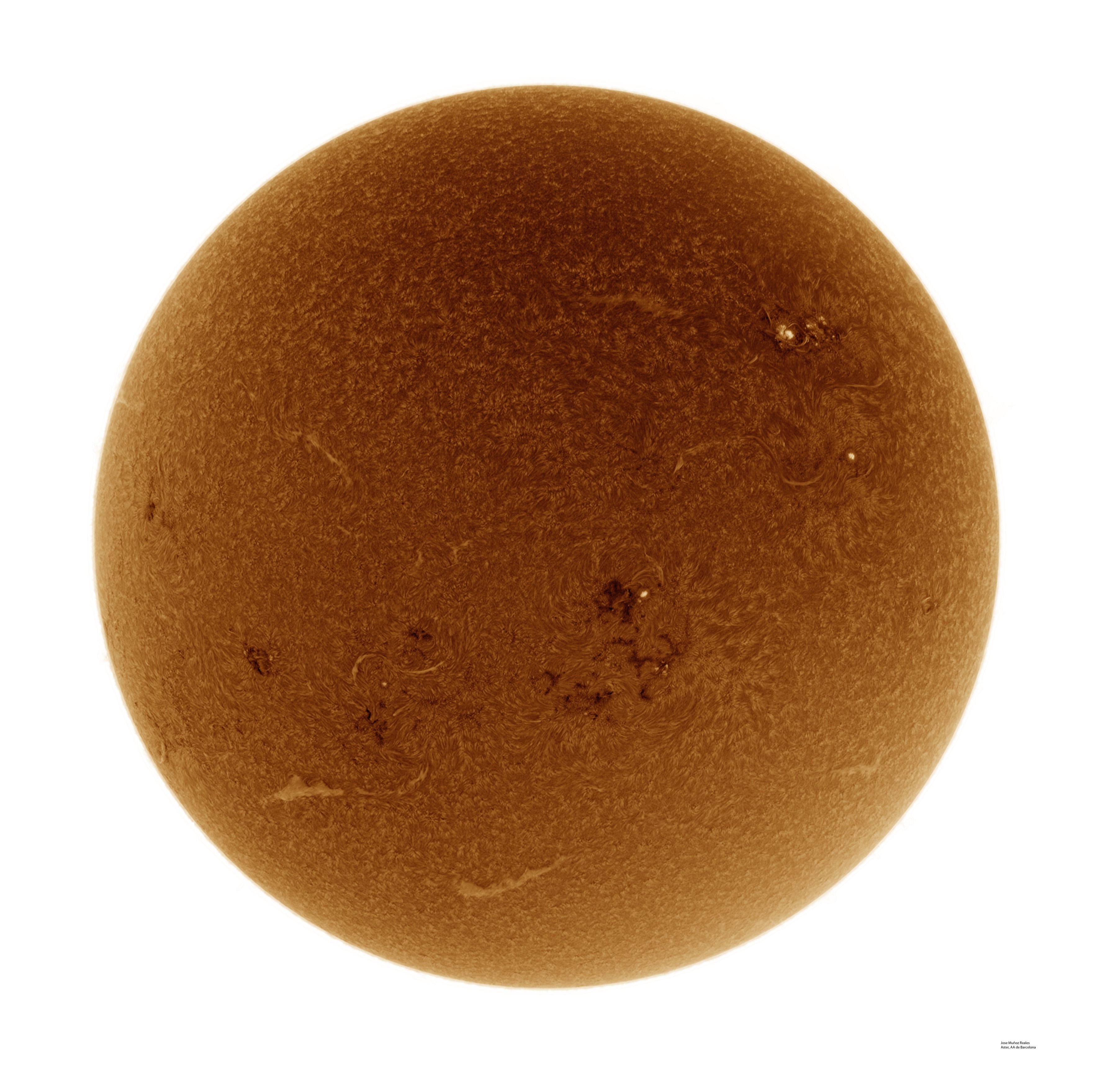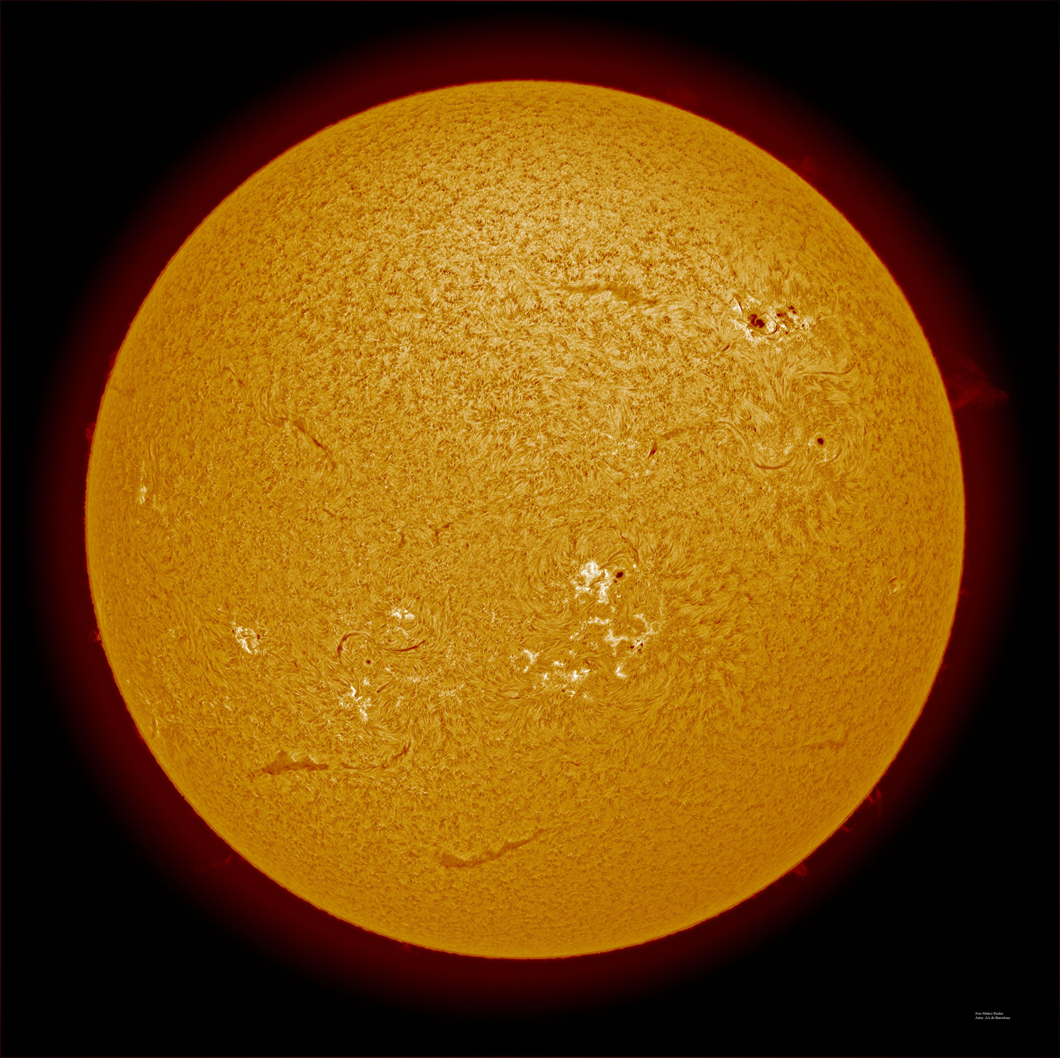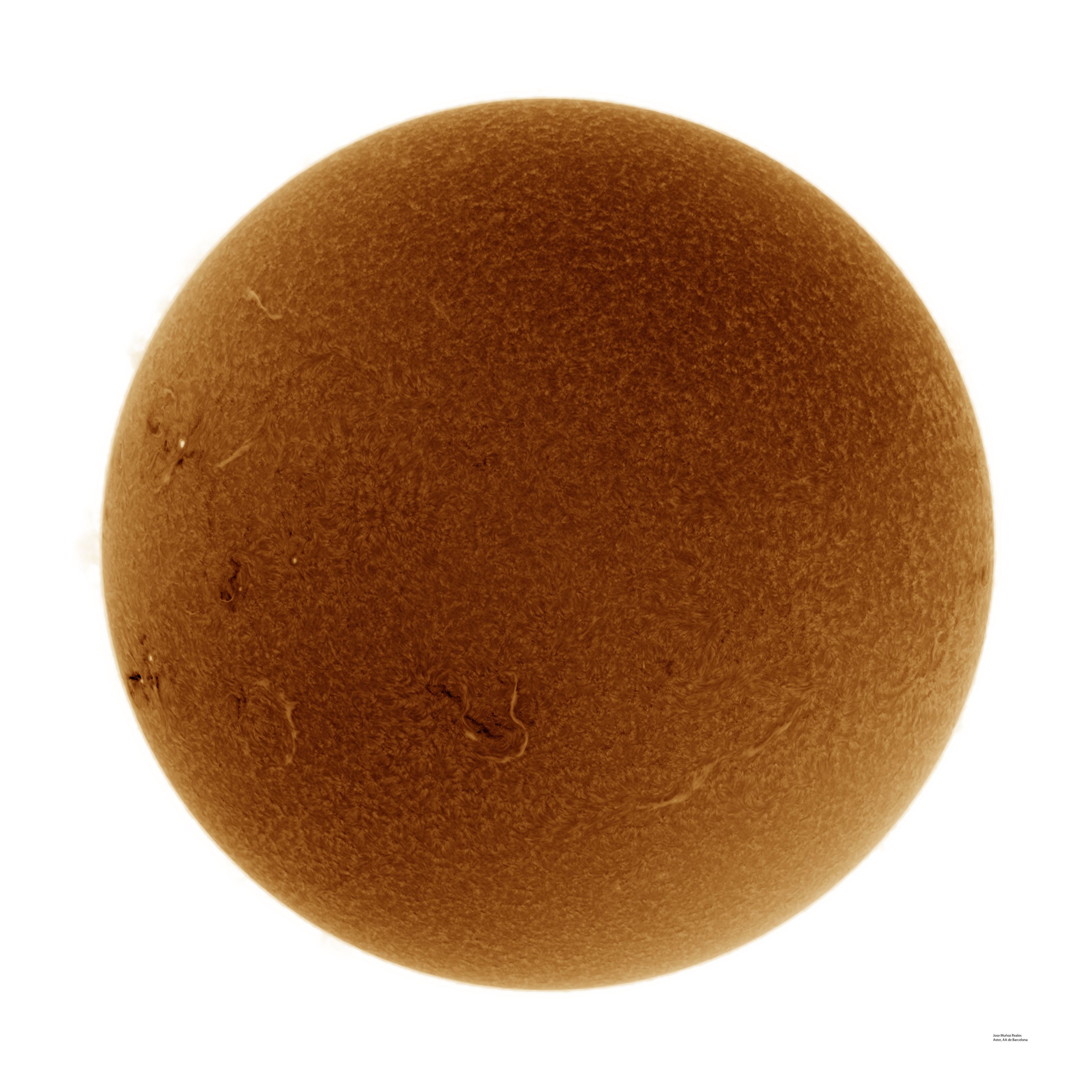| Autor: Albert Sánchez Instrumento: - Ha: ED120 f-38 + ASI183MM + Quark H alpha - Ca: Baader K-Line - Visible: Filtro Calcio y Baader Astrosolar |