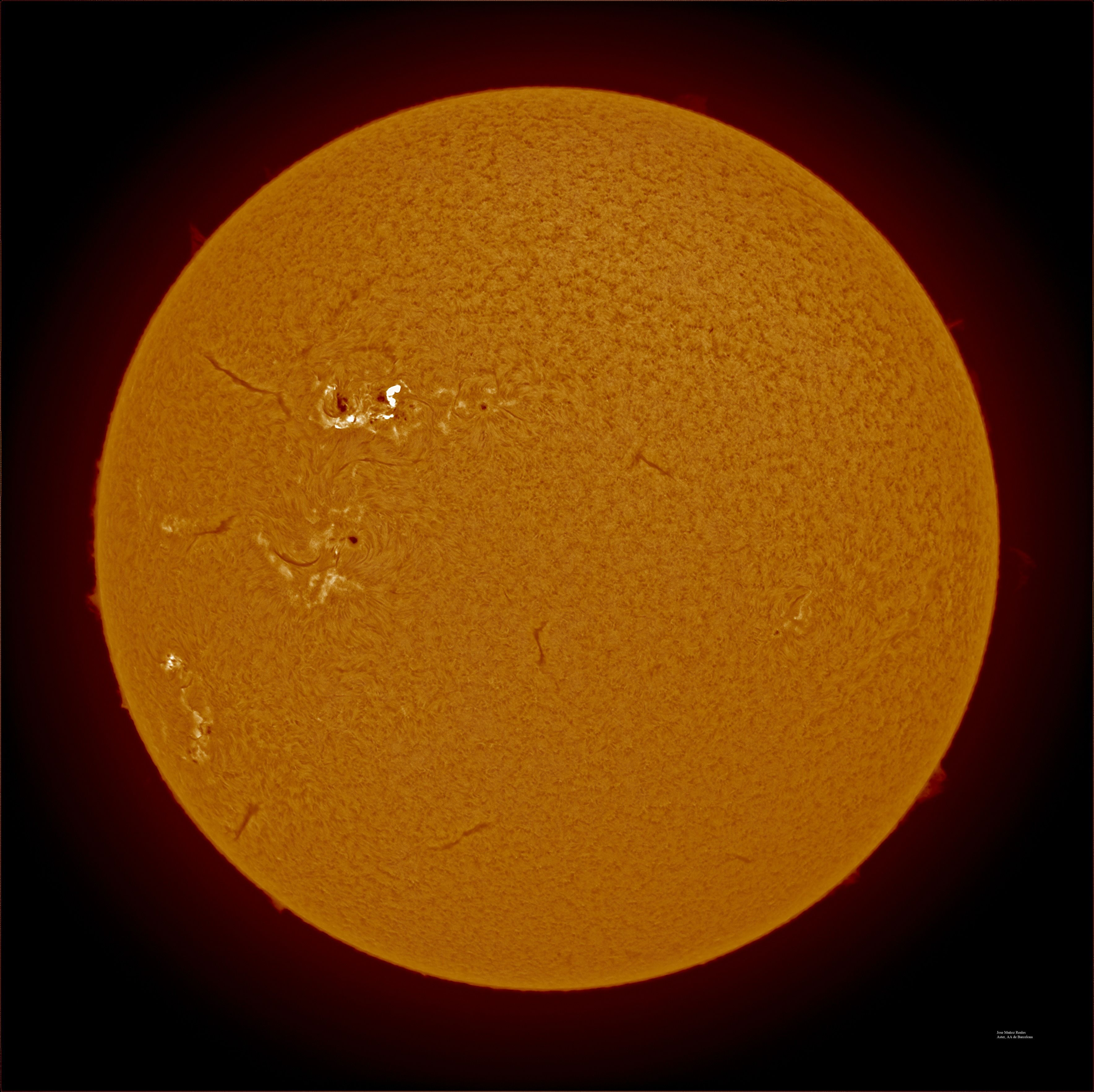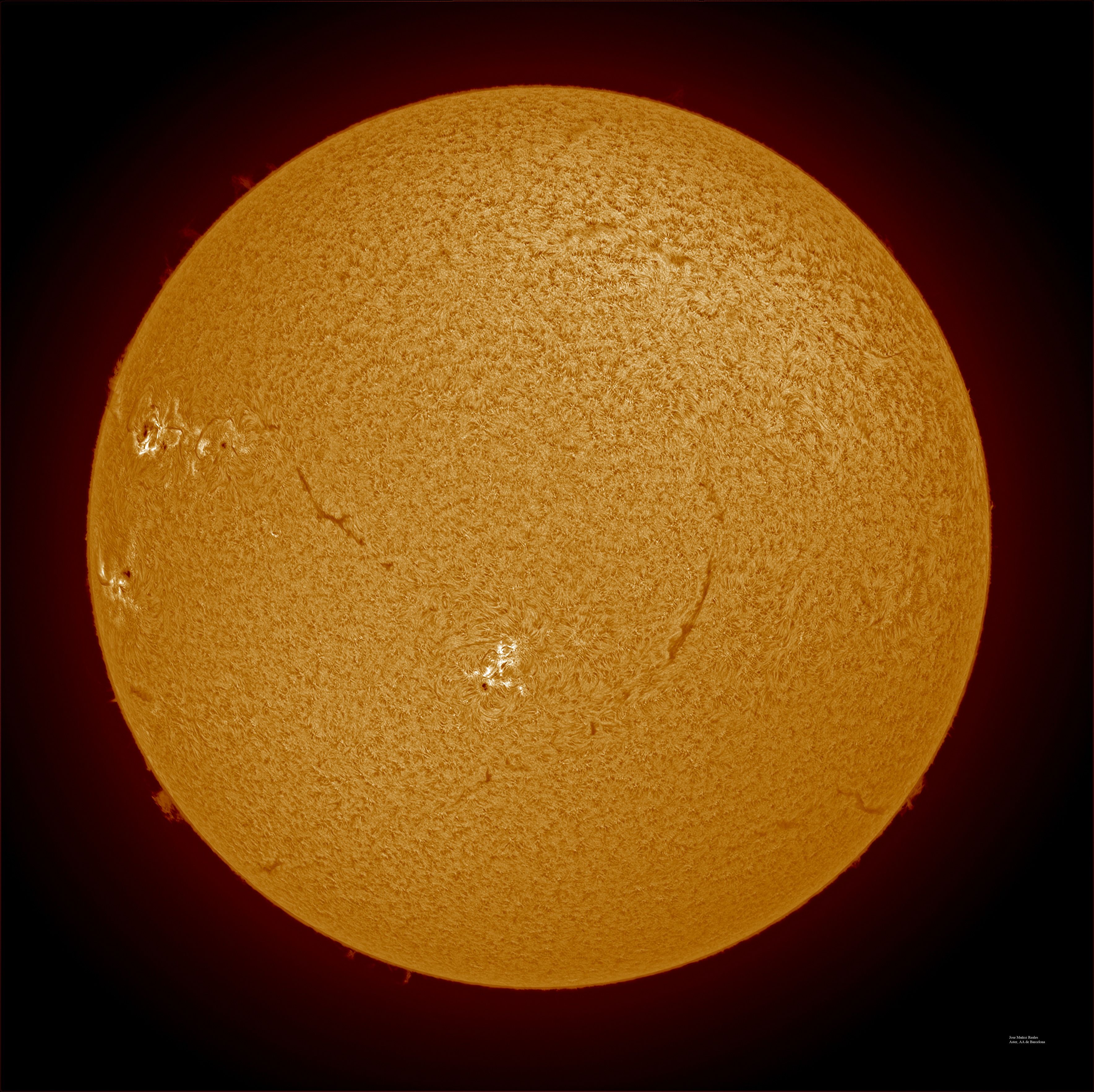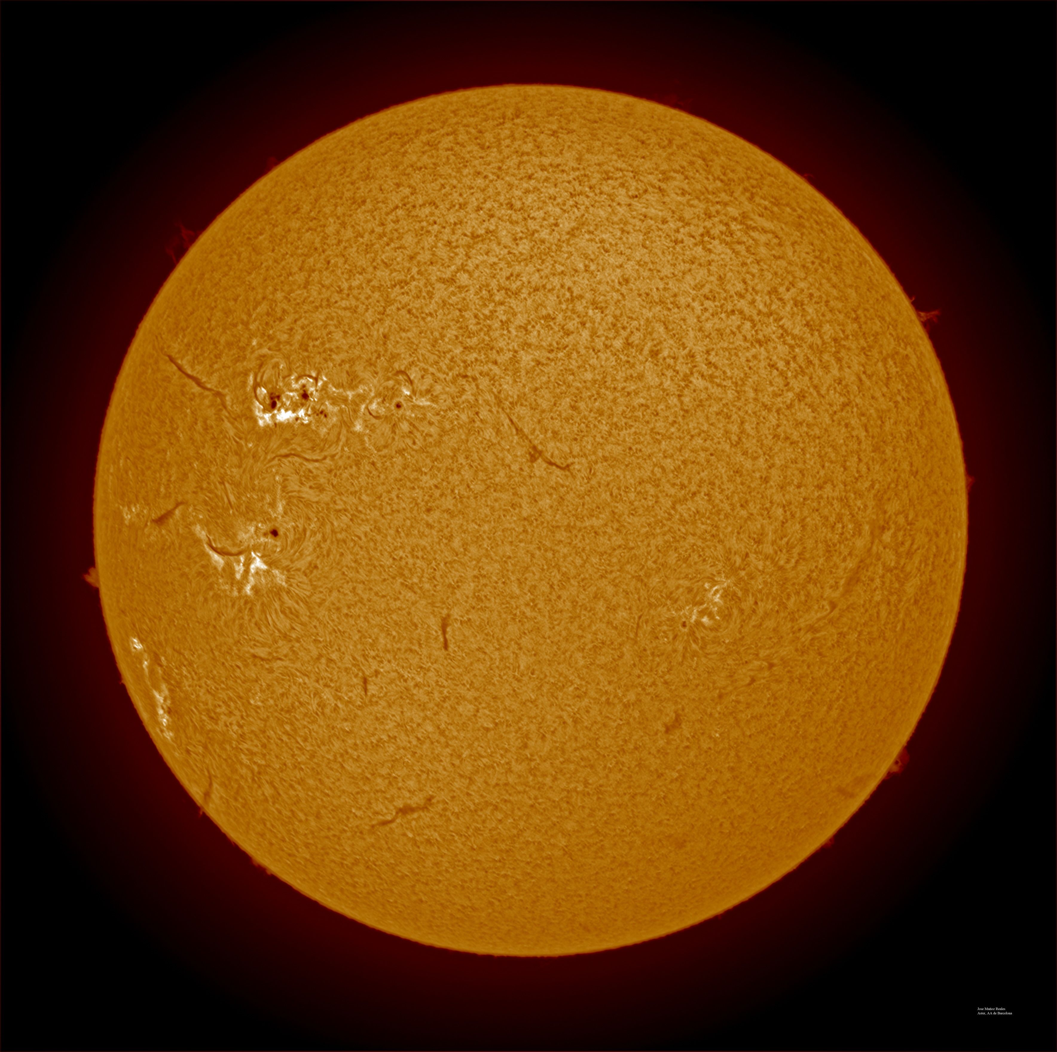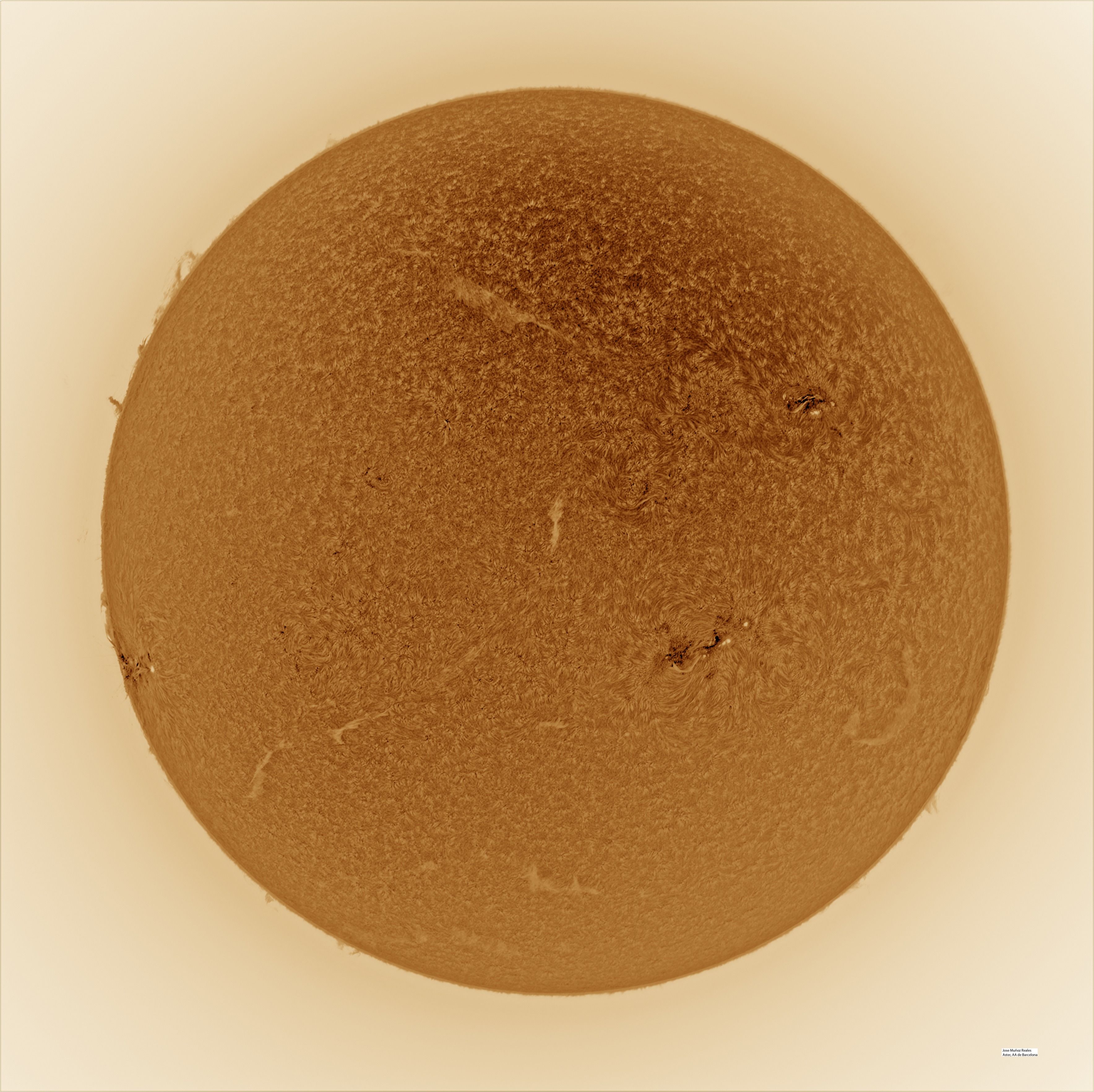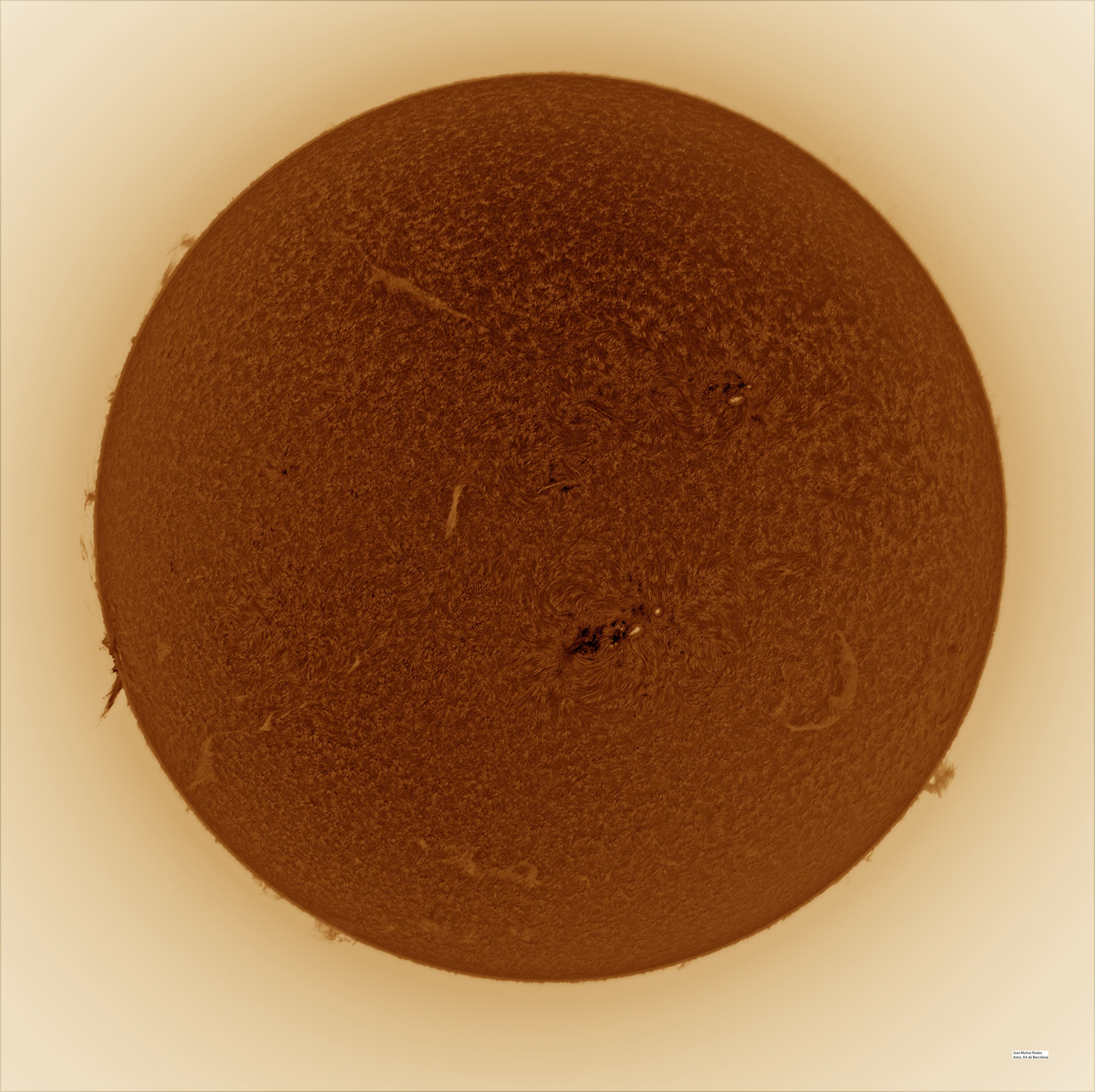 | Autor: Albert Sánchez Instrumento: - Ha: ED120 f-38 + ASI183MM + Quark H alpha - Ca: Baader K-Line - Visible: Filtro Calcio y Baader Astrosolar |