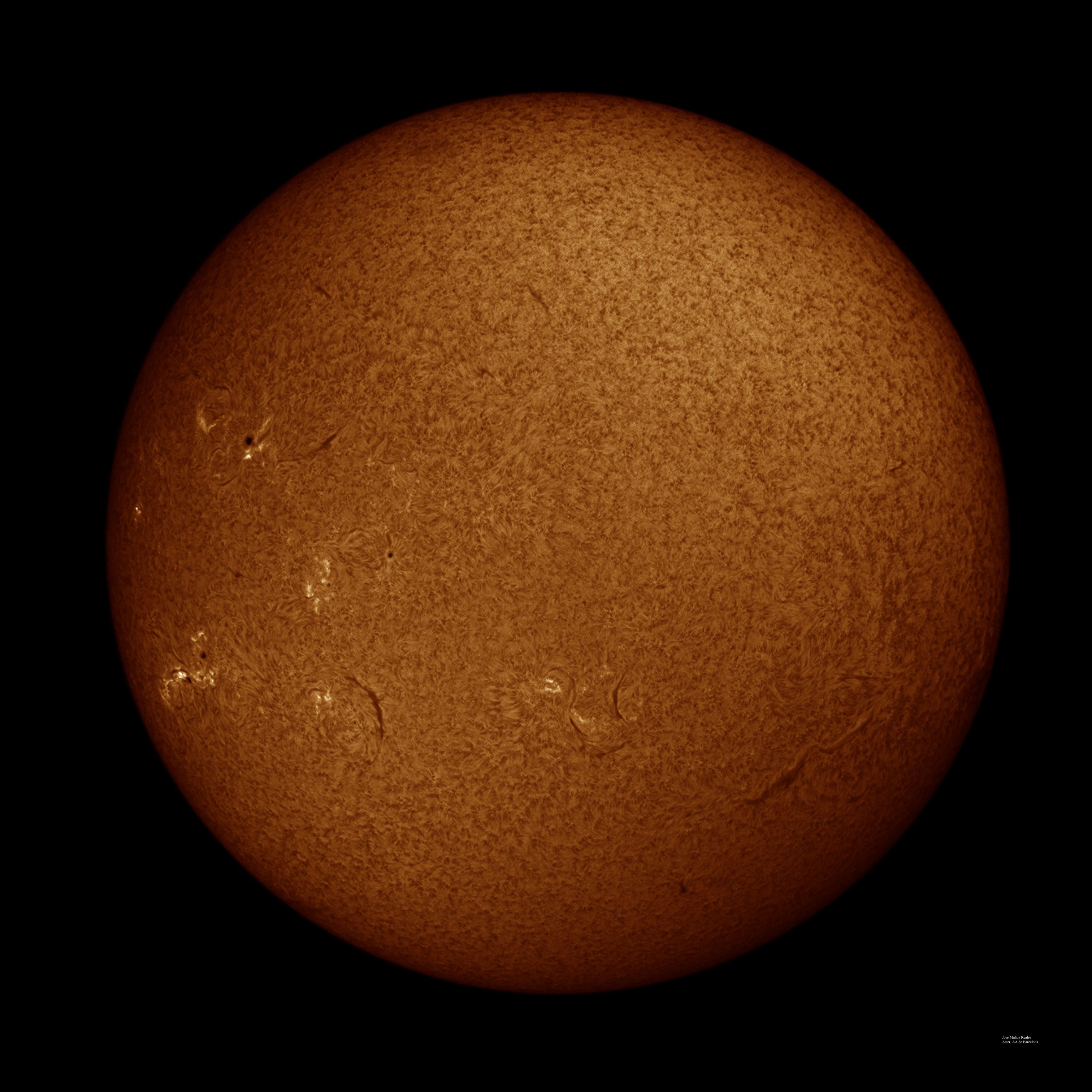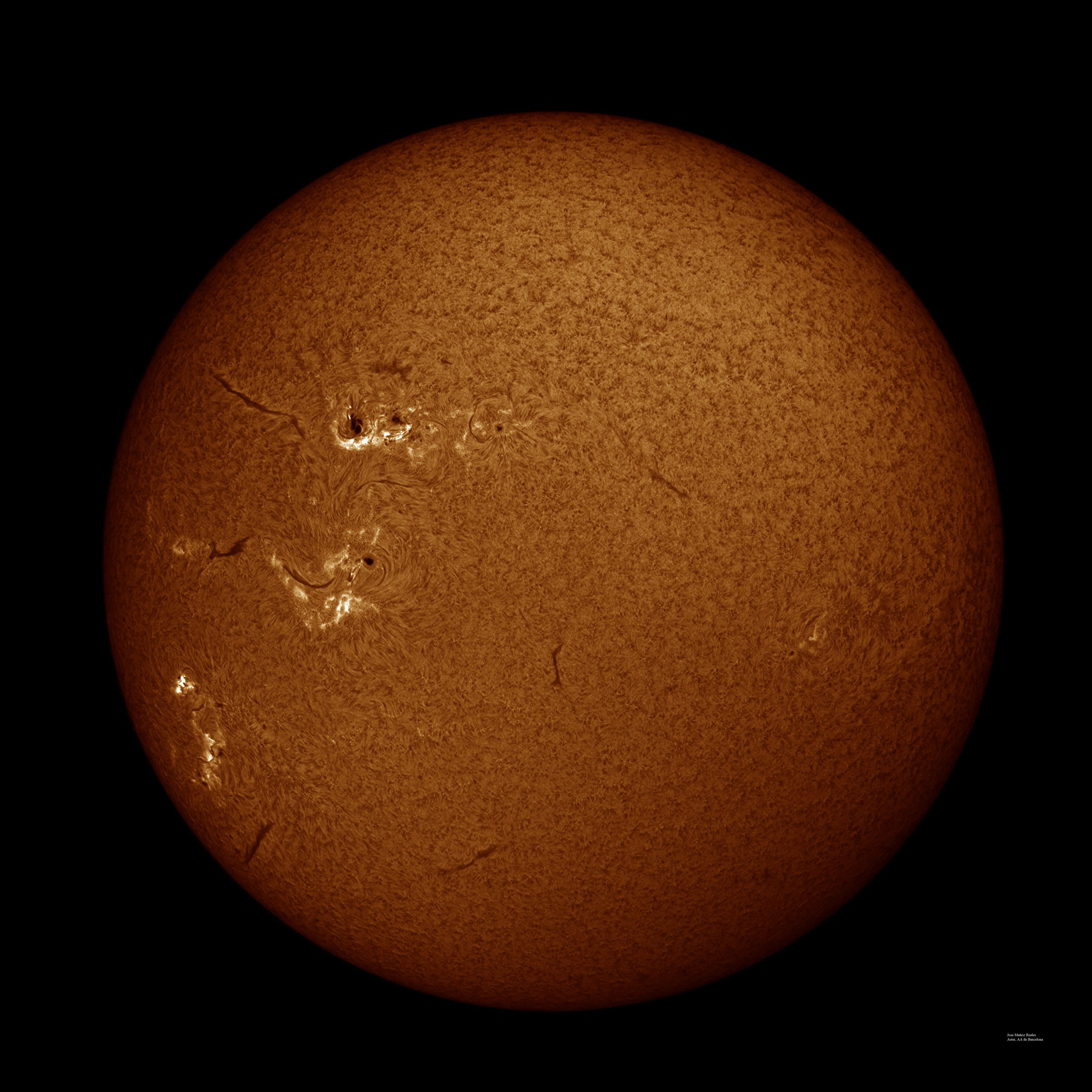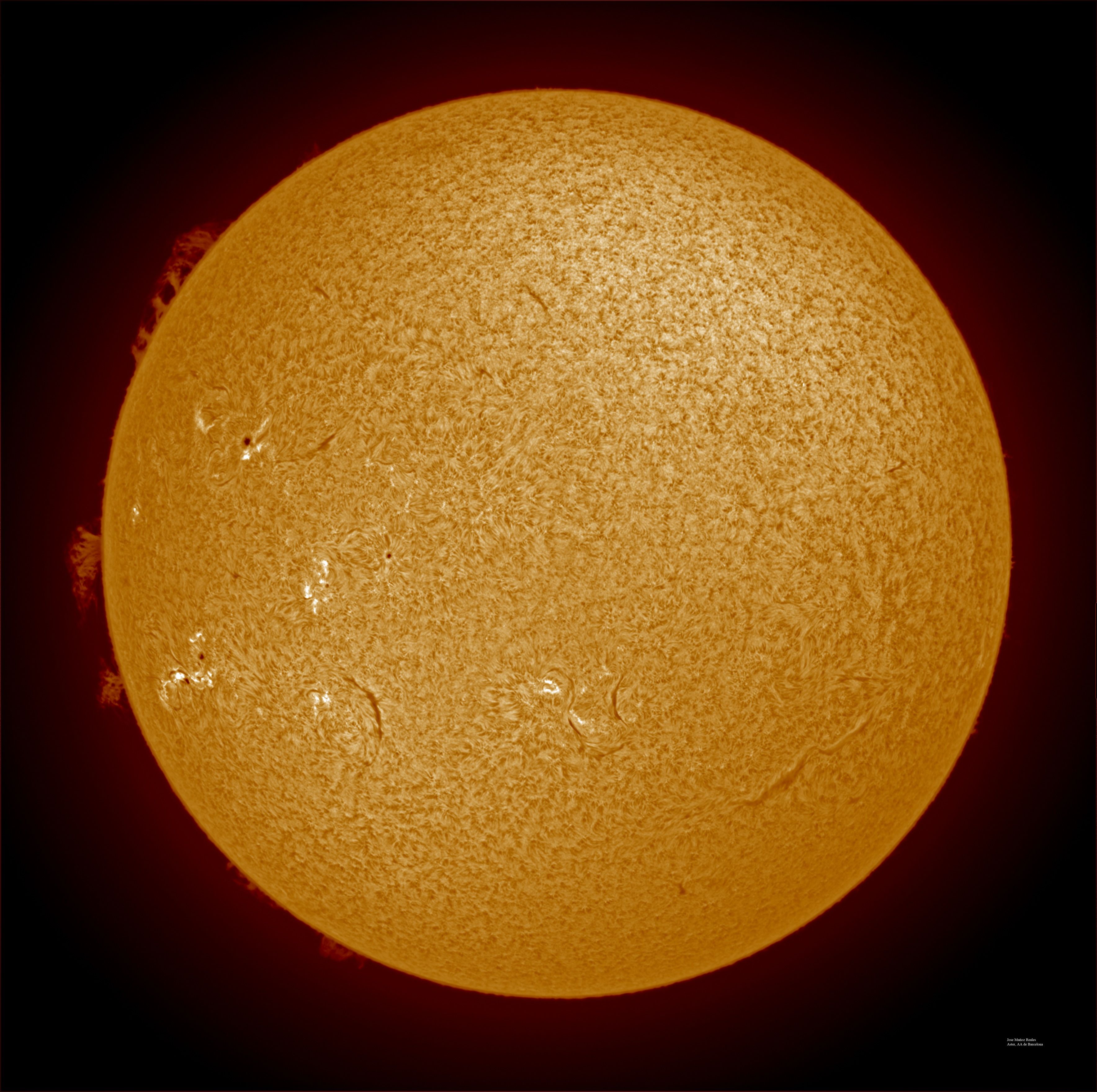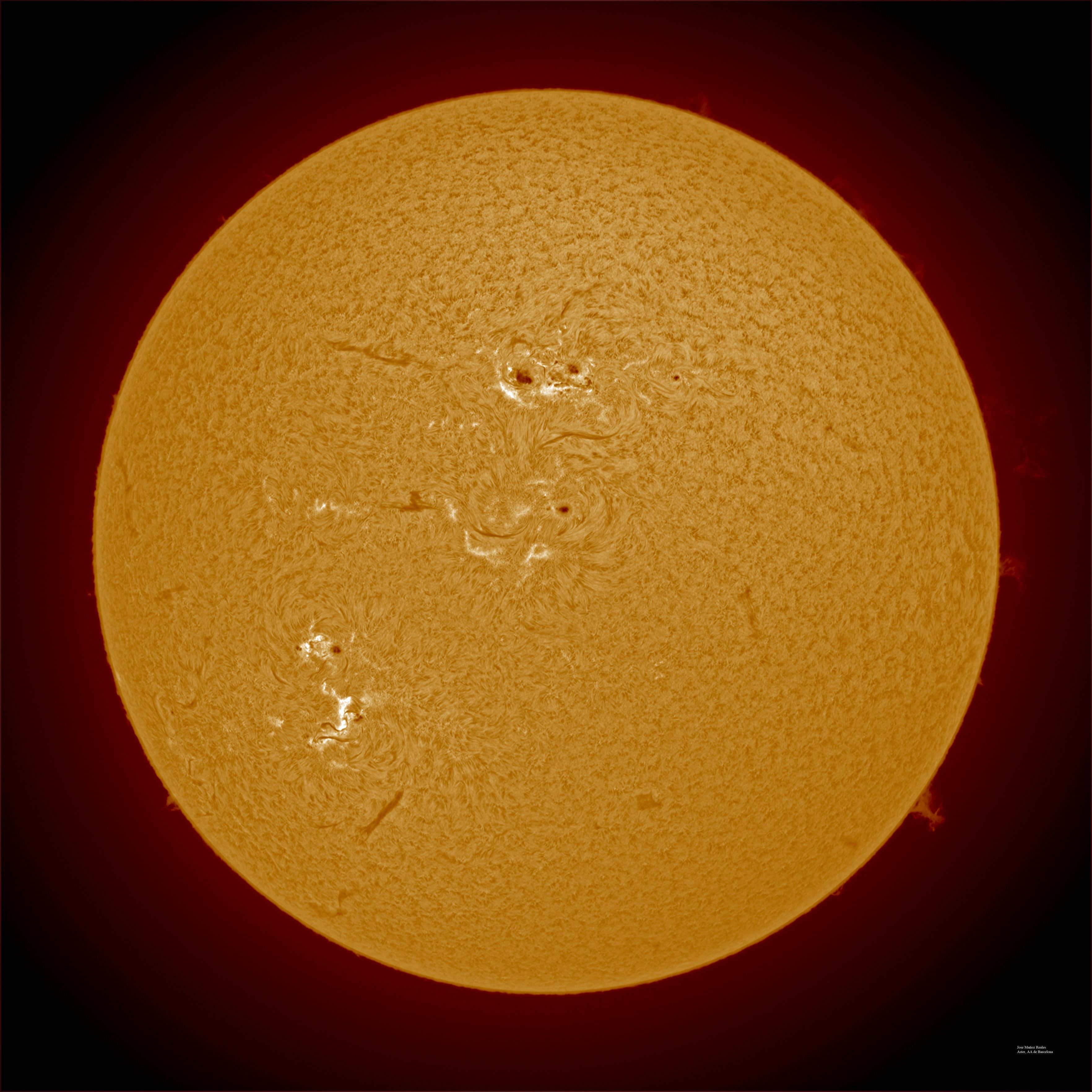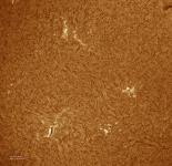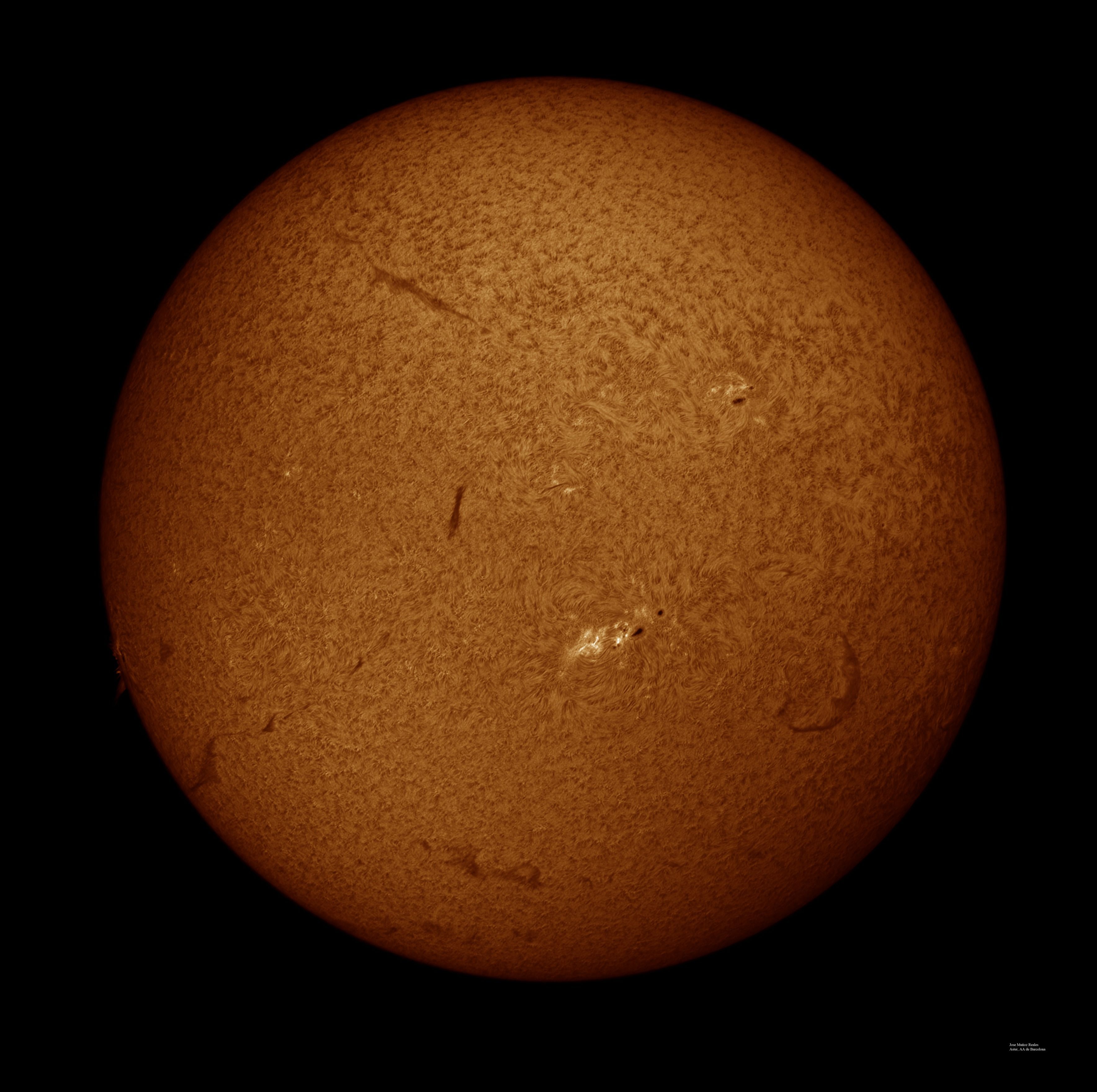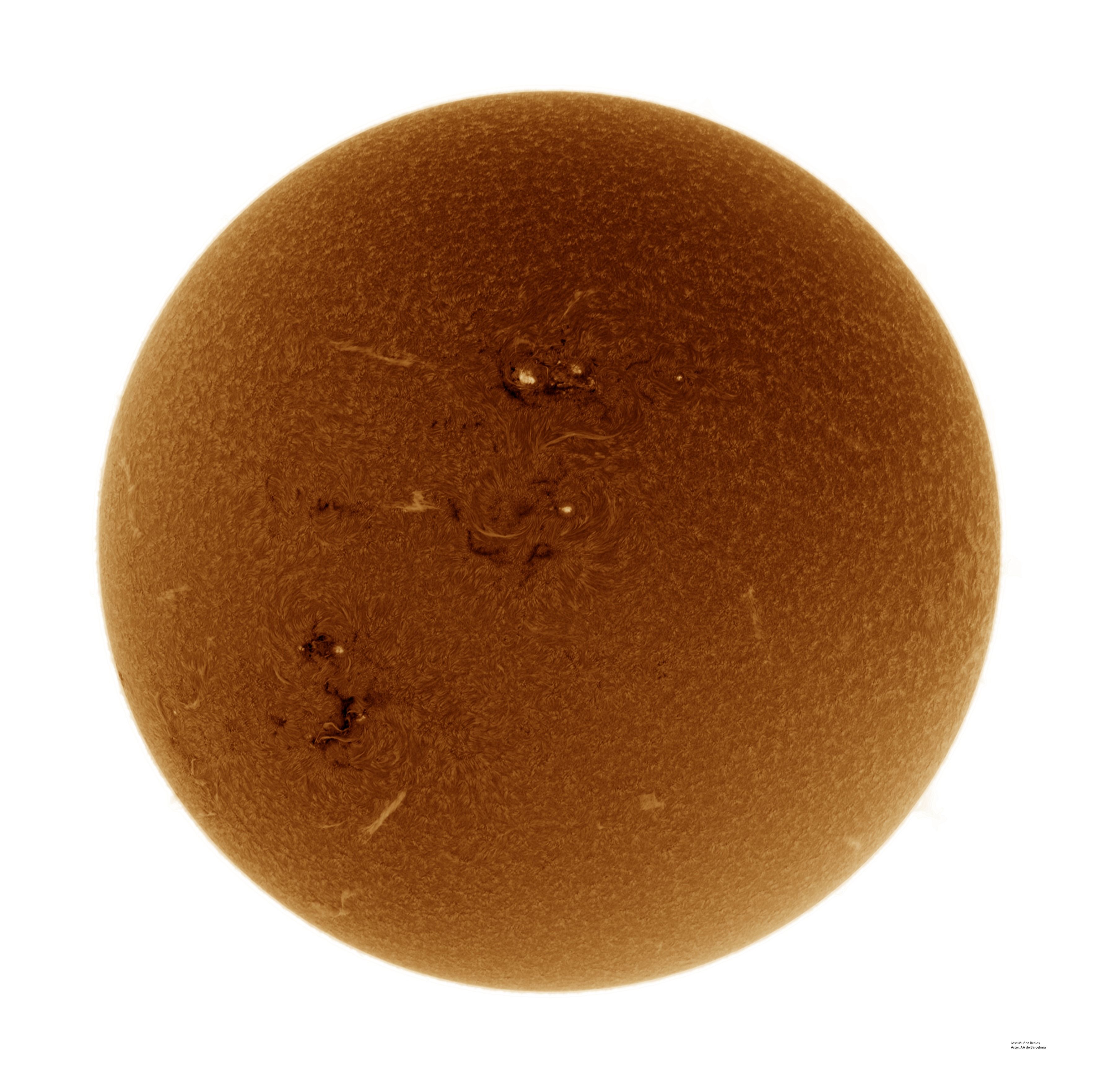| Autor: Albert Sánchez Instrumento: - Ha: ED120 f-38 + ASI183MM + Quark H alpha - Ca: Baader K-Line - Visible: Filtro Calcio y Baader Astrosolar |