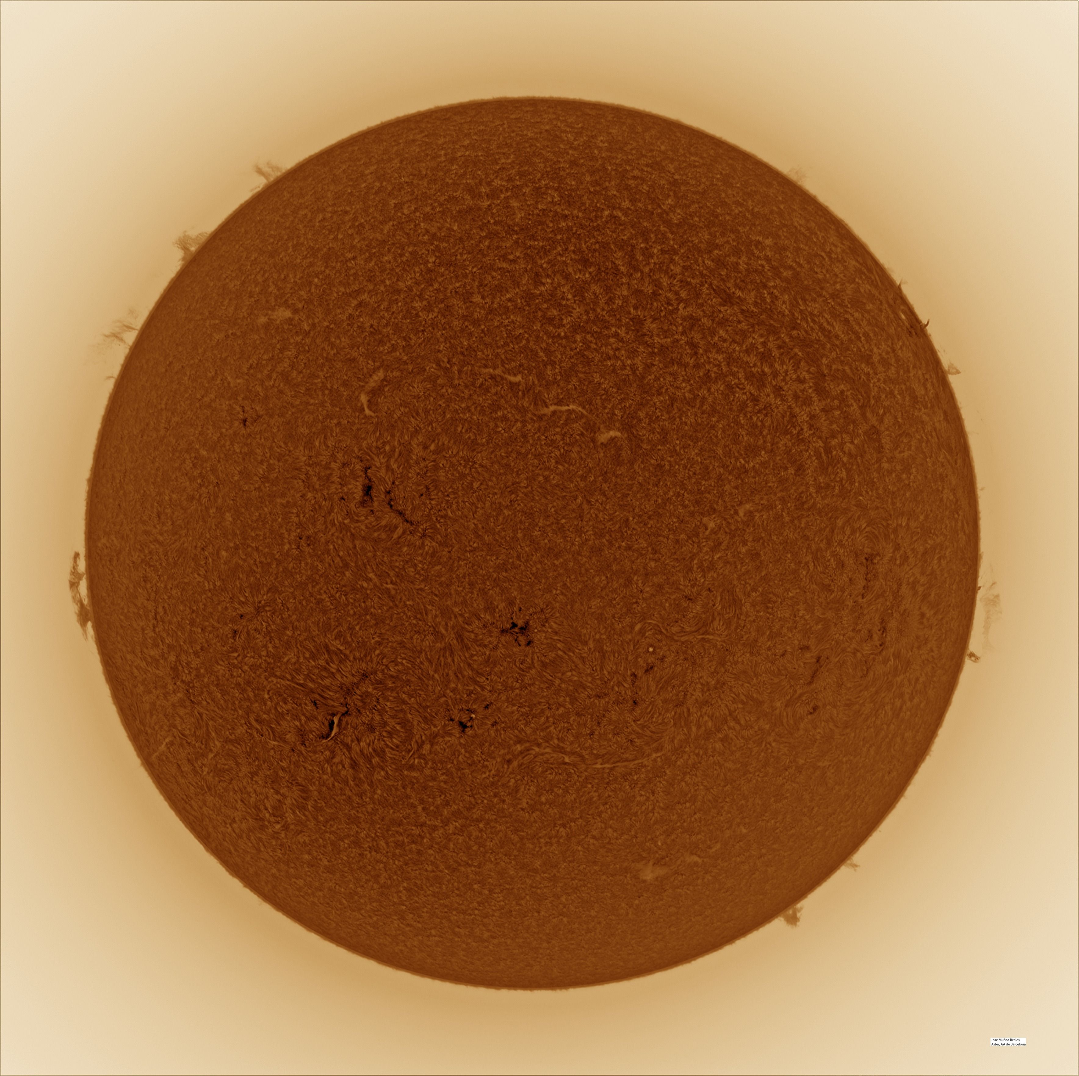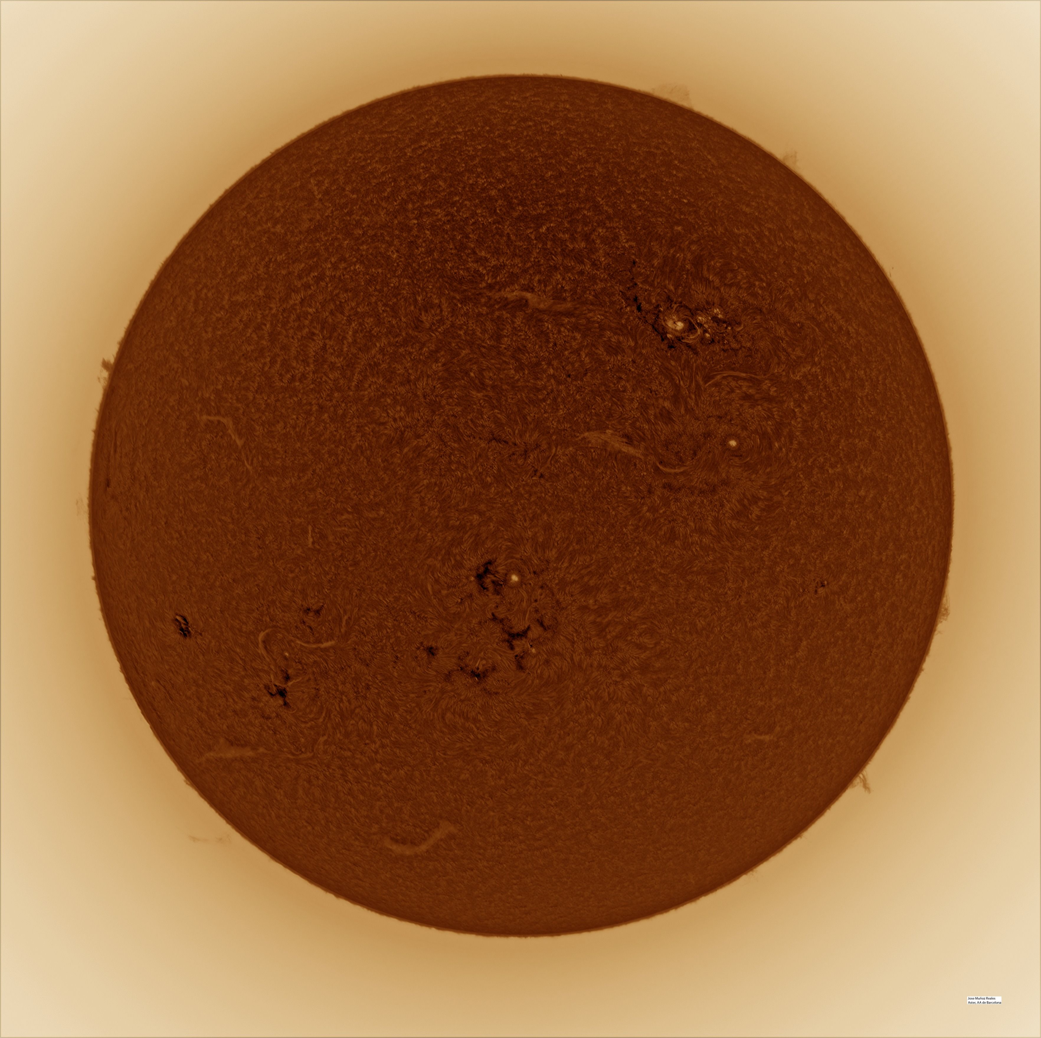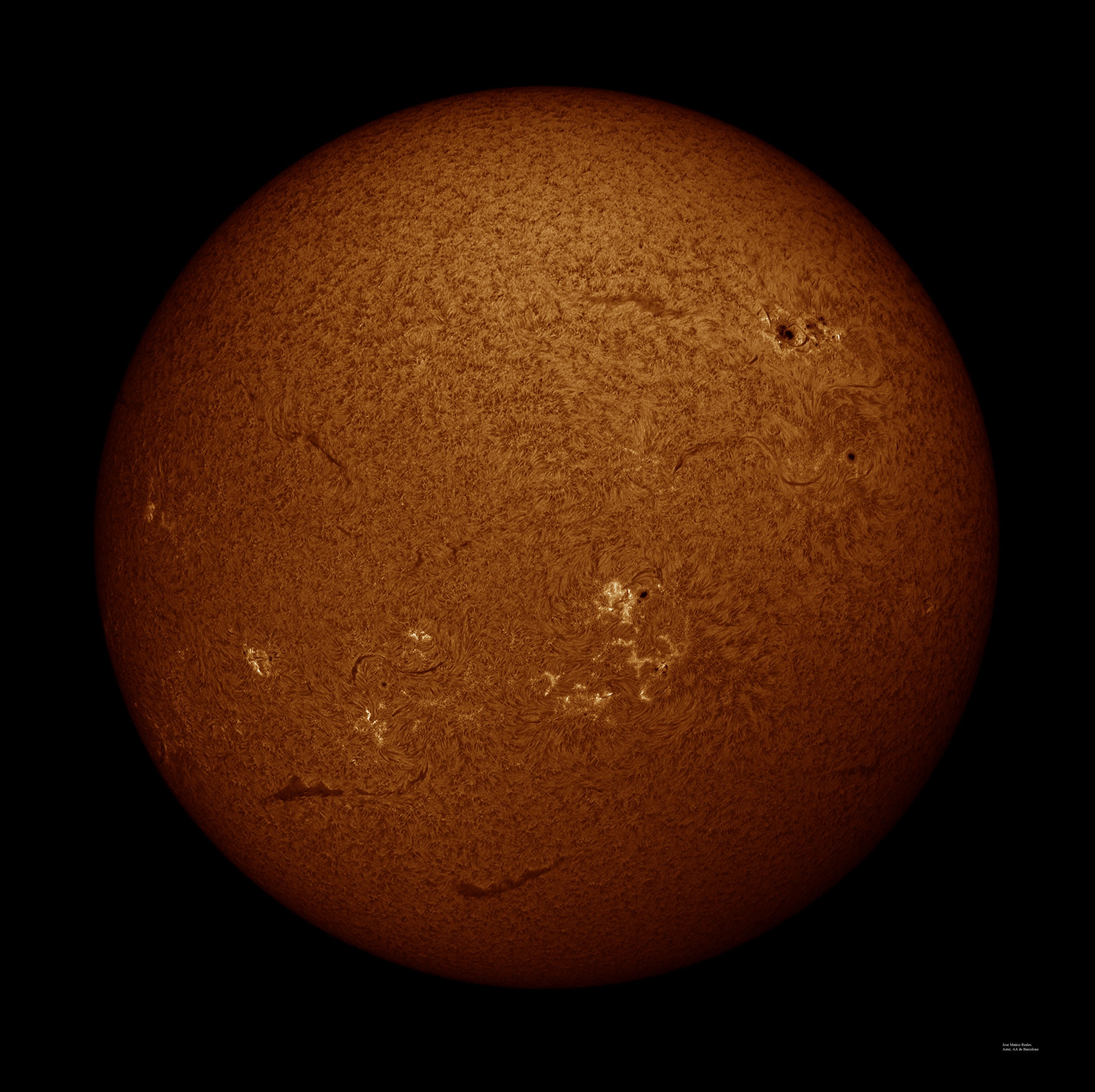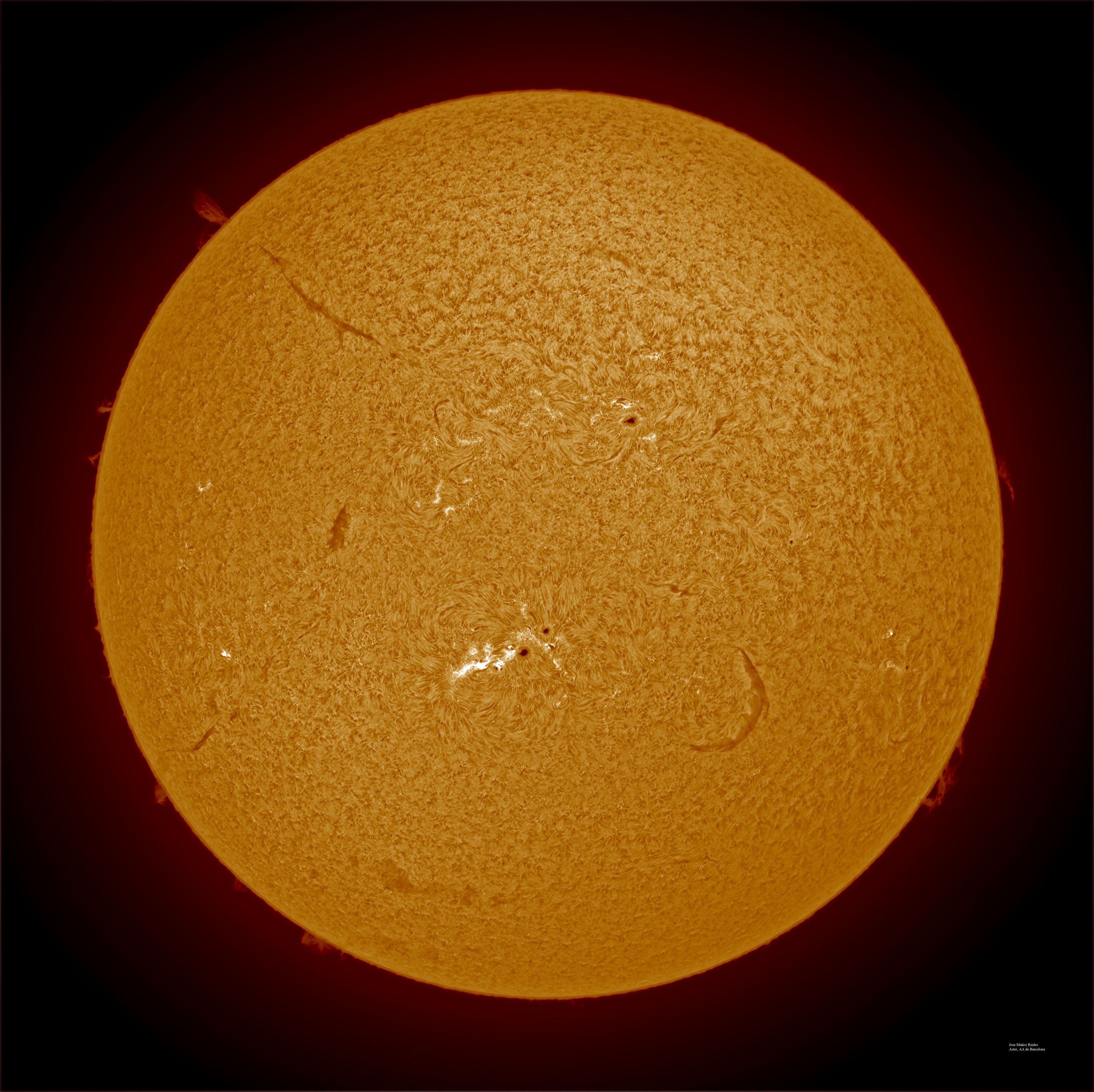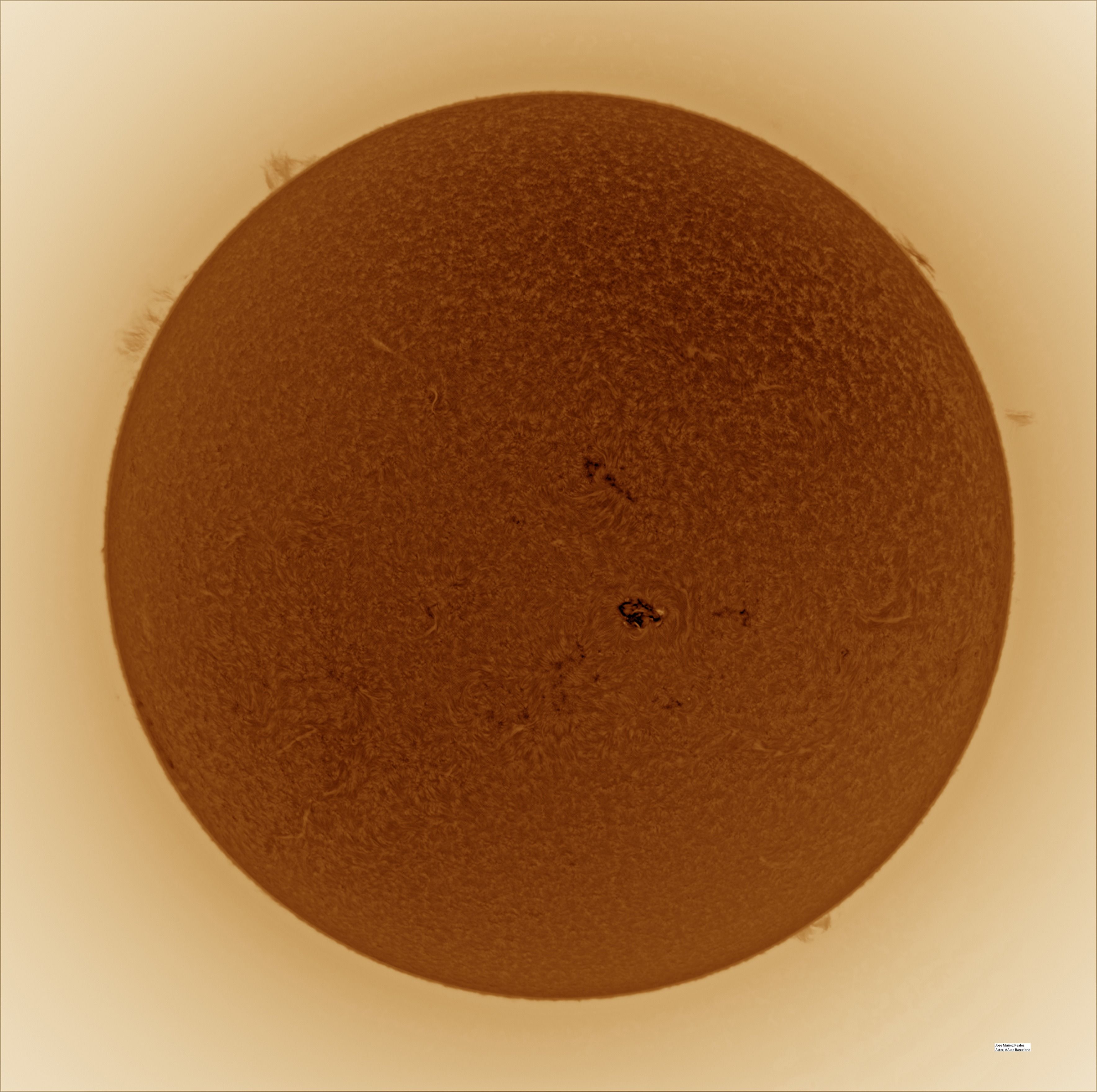 | Autor: Albert Sánchez Instrumento: - Ha: ED120 f-38 + ASI183MM + Quark H alpha - Ca: Baader K-Line - Visible: Filtro Calcio y Baader Astrosolar |