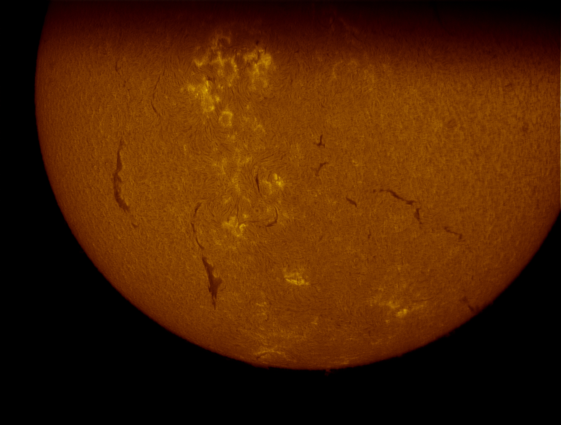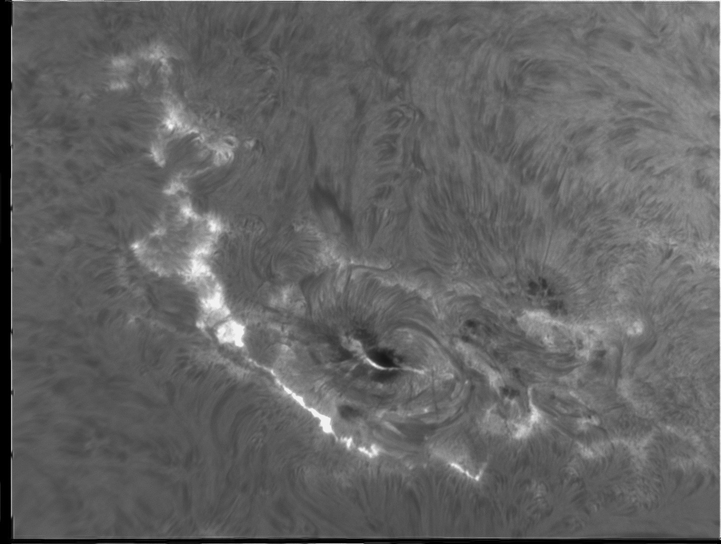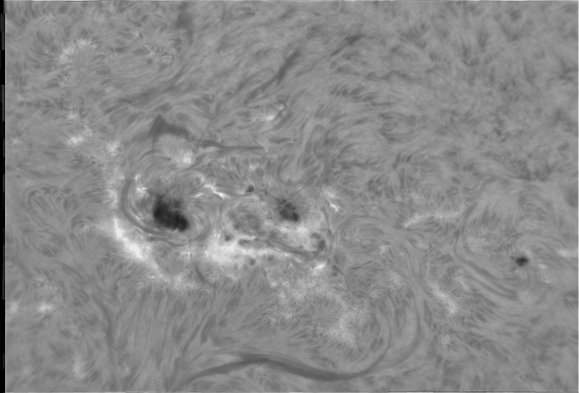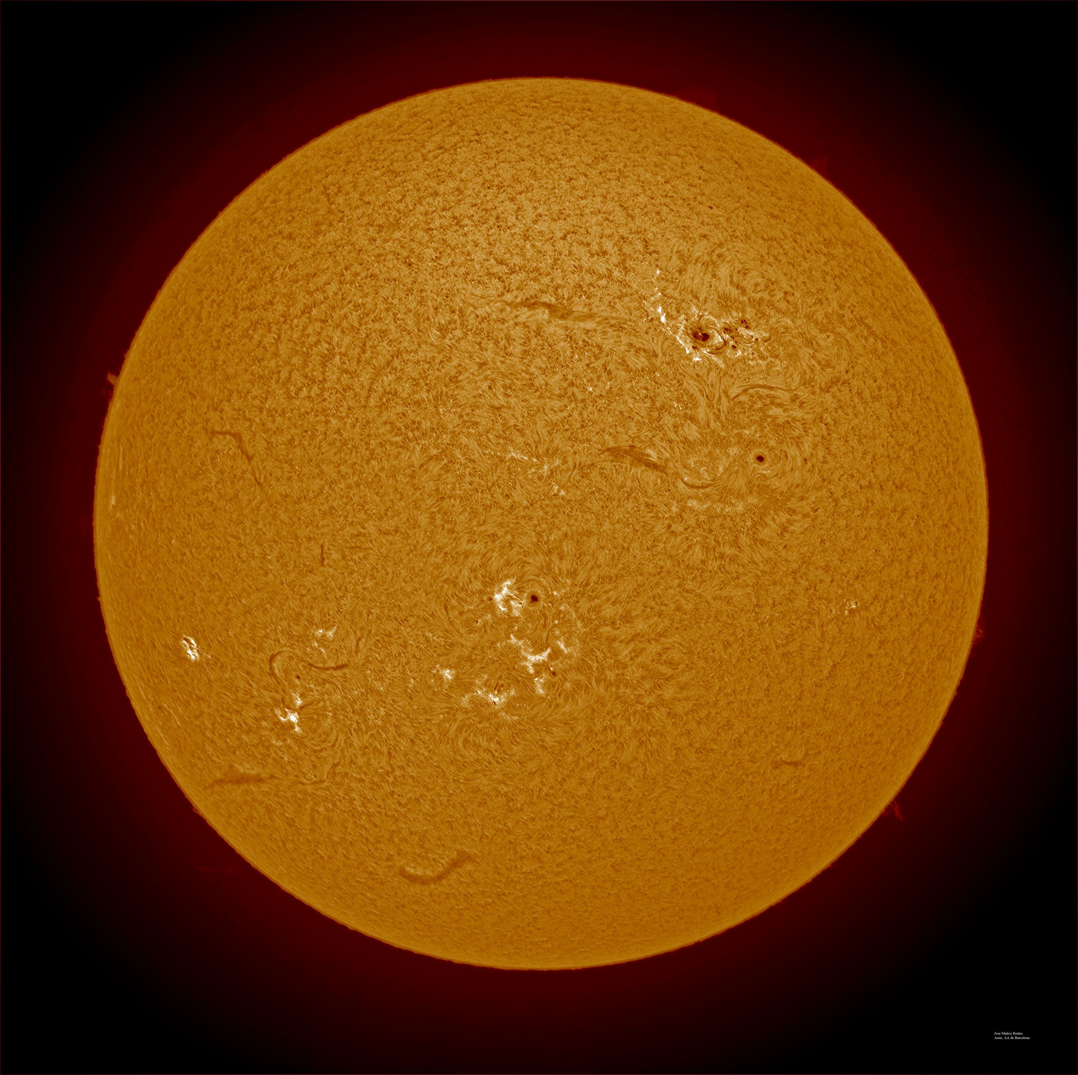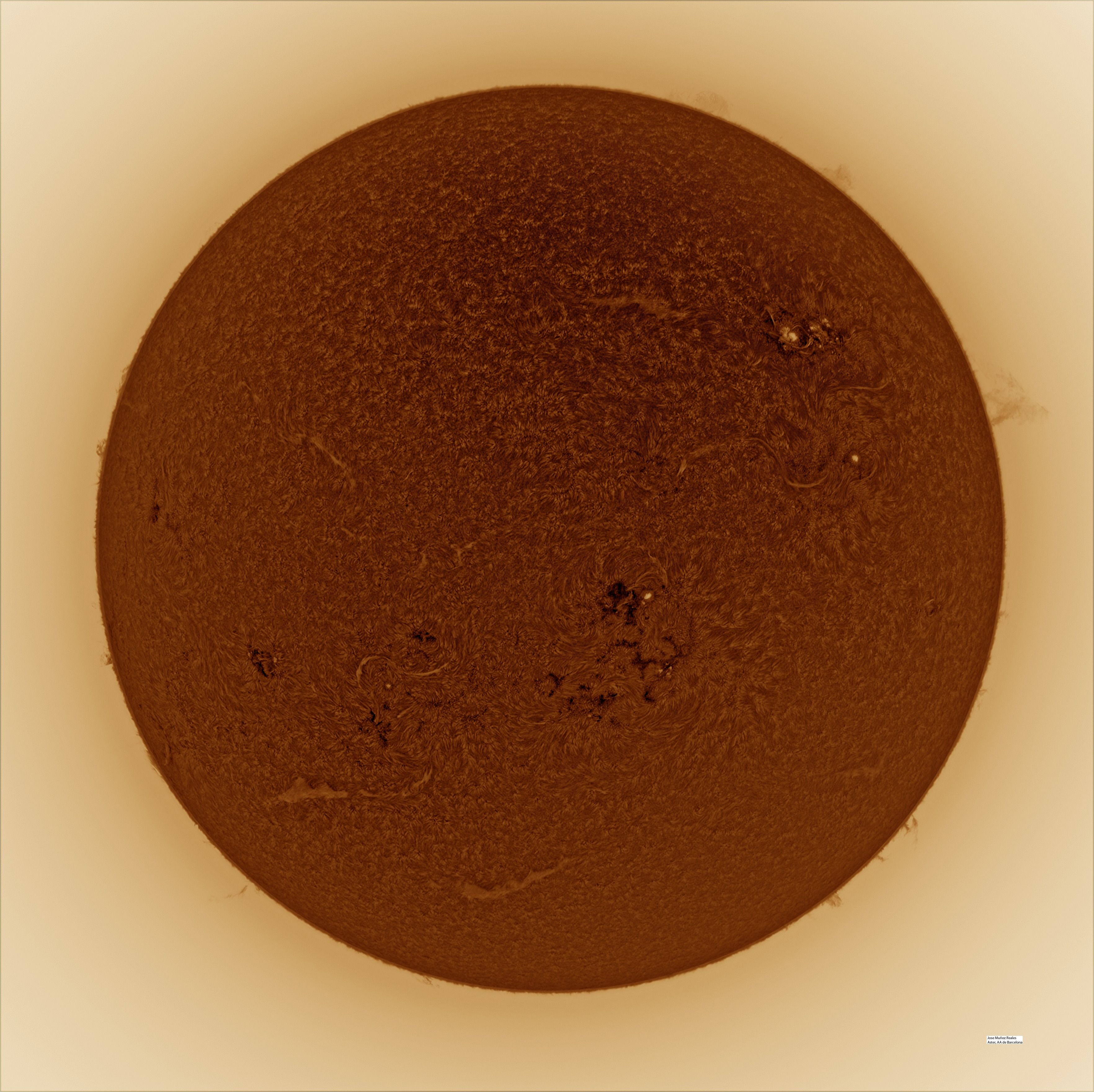| Autor: Albert Sánchez Instrumento: - Ha: ED120 f-38 + ASI183MM + Quark H alpha - Ca: Baader K-Line - Visible: Filtro Calcio y Baader Astrosolar |