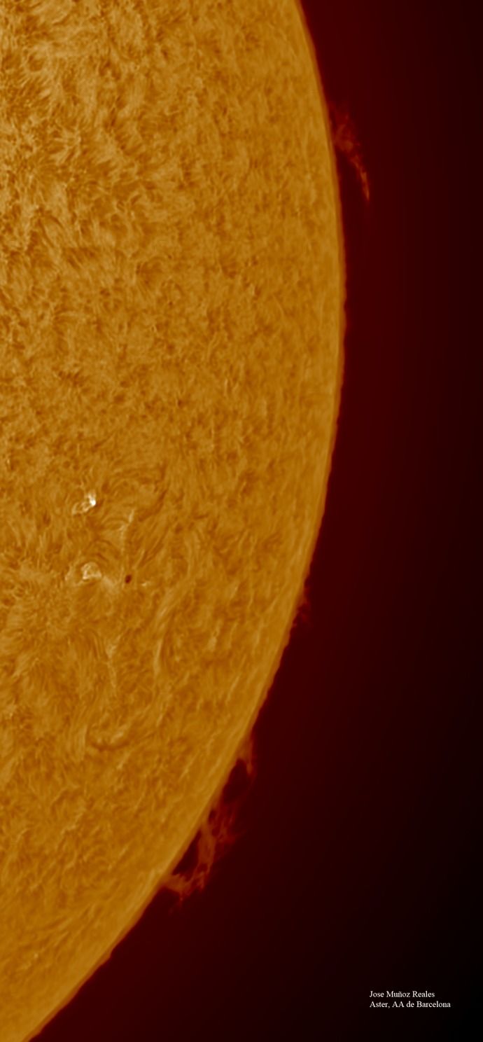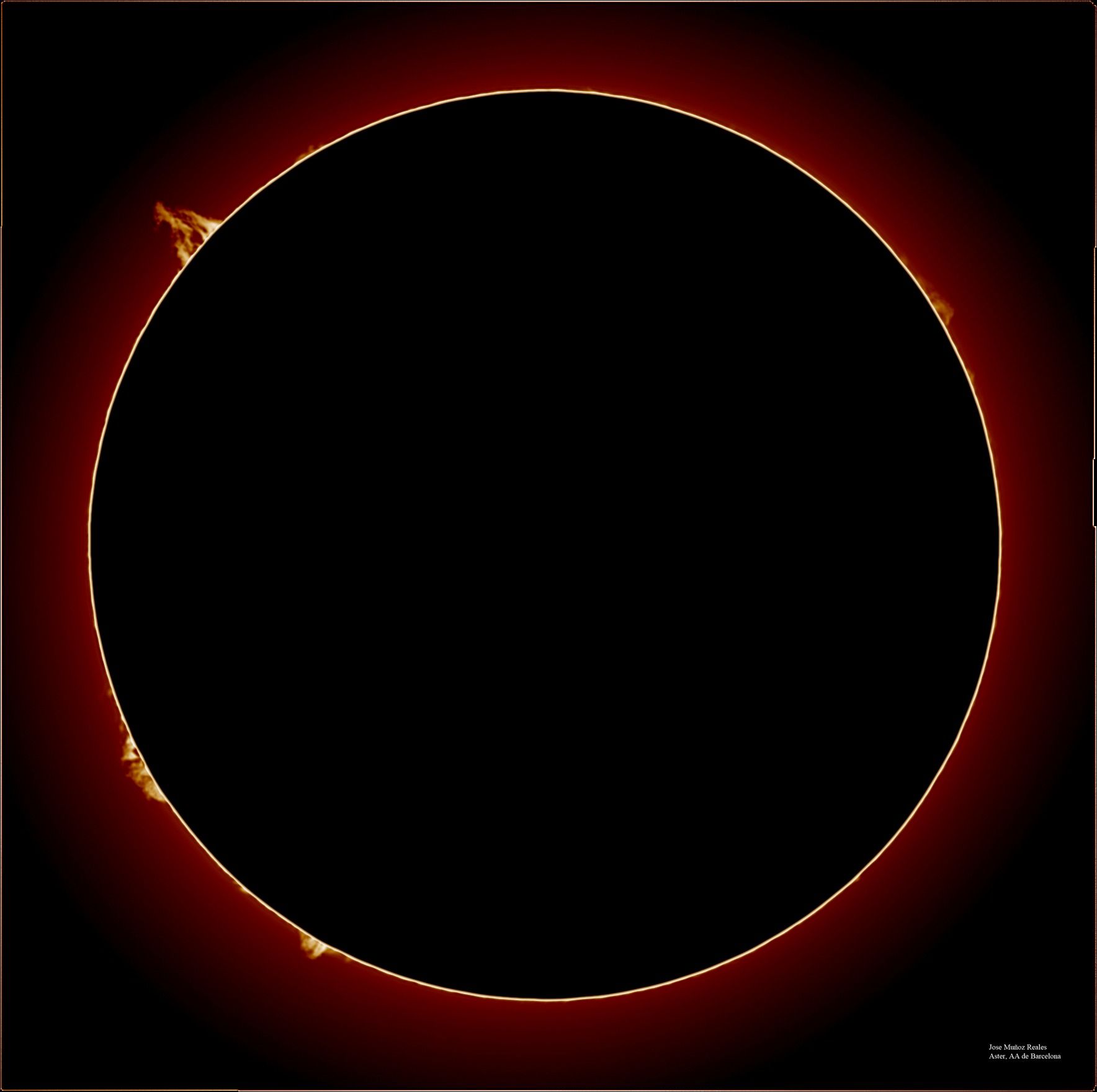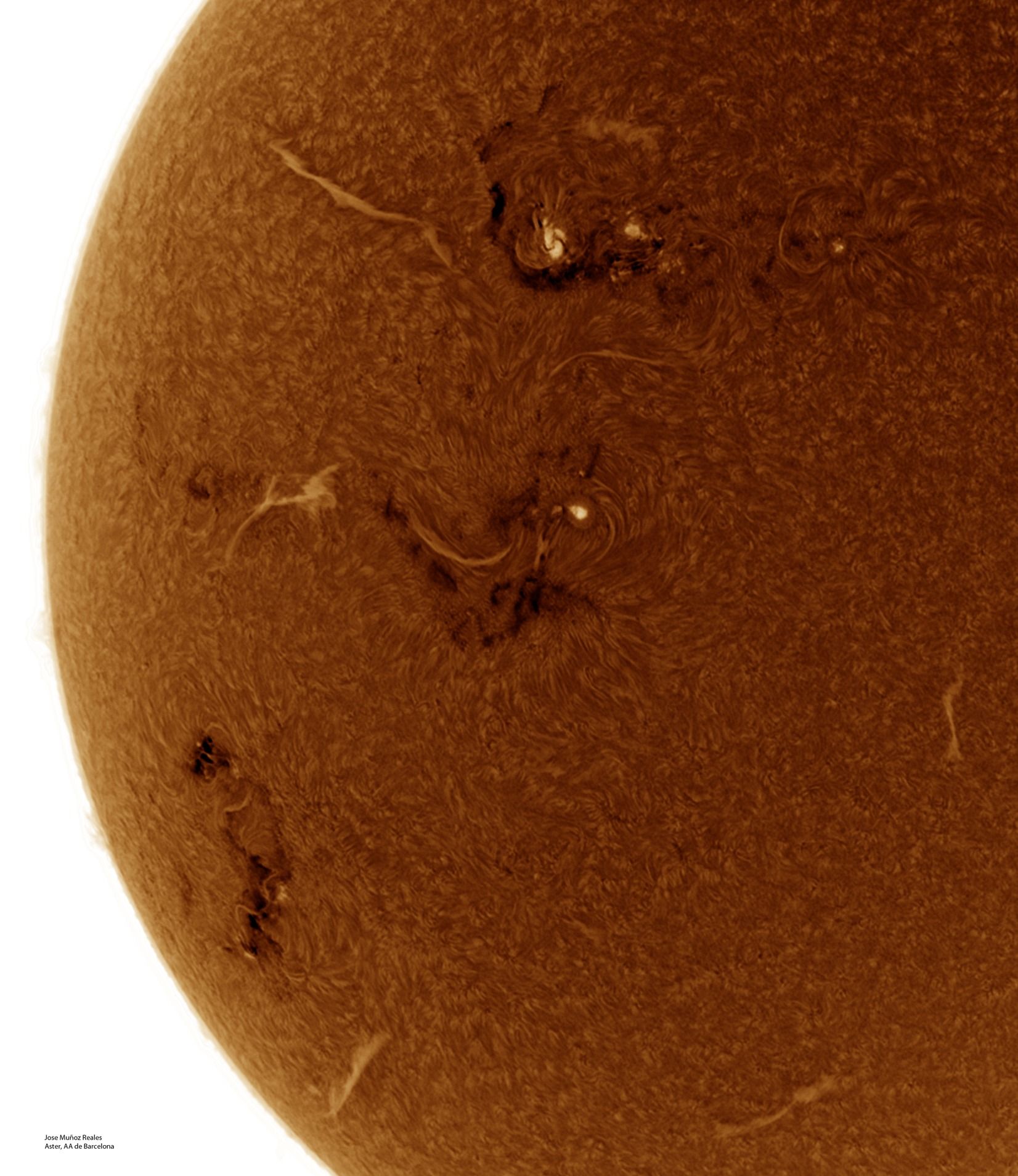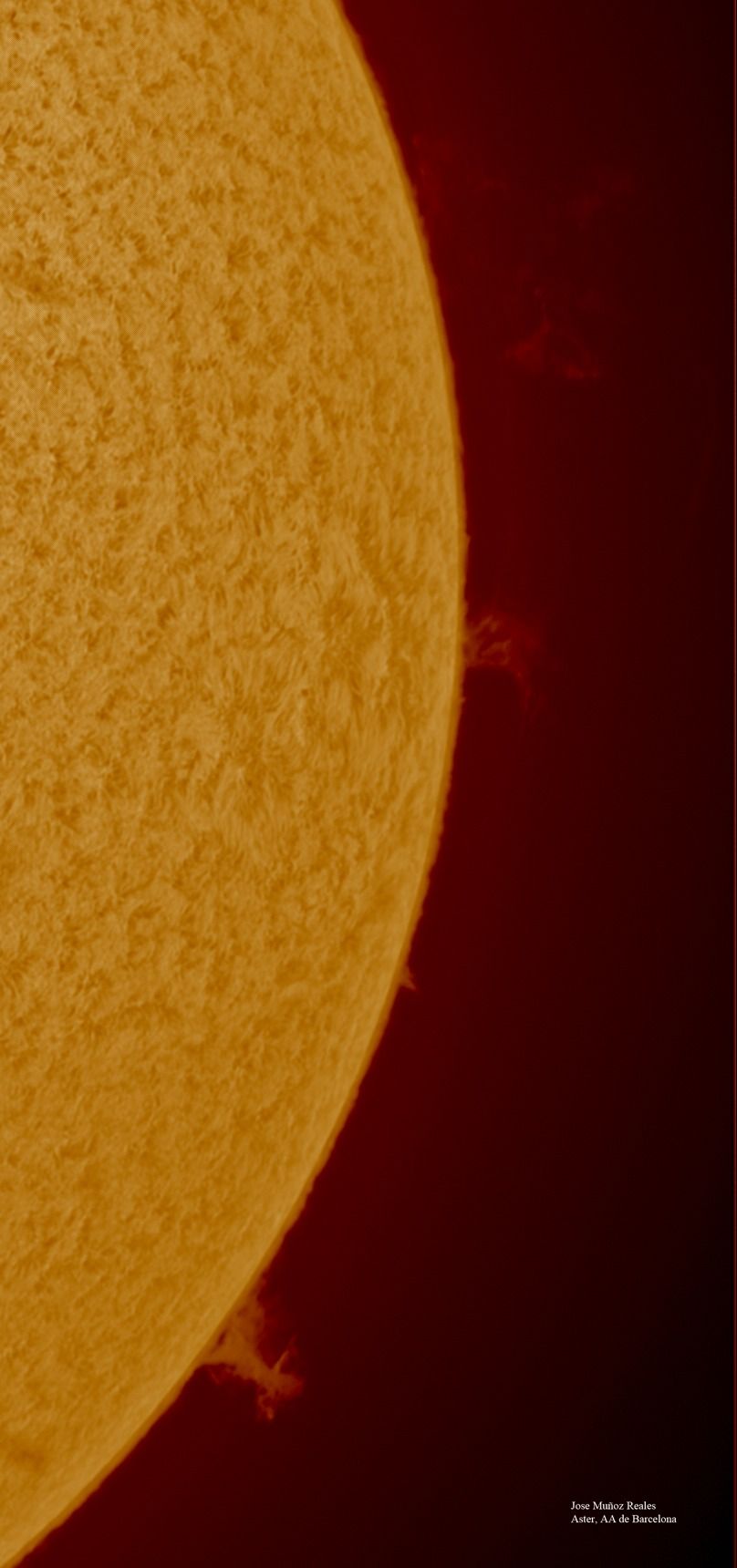 | Autor: José Domingo Pineda Instrumentos: Maksutov-180 DF-2700, Lunt-60MT <7 nm Cámaras: RisingCam ATR3 cooling -40, ZWO-ASI 183-MM |