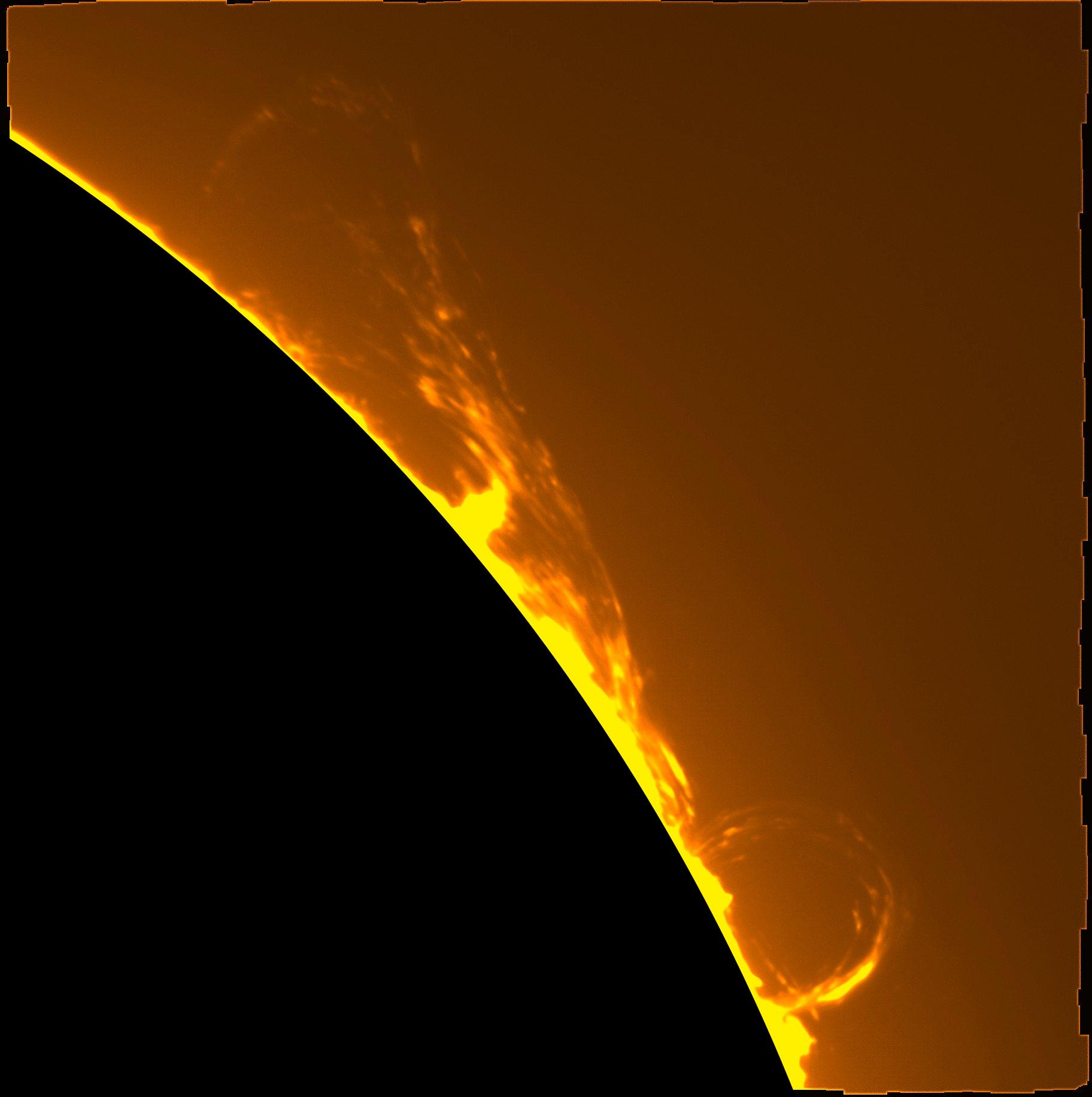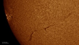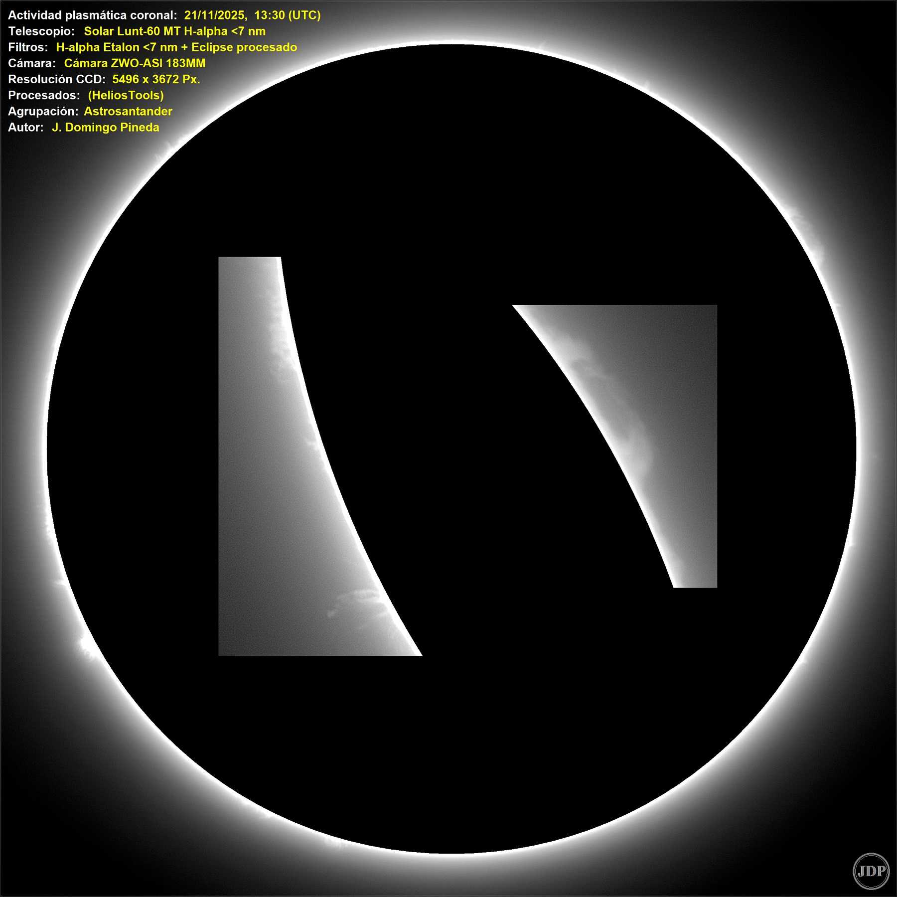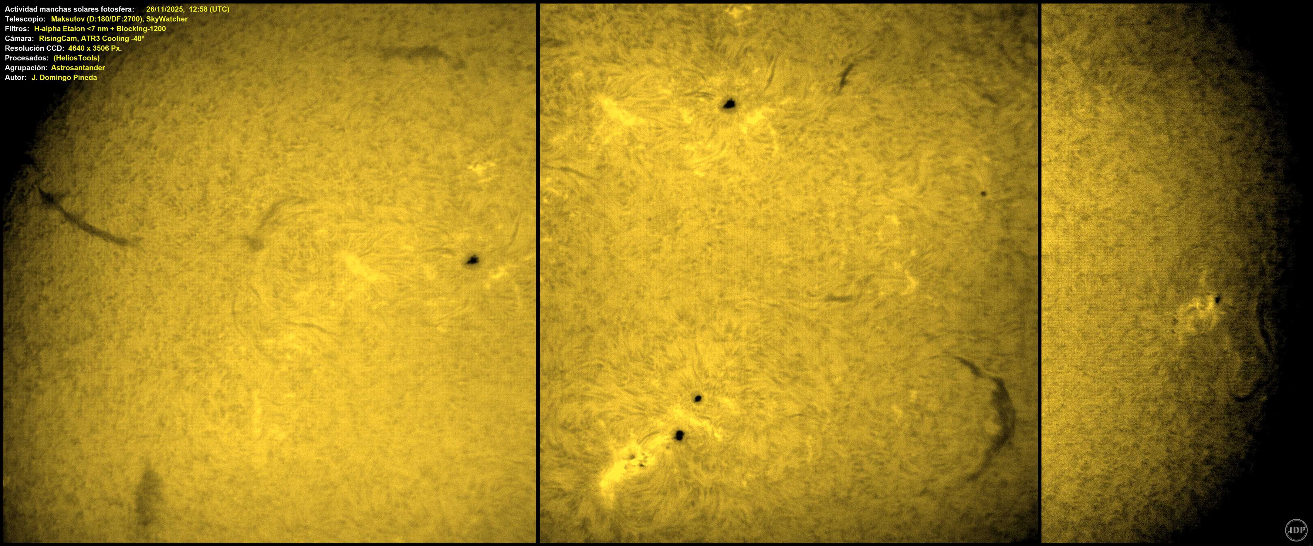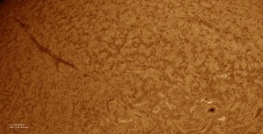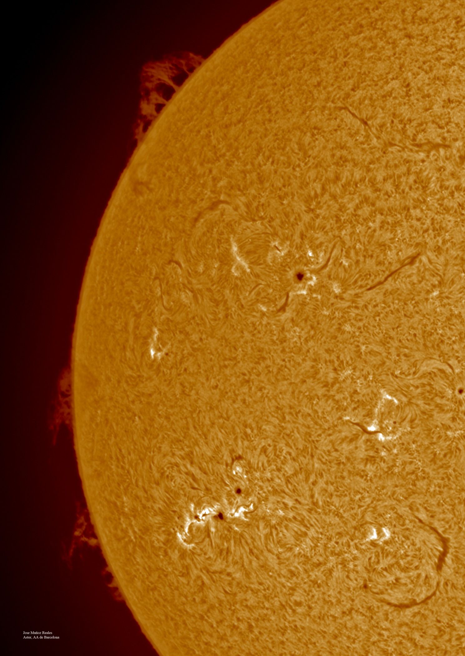| Autor: José Domingo Pineda Instrumentos: Maksutov-180 DF-2700, Lunt-60MT <7 nm Cámaras: RisingCam ATR3 cooling -40, ZWO-ASI 183-MM |