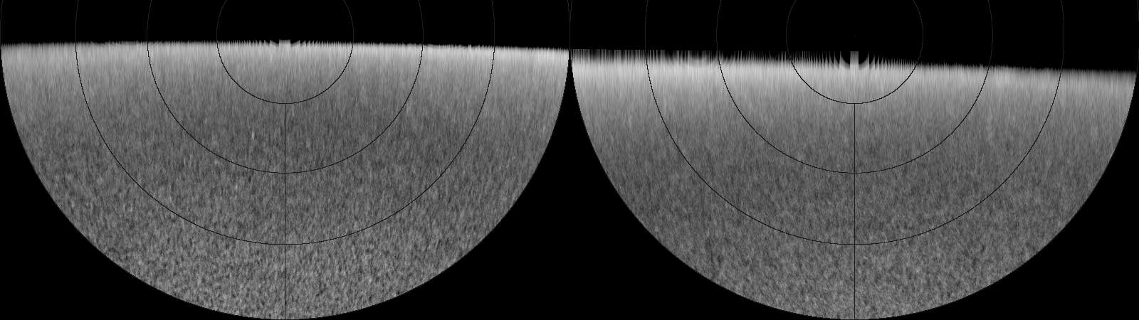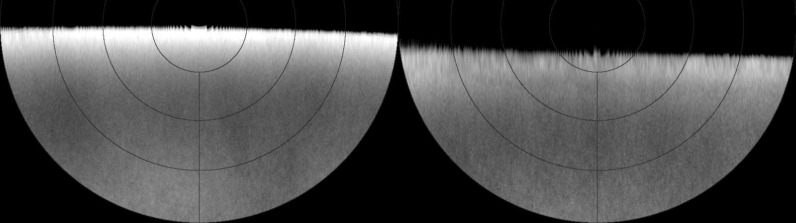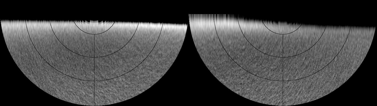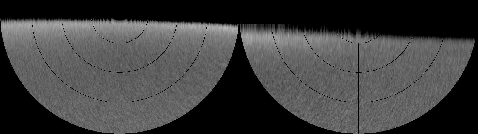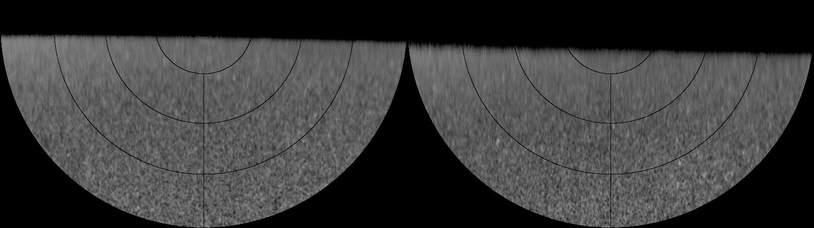 ![]() Proyección polar entre 50º y 90º Izquierda: polo norte Derecha: polo sur |