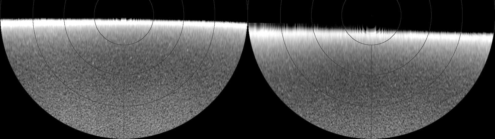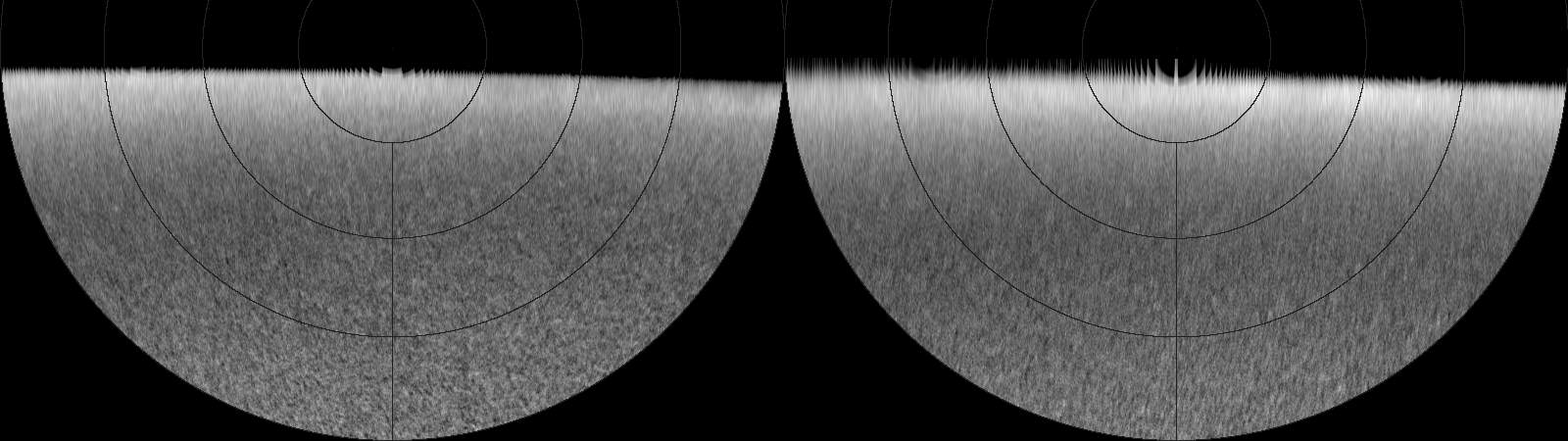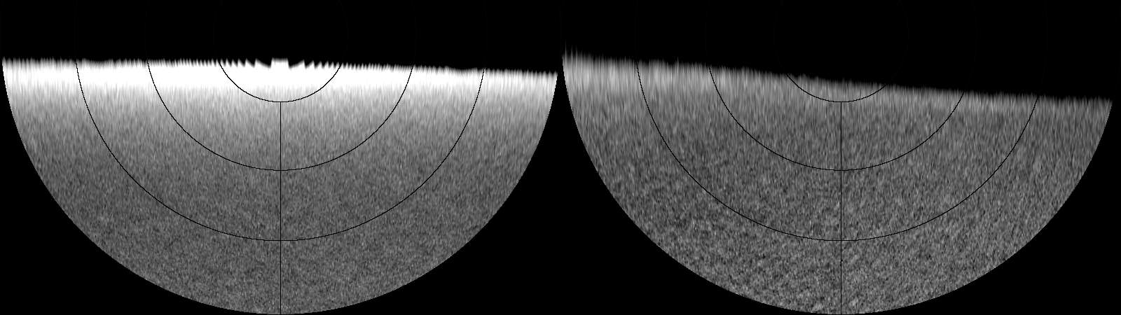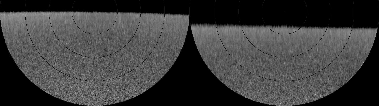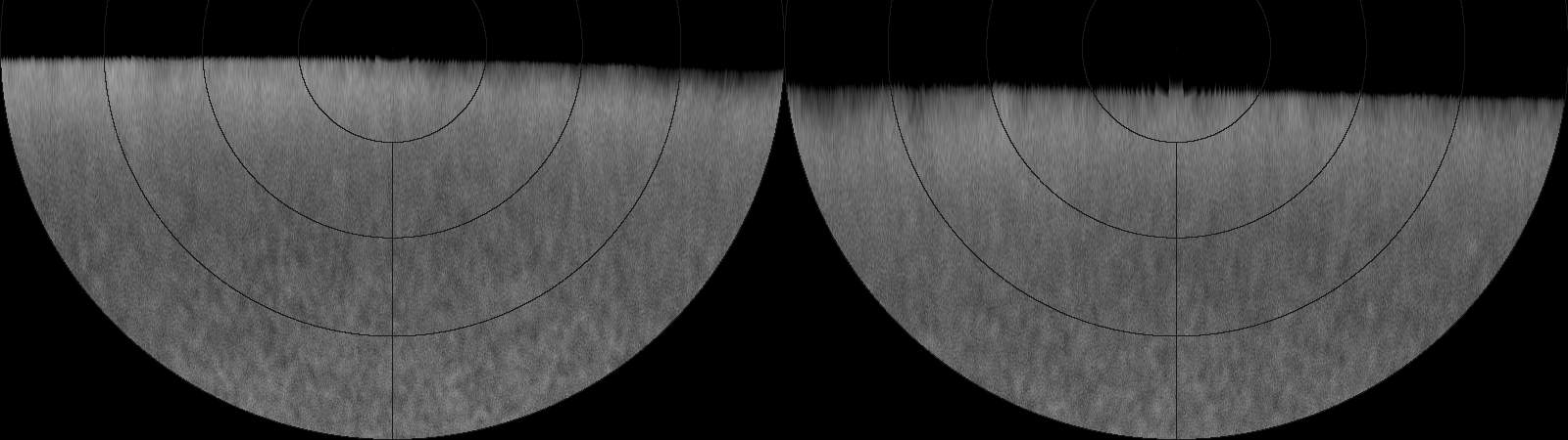 ![]() Proyección polar entre 50º y 90º Izquierda: polo norte Derecha: polo sur |