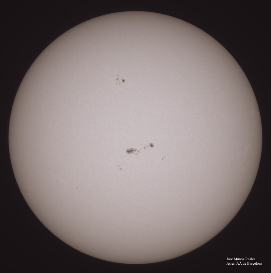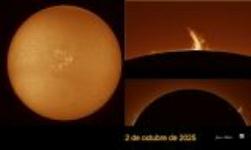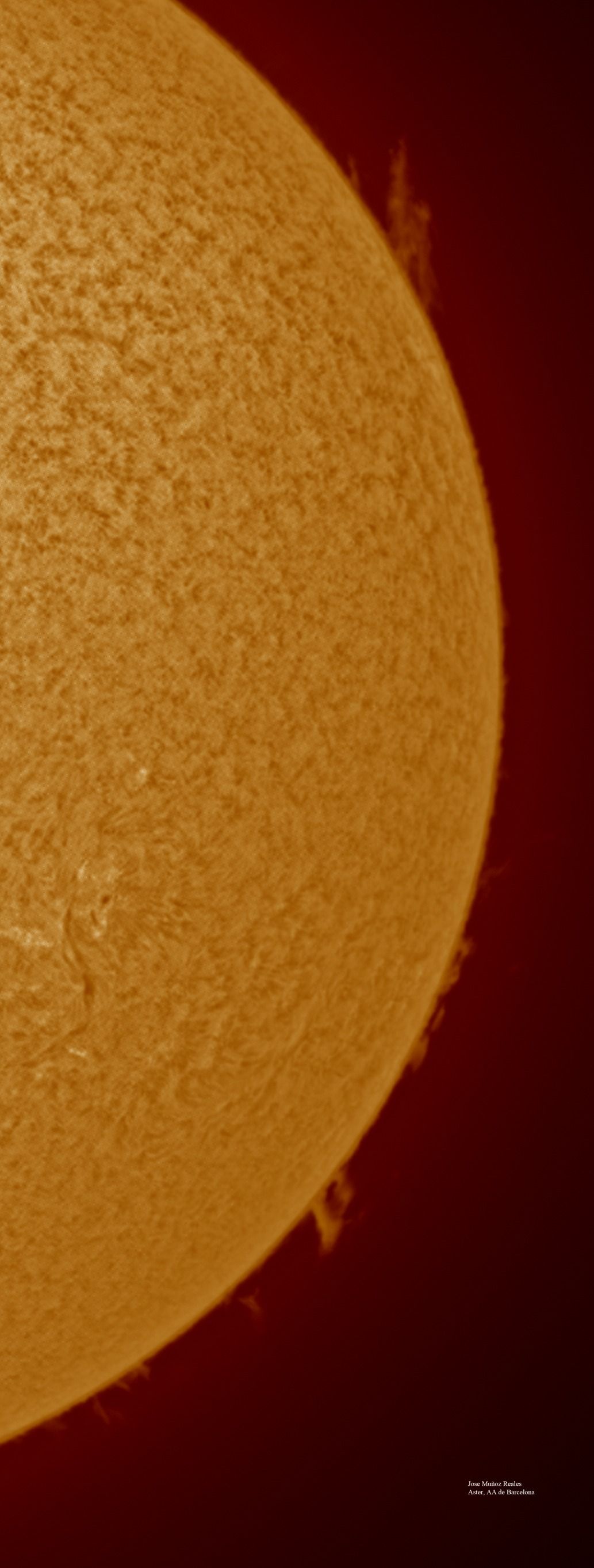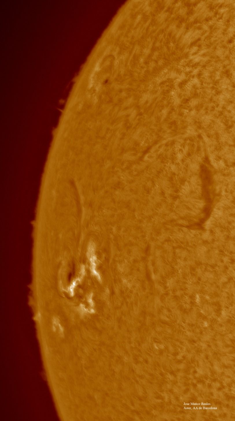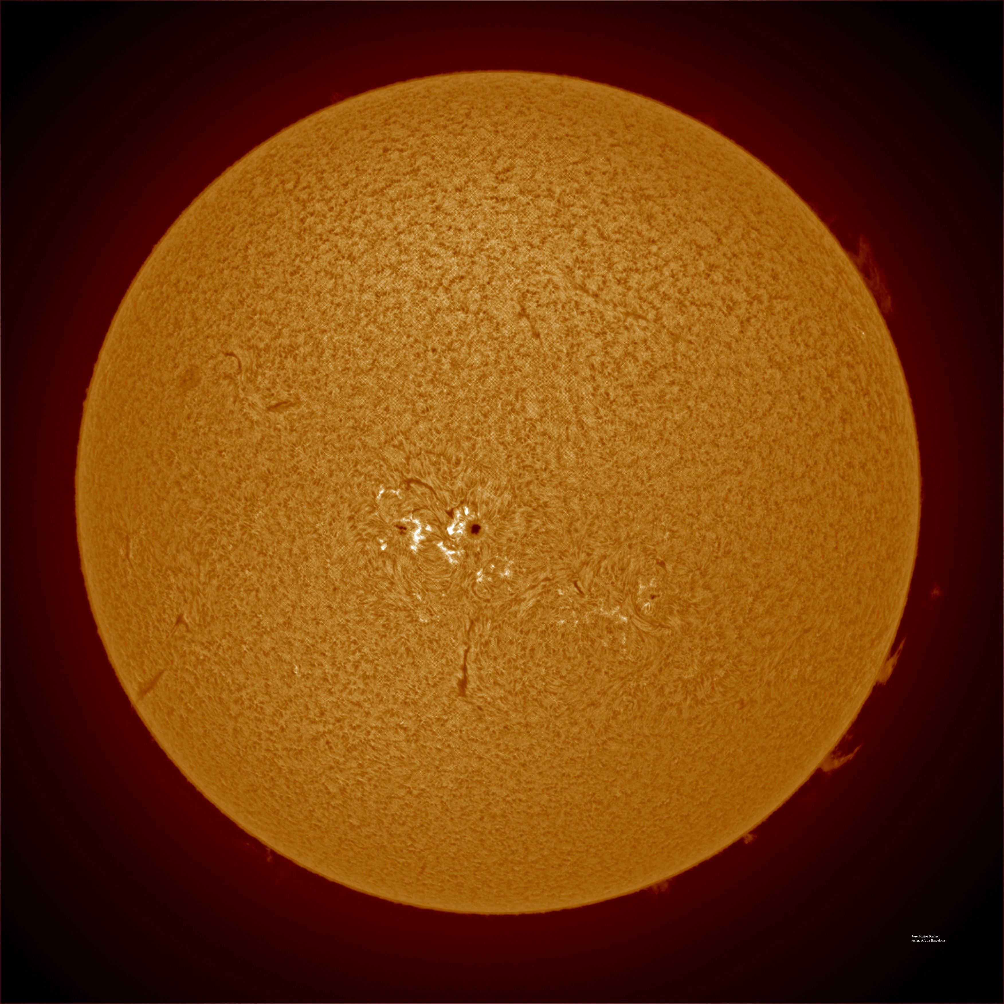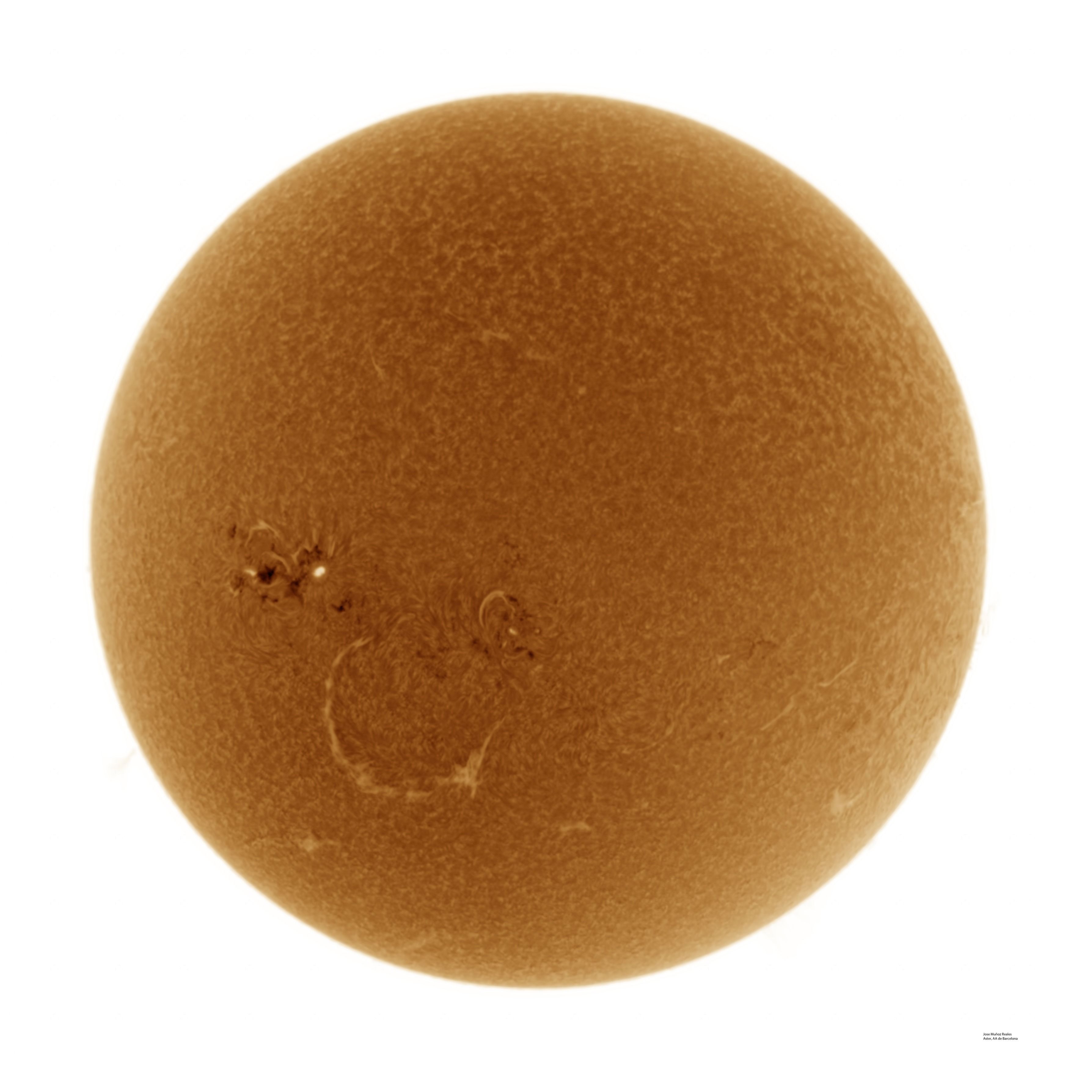 | Autor: Albert Sánchez Instrumento: - Ha: ED120 f-38 + ASI183MM + Quark H alpha - Ca: Baader K-Line - Visible: Filtro Calcio y Baader Astrosolar |