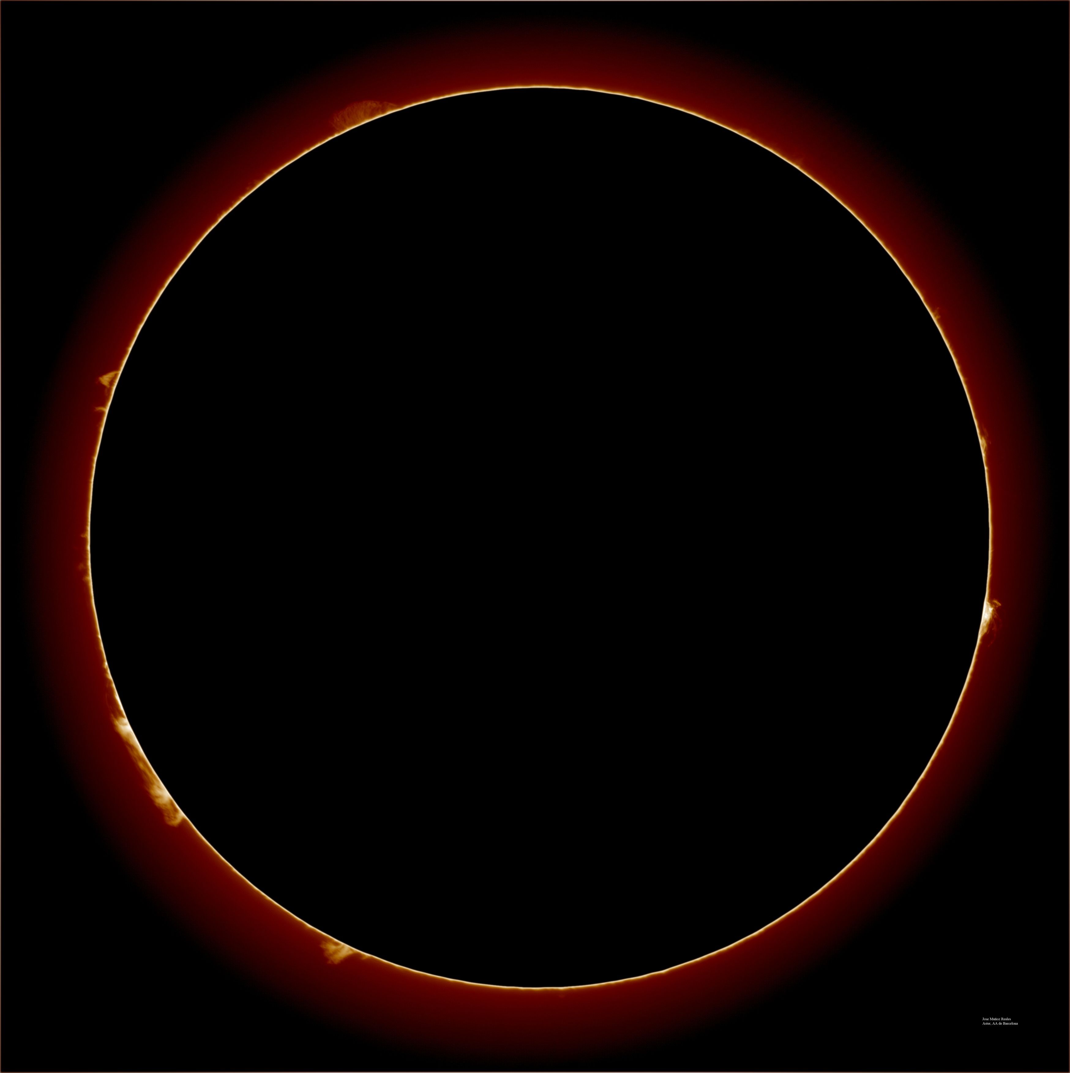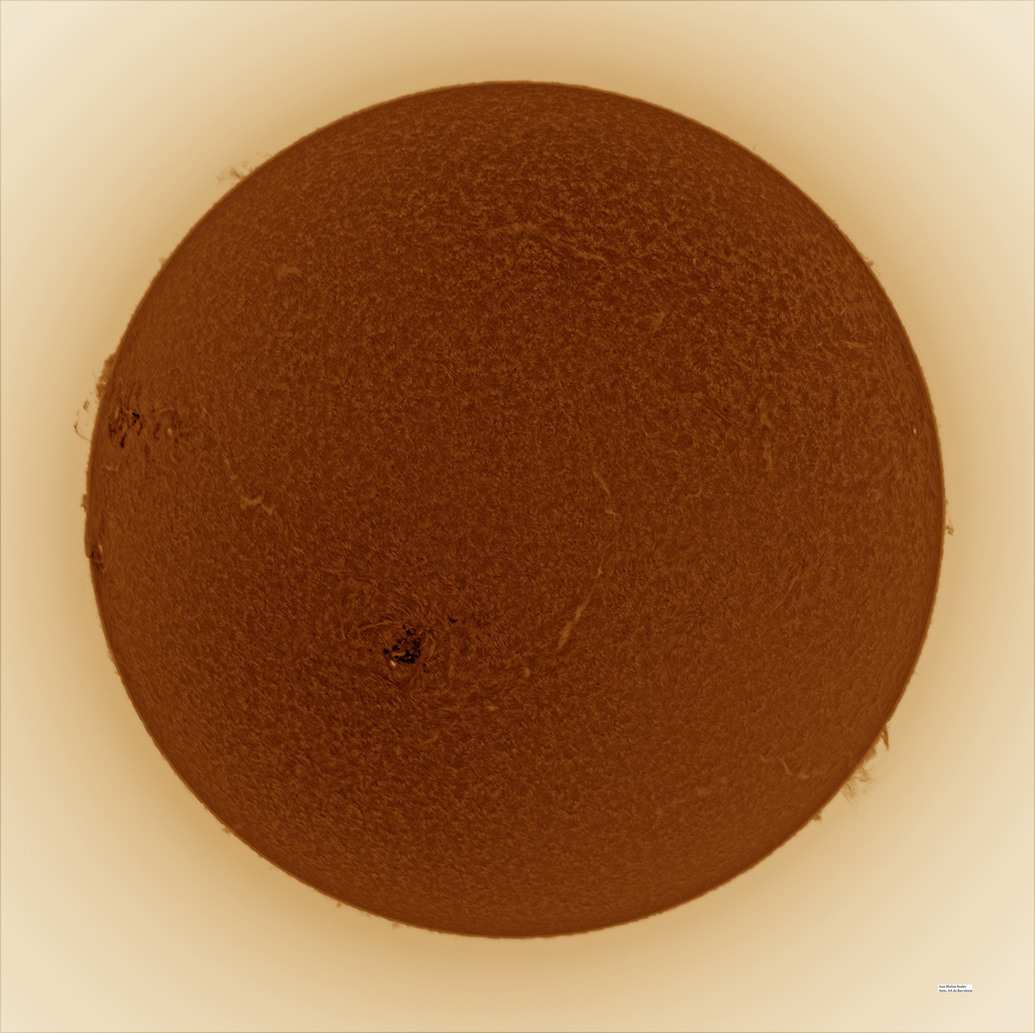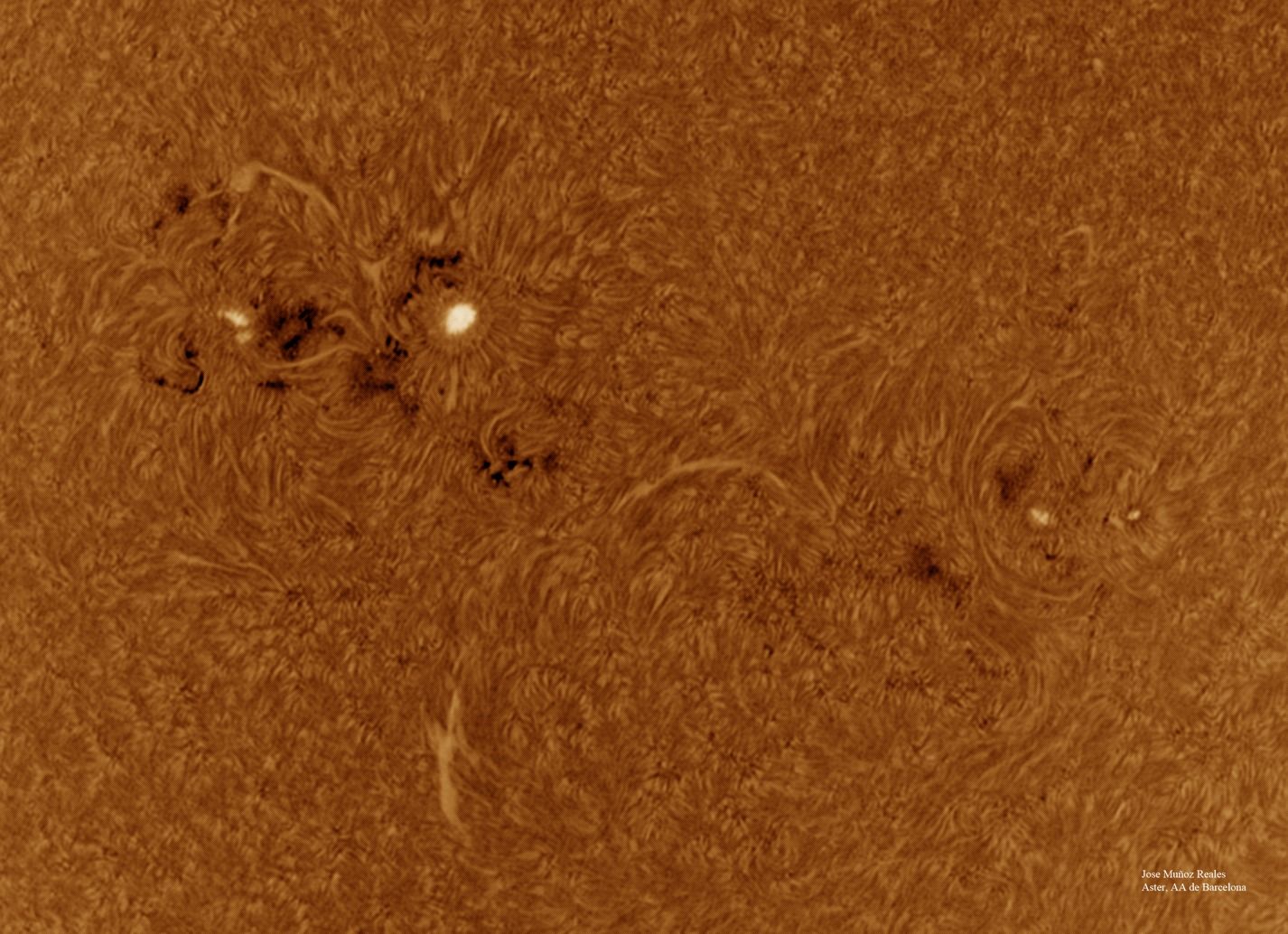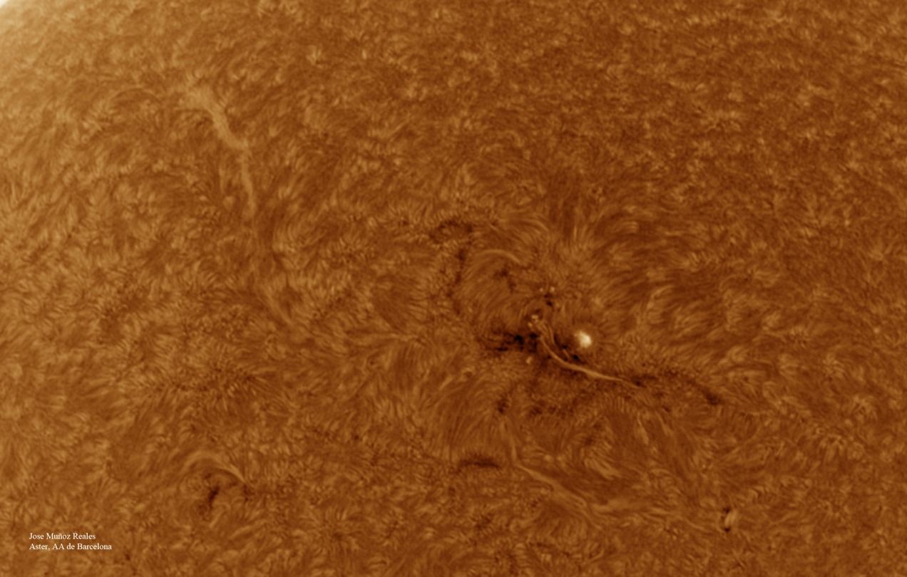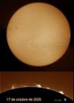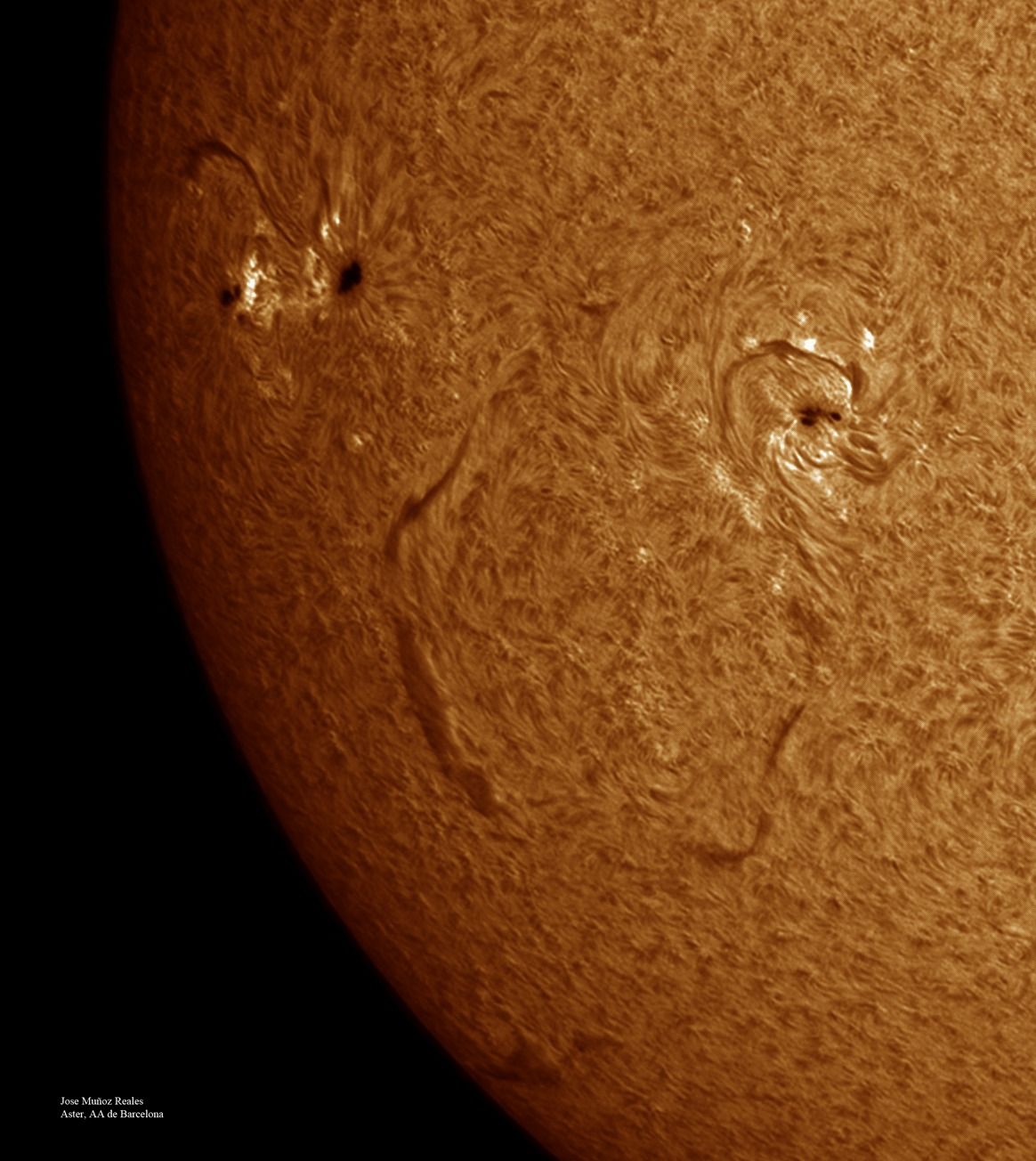 | Autor: Albert Sánchez Instrumento: - Ha: ED120 f-38 + ASI183MM + Quark H alpha - Ca: Baader K-Line - Visible: Filtro Calcio y Baader Astrosolar |