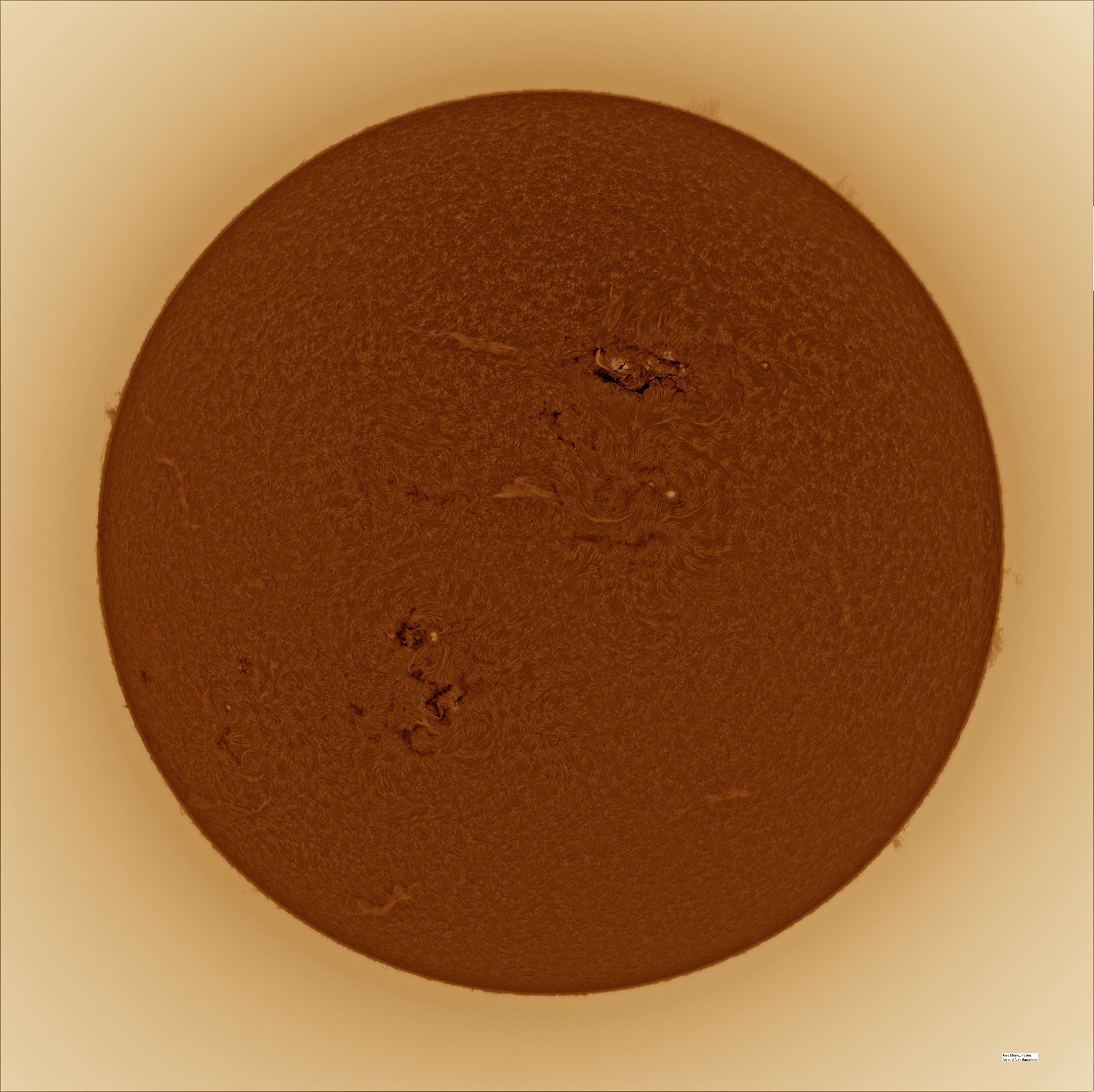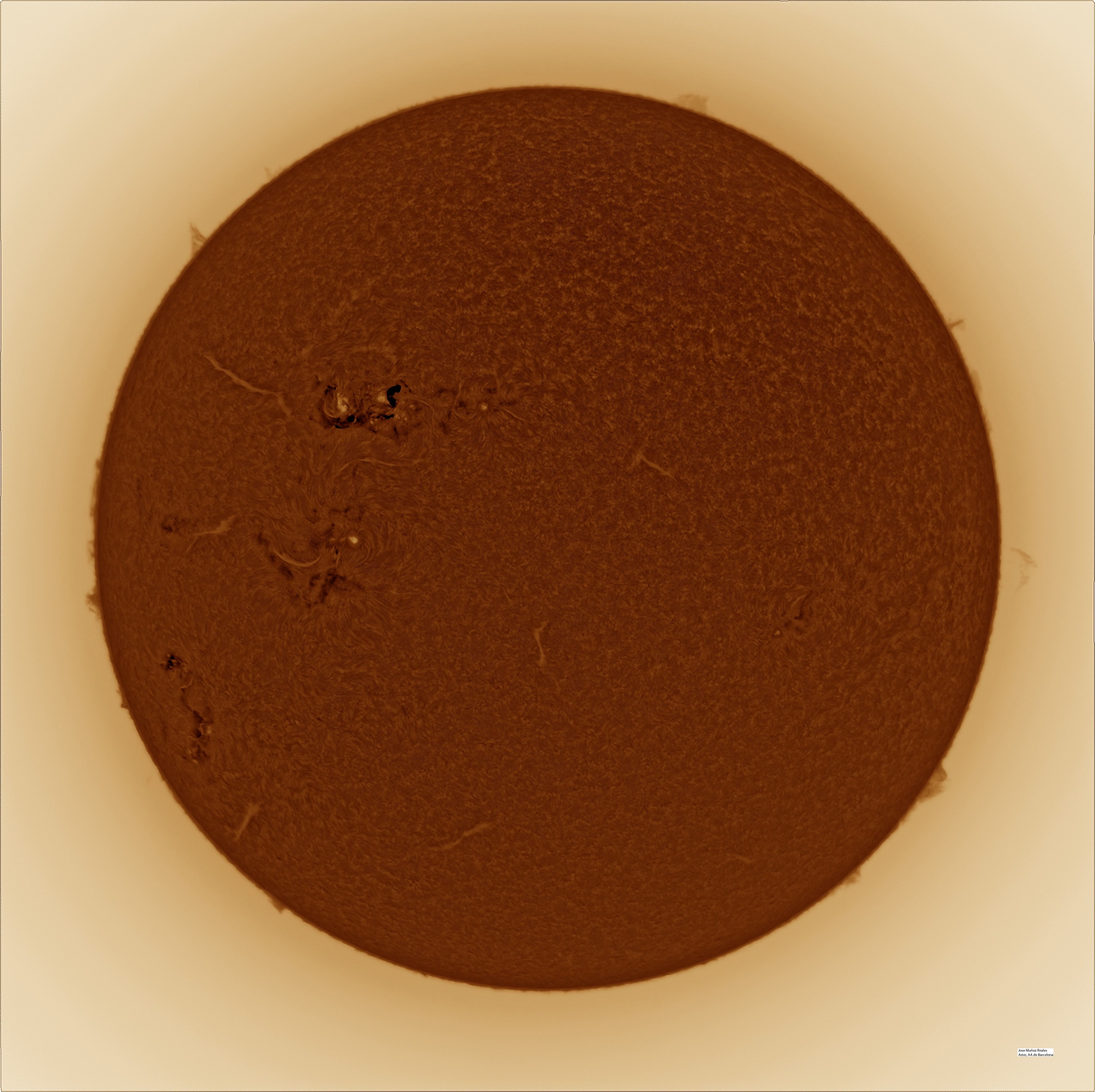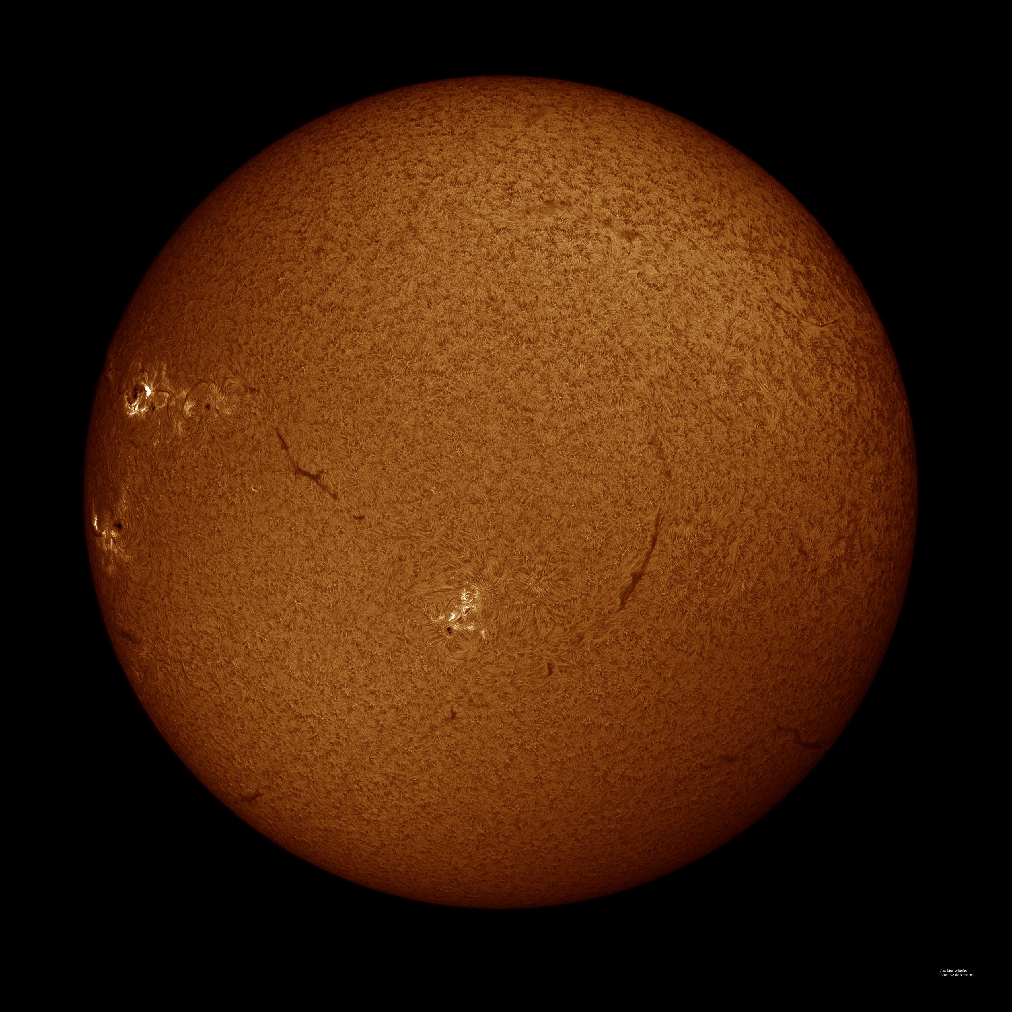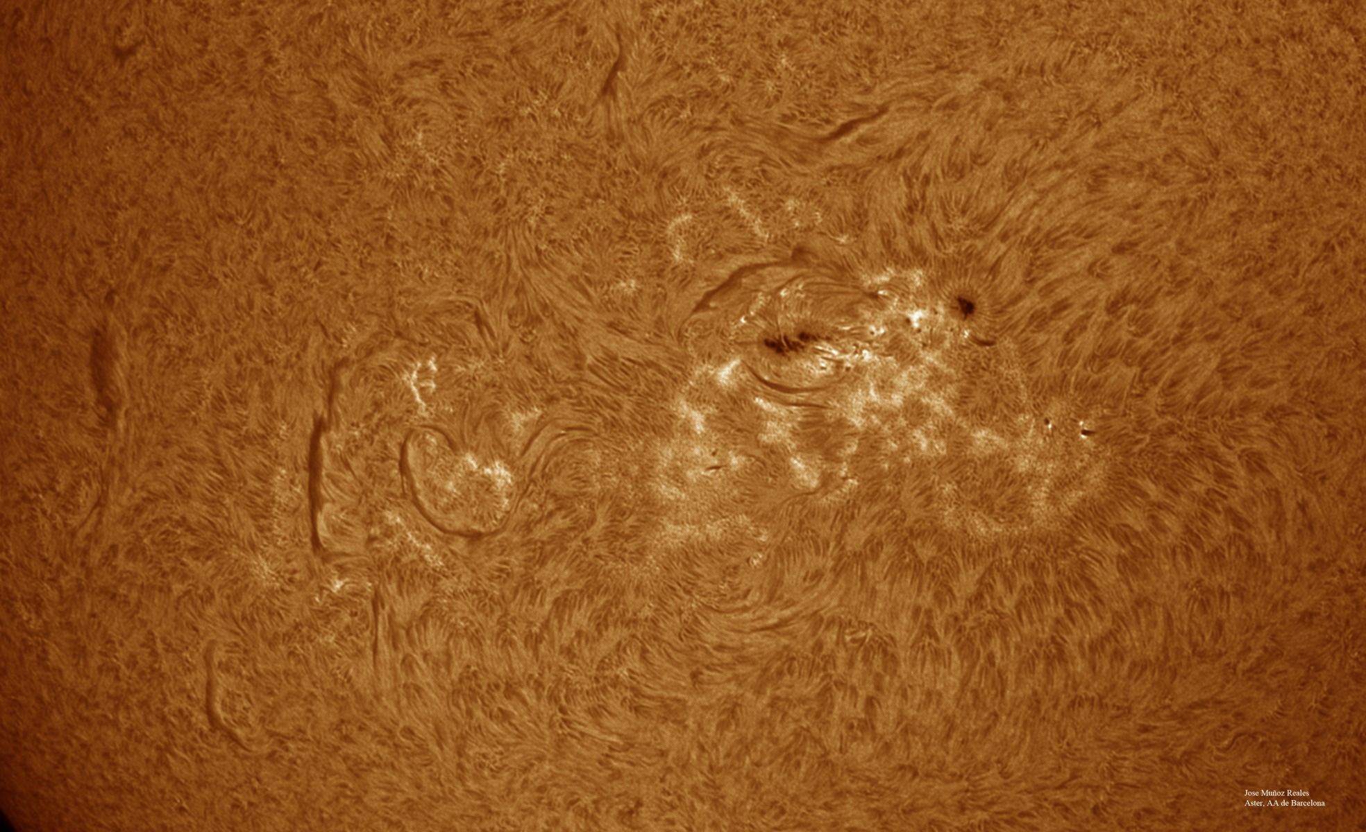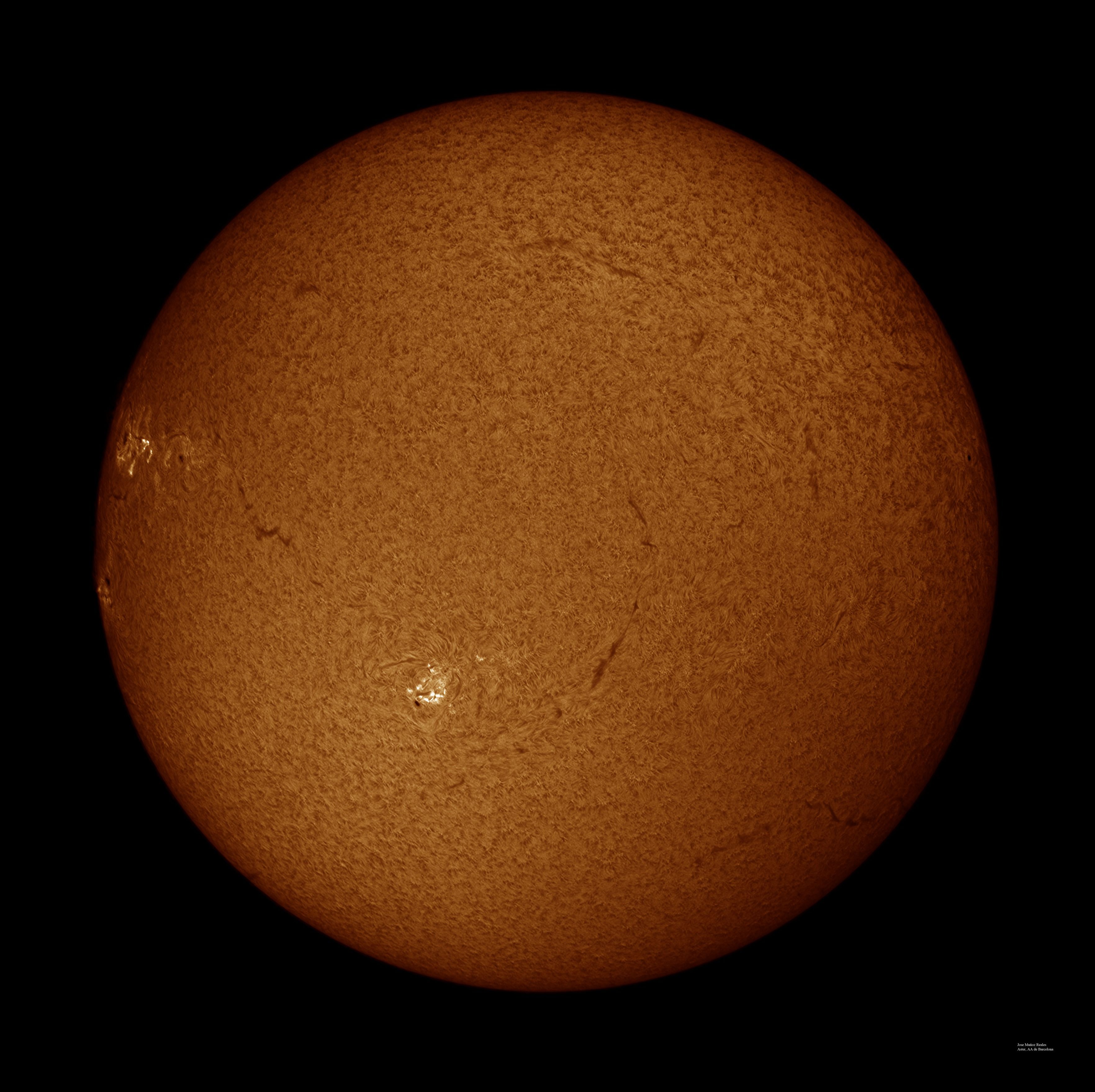 | Autor: Albert Sánchez Instrumento: - Ha: ED120 f-38 + ASI183MM + Quark H alpha - Ca: Baader K-Line - Visible: Filtro Calcio y Baader Astrosolar |