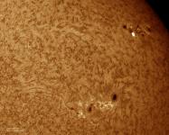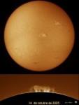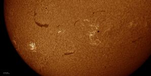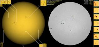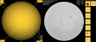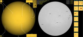 | Autor:  José Muñoz Reales Disco: - Coronado SM60 + R90/600 + BF30 + ASI1600 Regiones: - Lunt 100mm/0.7A + R102/1000 + BF12 + barlow 2.5x + ASI174 Luz blanca: - R140/800 + barlow 3x + solar continuum + prisma Herschel + ASI290 | |||