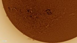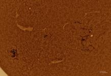 | Autor:  José Muñoz Reales Disco: - Coronado SM60 + R90/600 + BF30 + ASI1600 Regiones: - Lunt 100mm/0.7A + R102/1000 + BF12 + barlow 2.5x + ASI174 Luz blanca: - R140/800 + barlow 3x + solar continuum + prisma Herschel + ASI290 | ||||