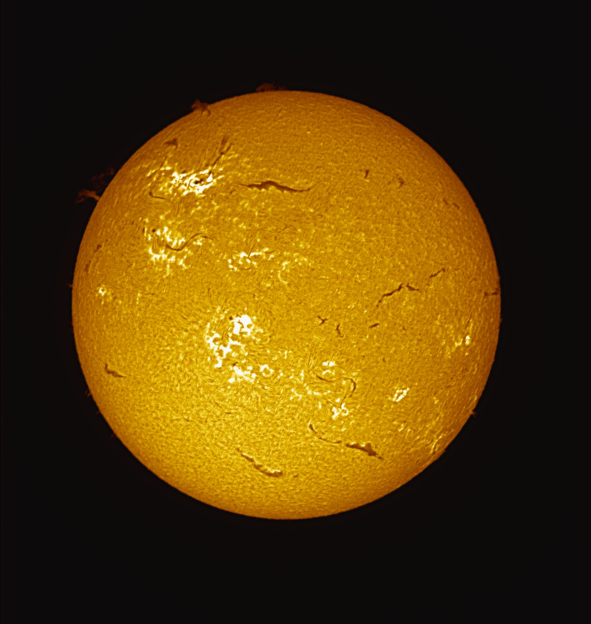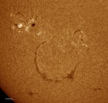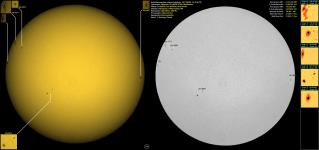 | Autor: José Muñoz Reales Disco: - Coronado SM60 + R90/600 + BF30 + ASI1600 Regiones: - Lunt 100mm/0.7A + R102/1000 + BF12 + barlow 2.5x + ASI174 Luz blanca: - R140/800 + barlow 3x + solar continuum + prisma Herschel + ASI290 |