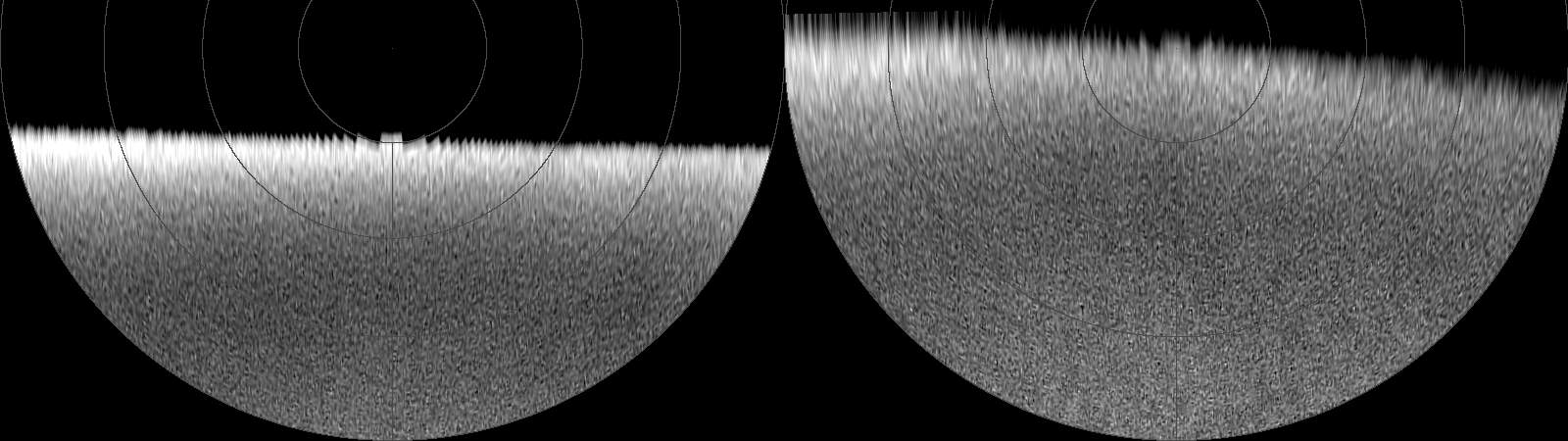 ![]() Proyección polar entre 50º y 90º Izquierda: polo norte Derecha: polo sur |