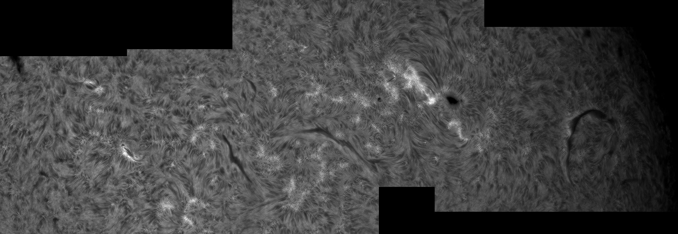 | Autor: Albert Sánchez Instrumento: - Ha: ED120 f-38 + ASI183MM + Quark H alpha - Ca: Baader K-Line - Visible: Filtro Calcio y Baader Astrosolar |
