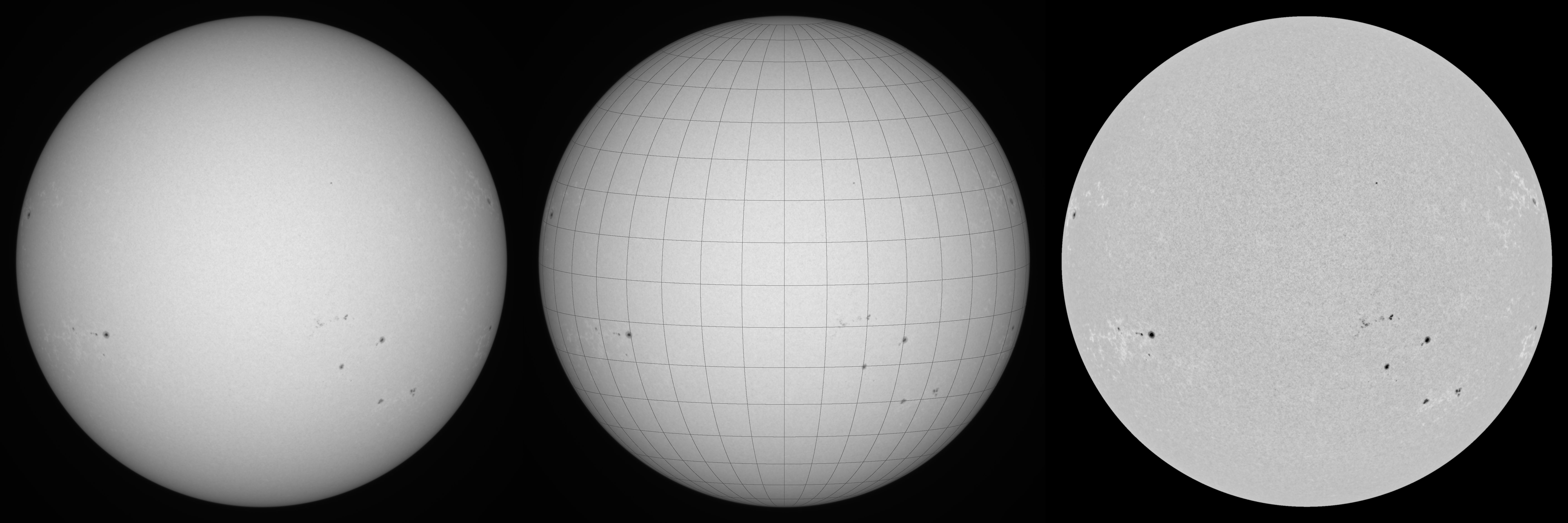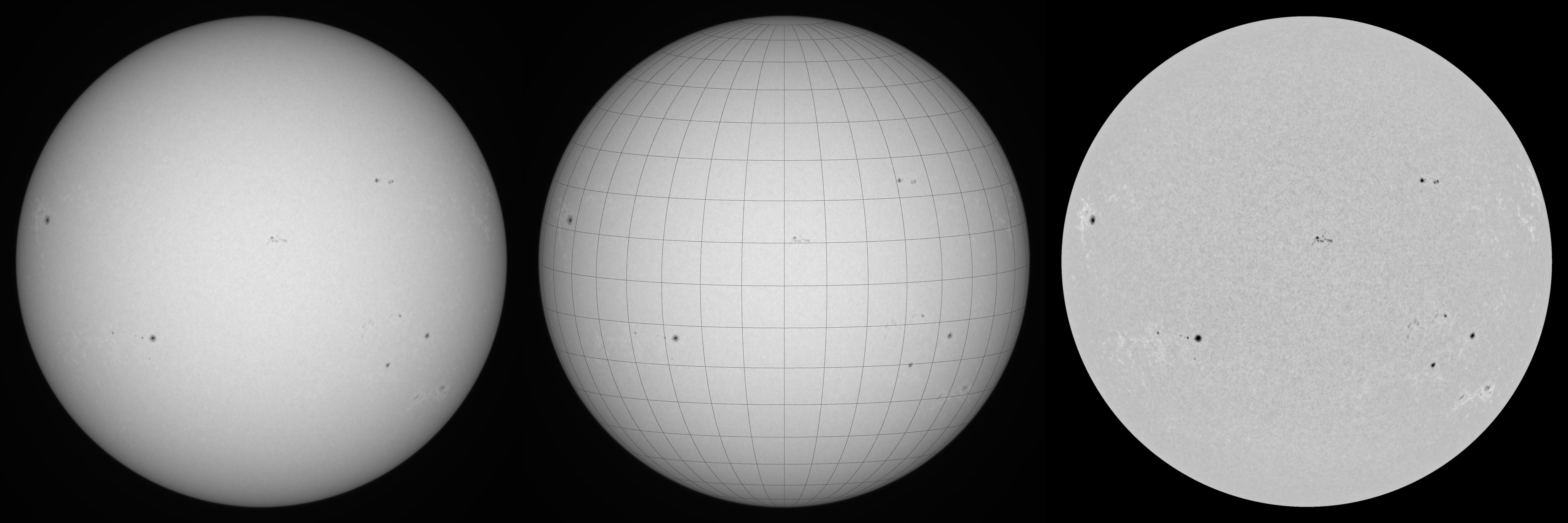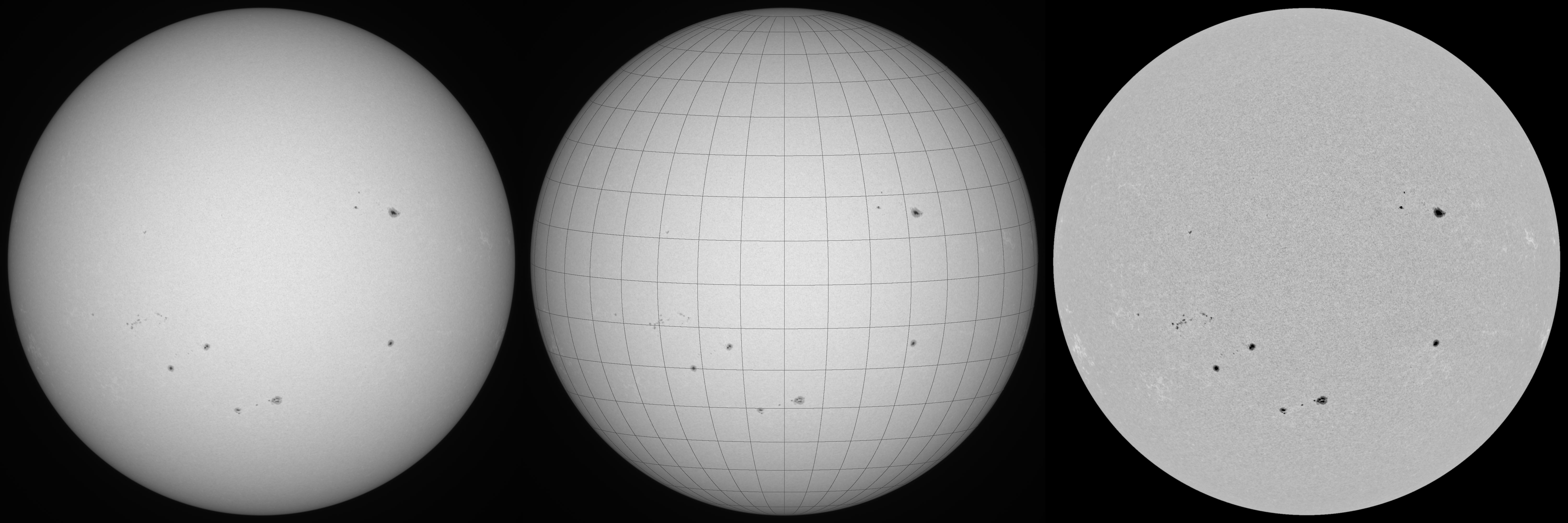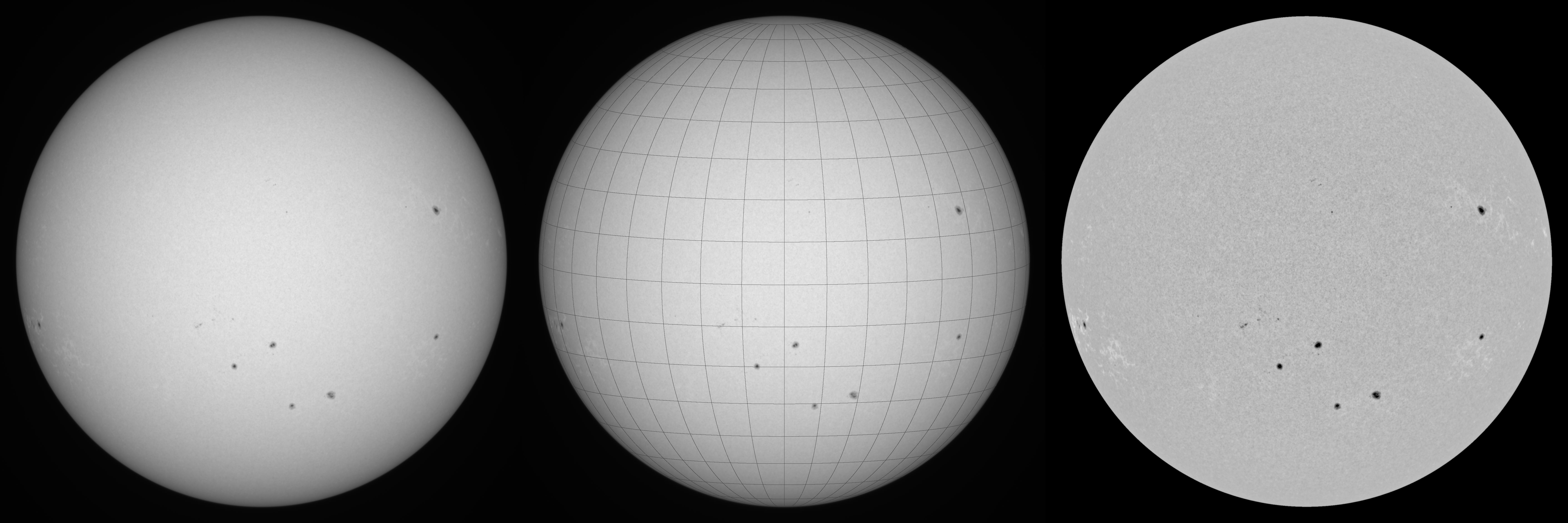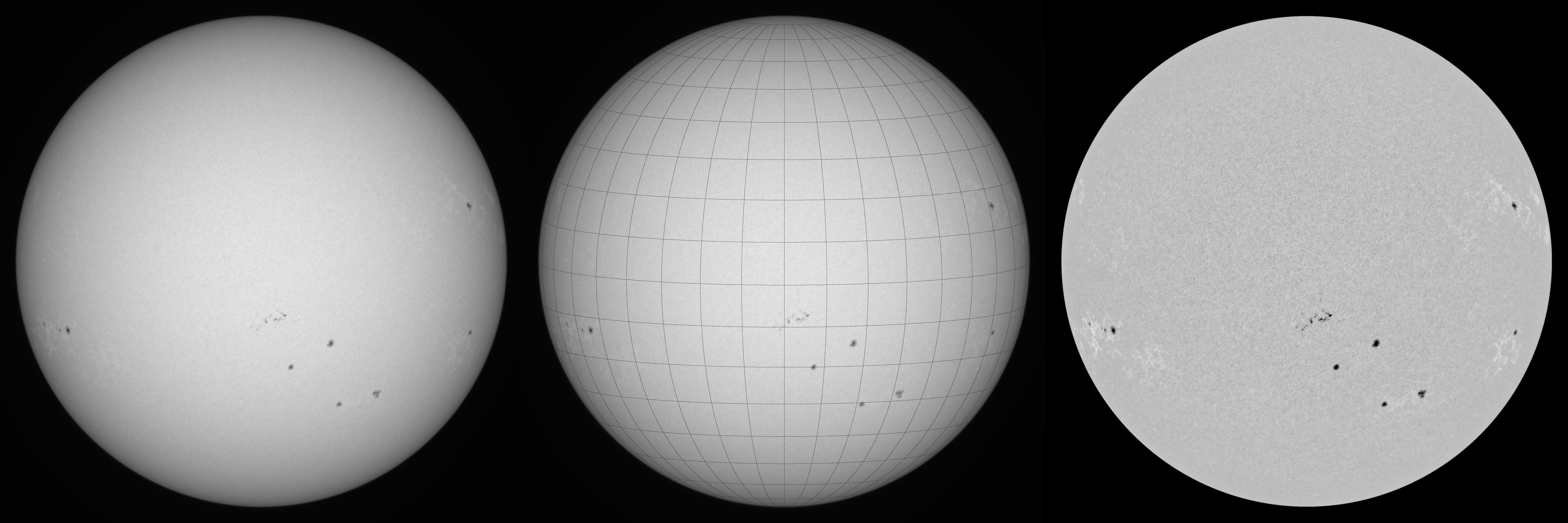 | Autor: Luis Farinós Luz blanca: Astrosolar + Skywatcher Evolux 62ED + Solar Continuum Ca: Skywatcher Evolux 62ED + Módulo Ca Lunt B600 Ha: Lunt LS40tha B500 Cámara: ZWO ASI290MM |