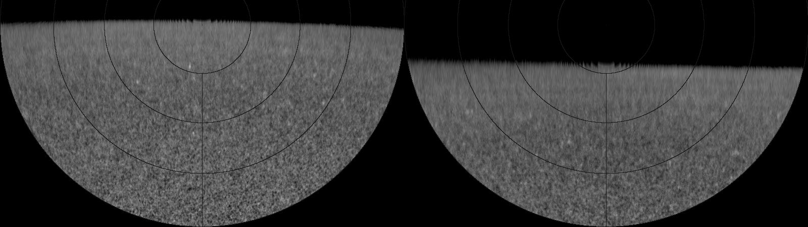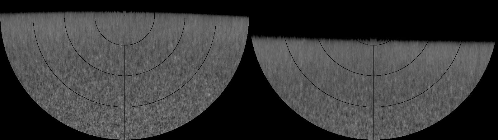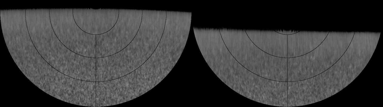 ![]() Proyección polar entre 50º y 90º Izquierda: polo norte Derecha: polo sur |