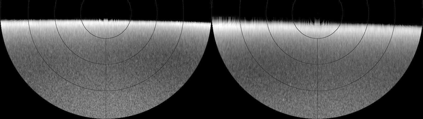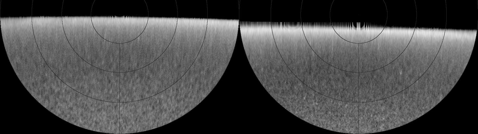 ![]() Proyección polar entre 50º y 90º Izquierda: polo norte Derecha: polo sur |