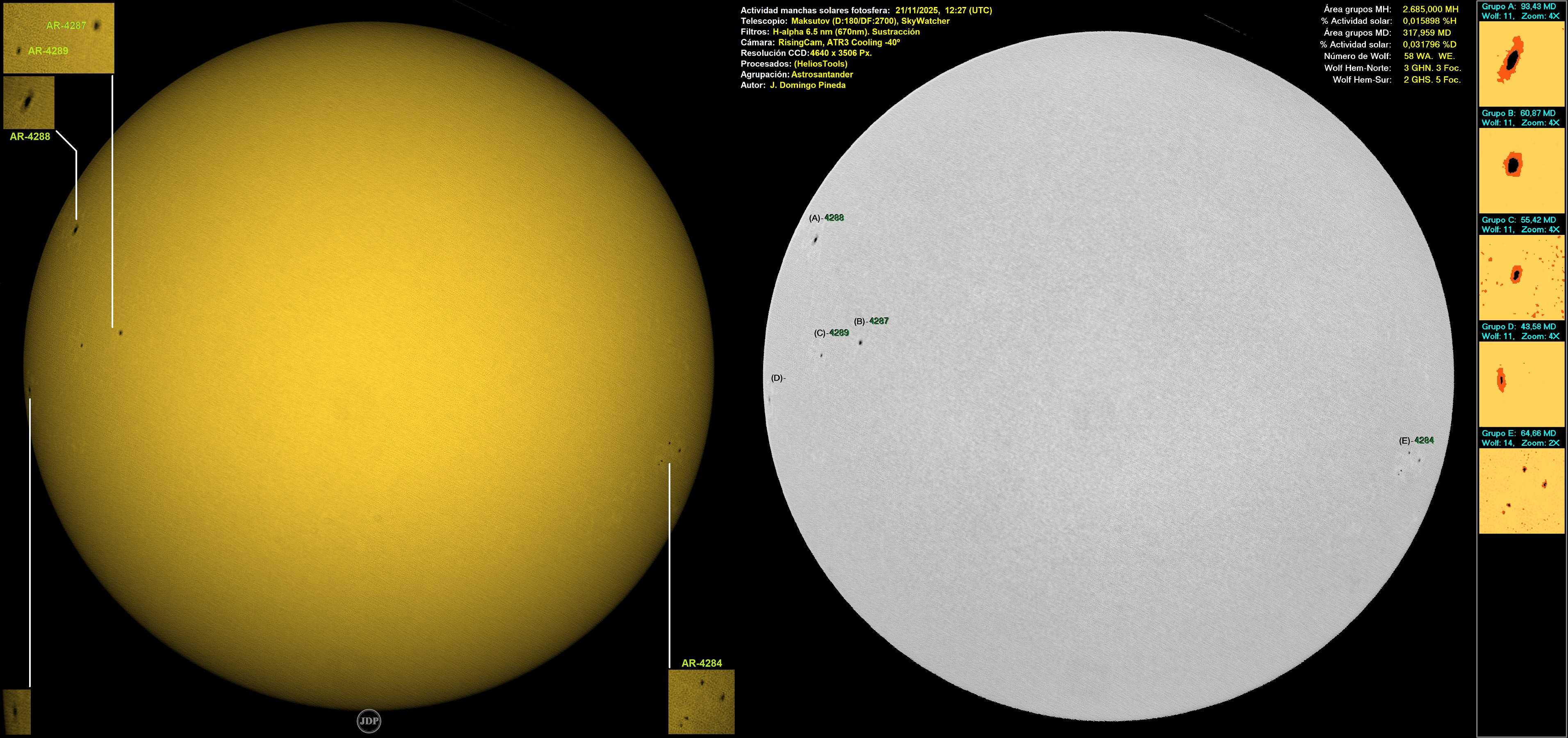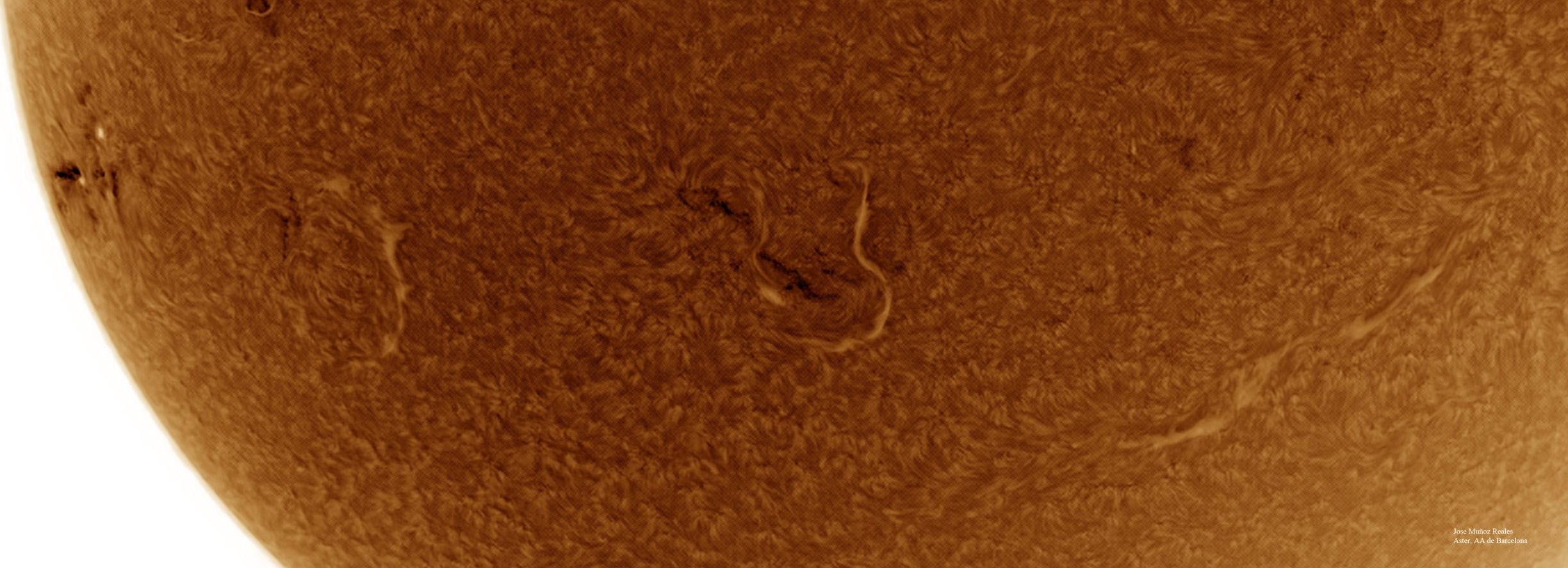 | Autor: José Domingo Pineda Instrumentos: Maksutov-180 DF-2700, Lunt-60MT <7 nm Cámaras: RisingCam ATR3 cooling -40, ZWO-ASI 183-MM |