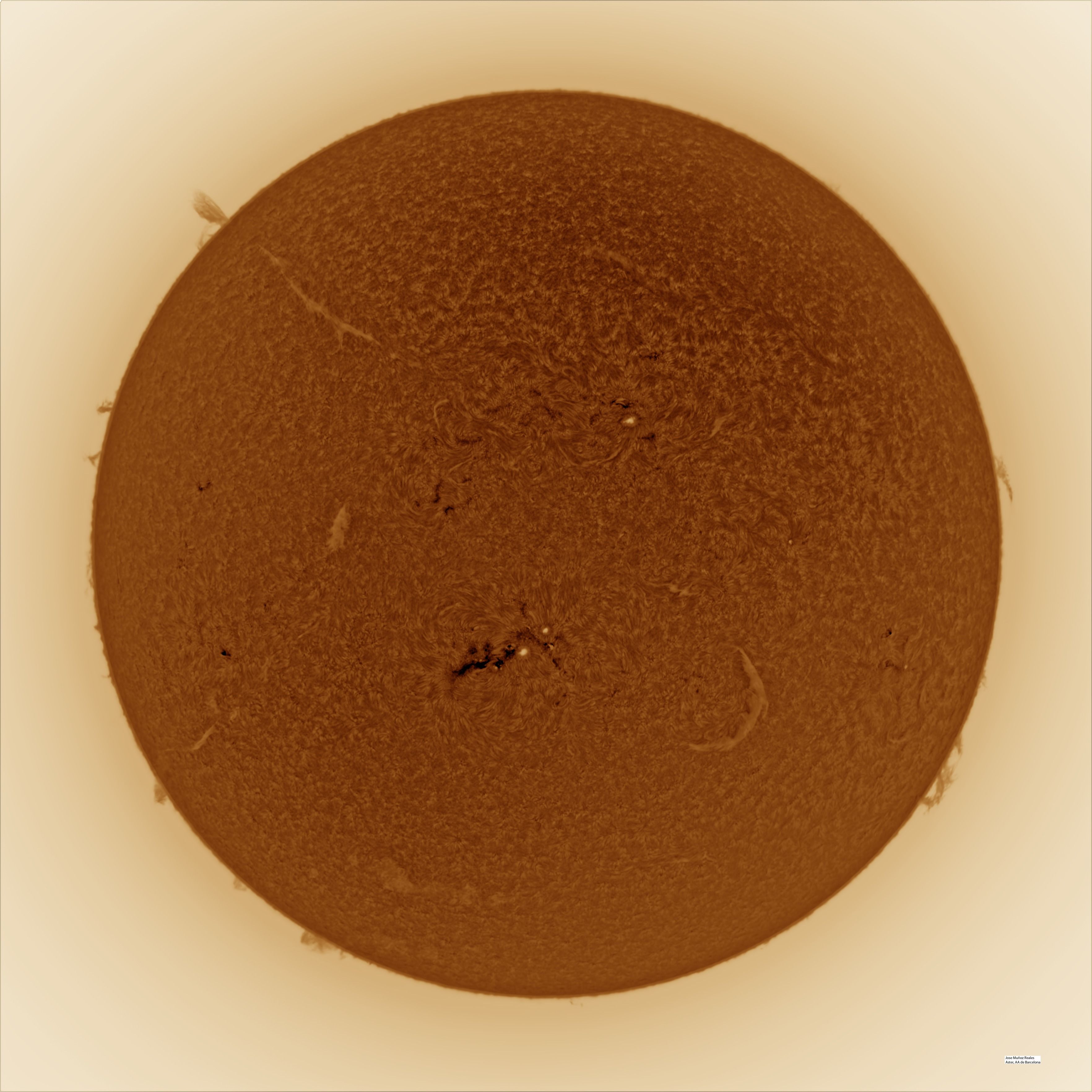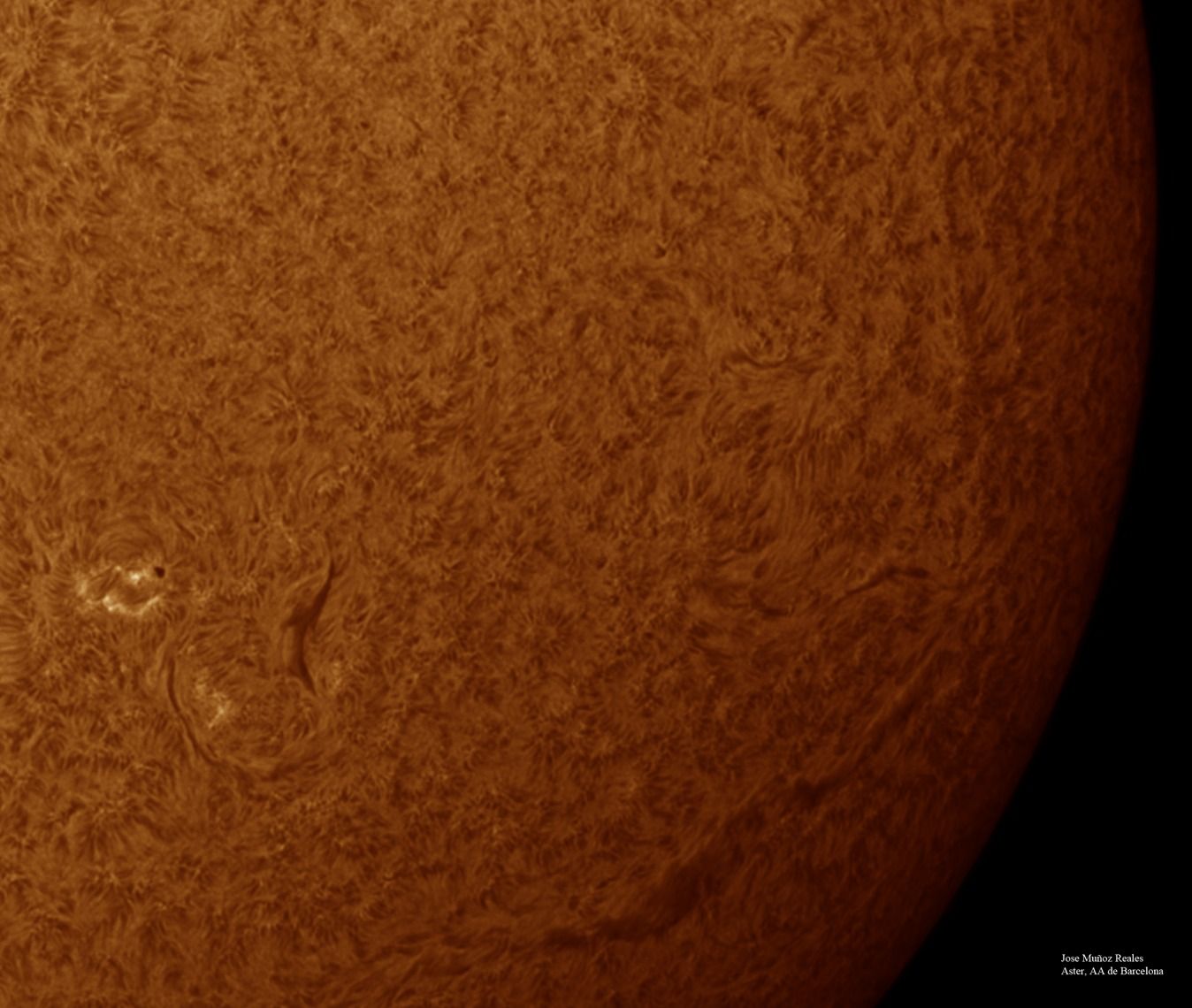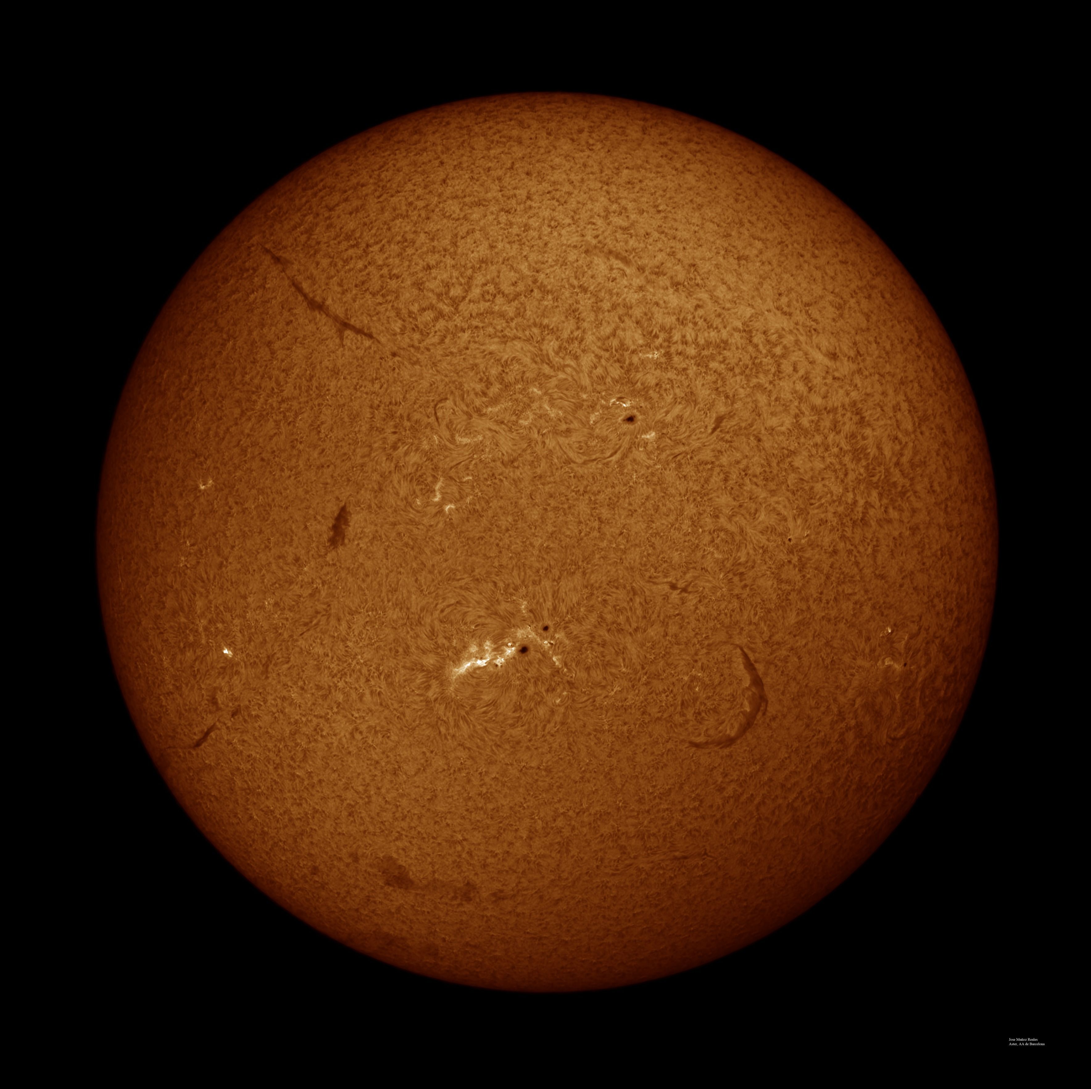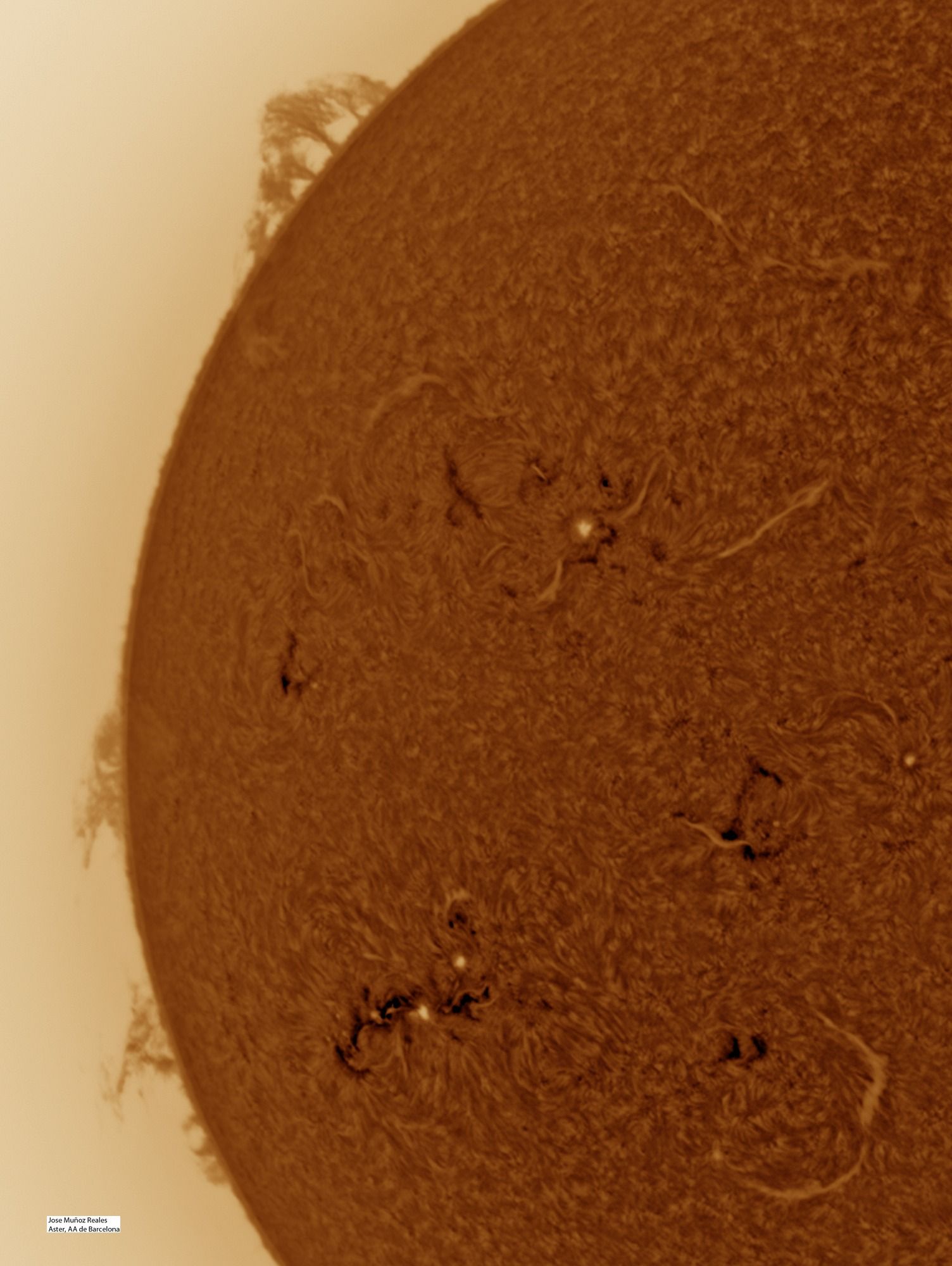 | Autor: Albert Sánchez Instrumento: - Ha: ED120 f-38 + ASI183MM + Quark H alpha - Ca: Baader K-Line - Visible: Filtro Calcio y Baader Astrosolar |