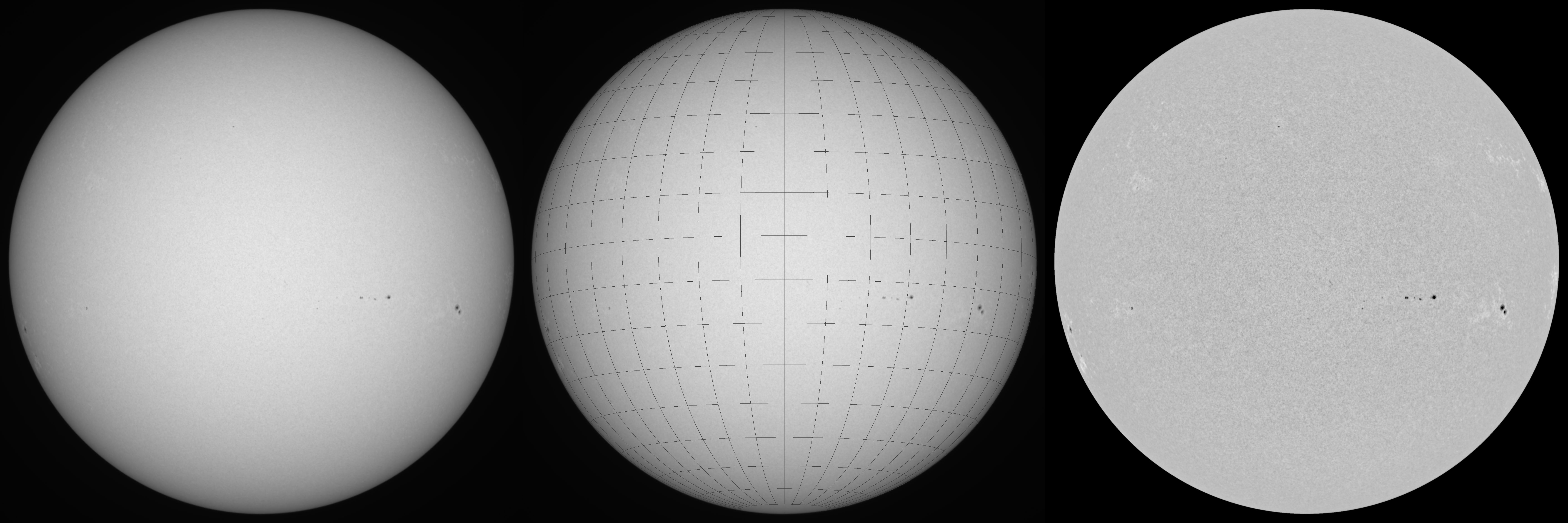 | Autor: Luis Farinós Luz blanca: Astrosolar + Skywatcher Evolux 62ED + Solar Continuum Ca: Skywatcher Evolux 62ED + Módulo Ca Lunt B600 Ha: Lunt LS40tha B500 Cámara: ZWO ASI290MM |