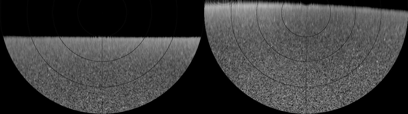![]() Proyección polar entre 50º y 90º Izquierda: polo norte Derecha: polo sur |